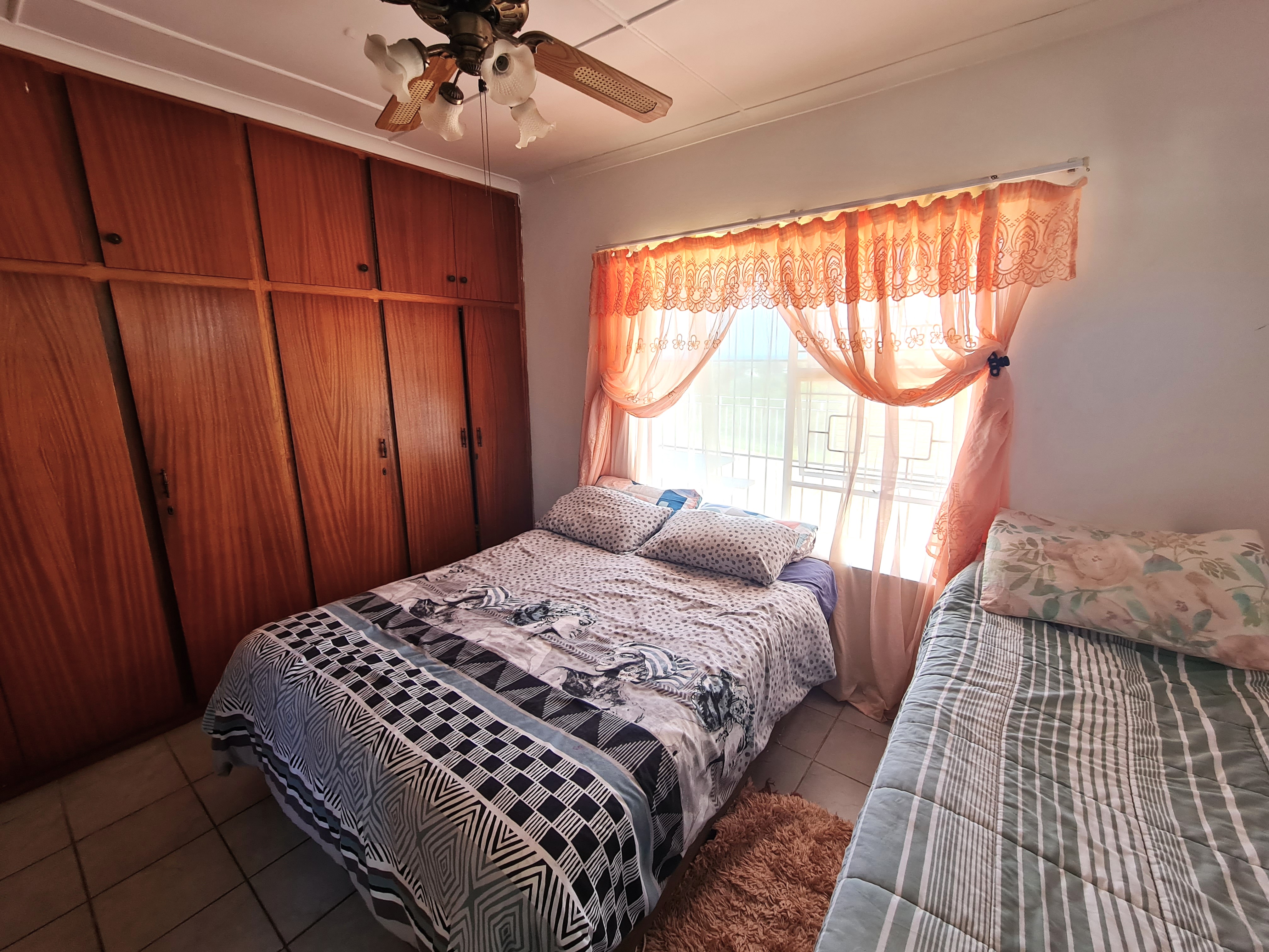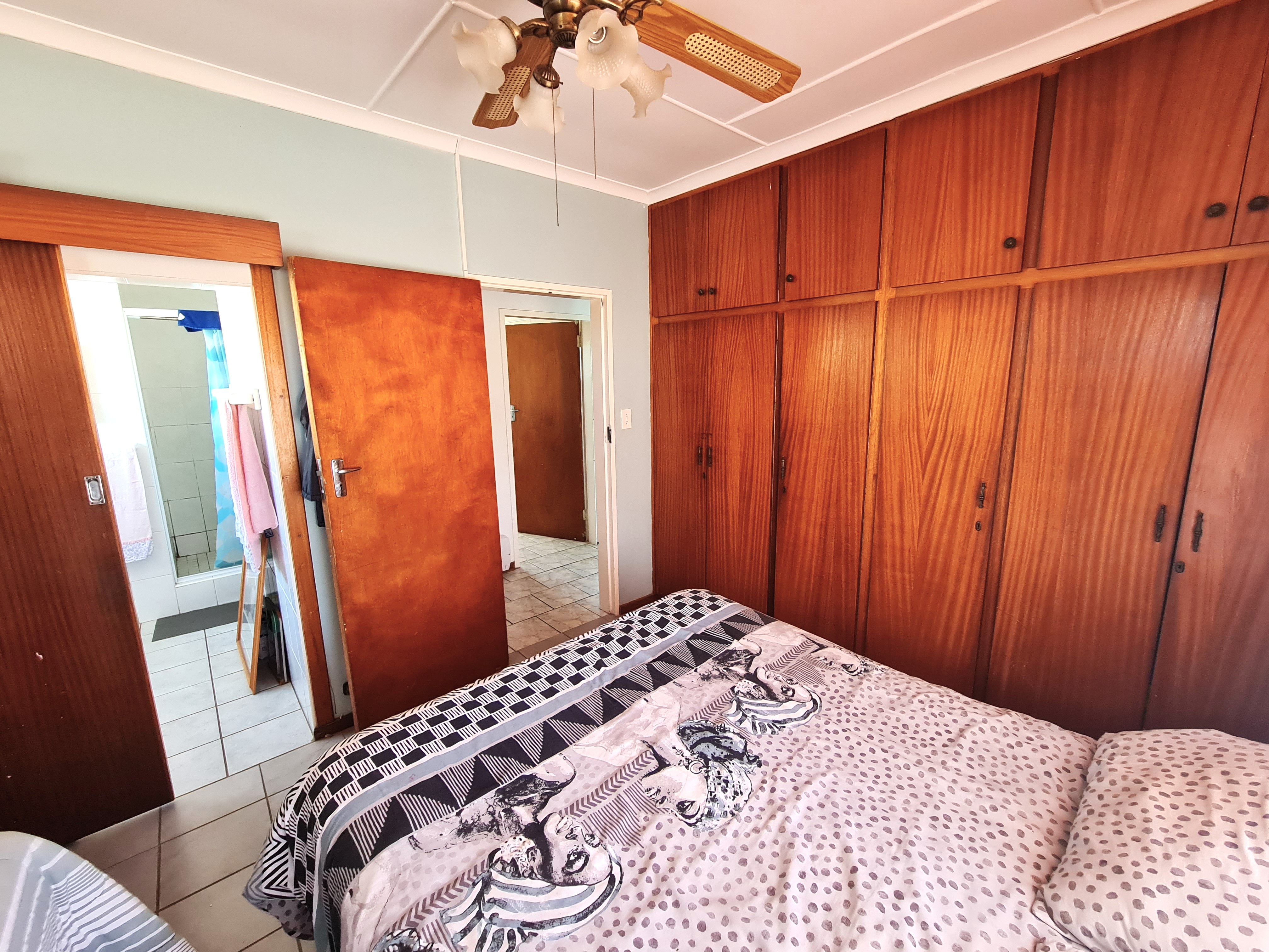The flat comprises two bedrooms, full bathroom, kitchen, lounge and dining area. Lots of cupboards in the main bedroom. The second bedroom is extra-large and can accommodate two double beds with ease.