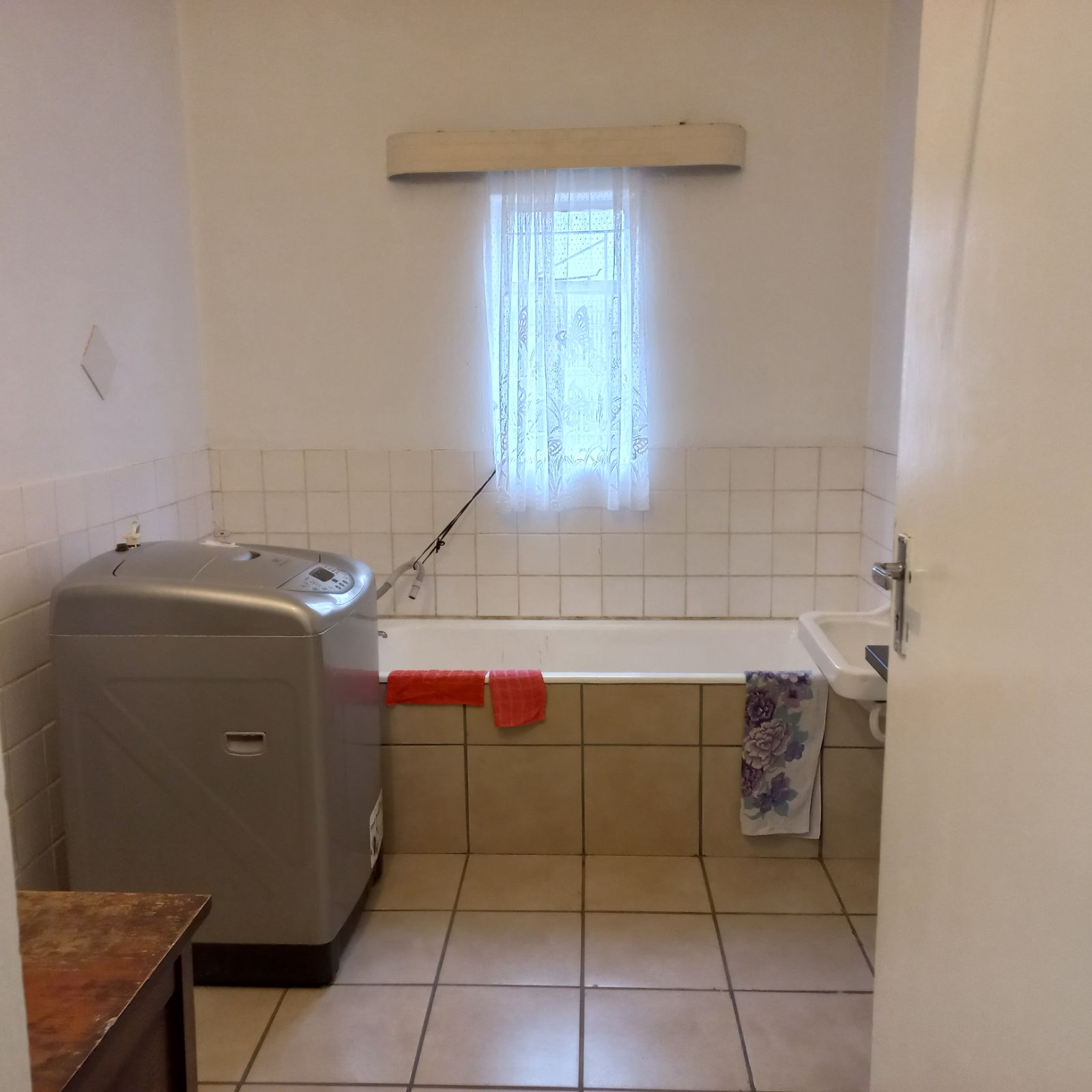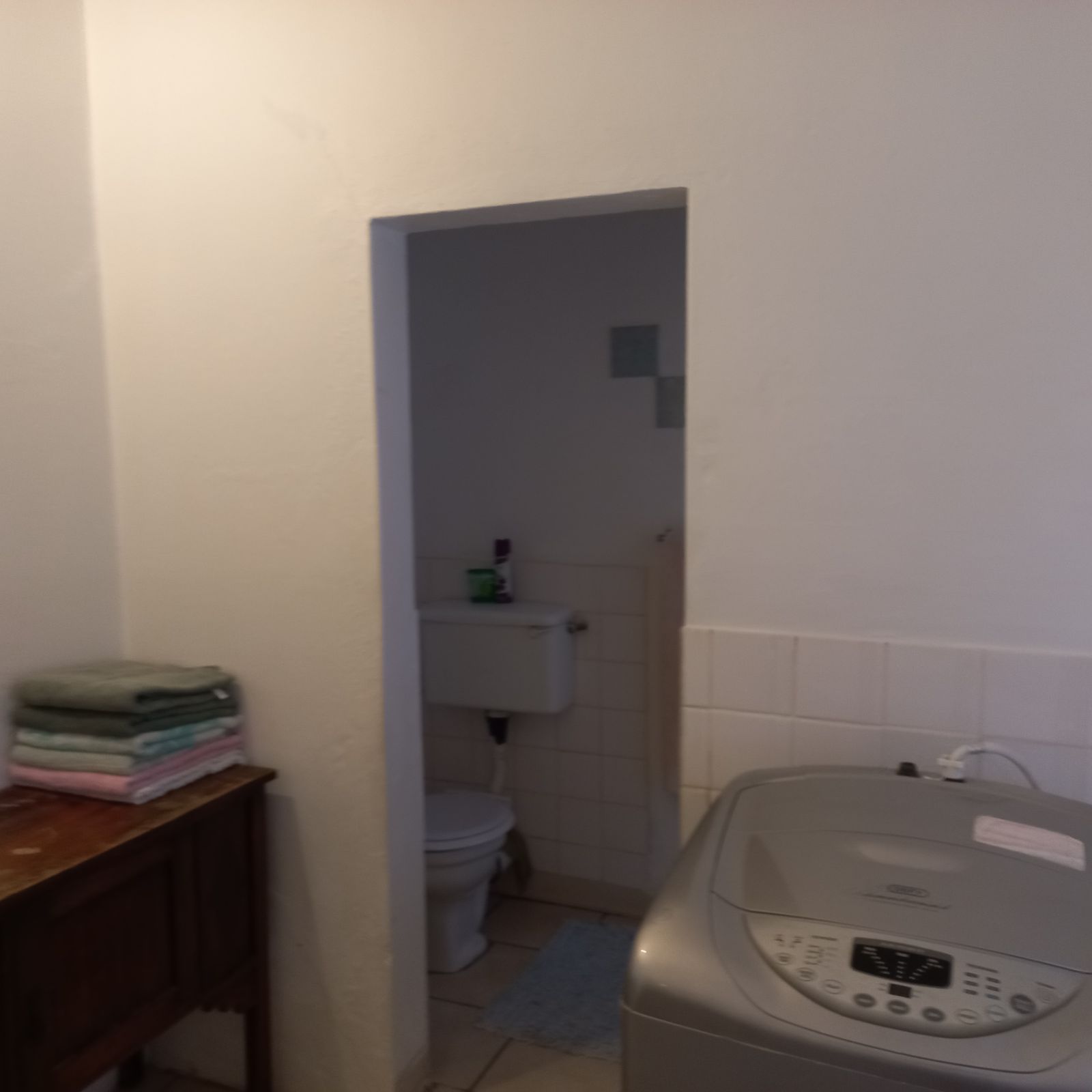 A discreet laundry area for hanging clothes.
