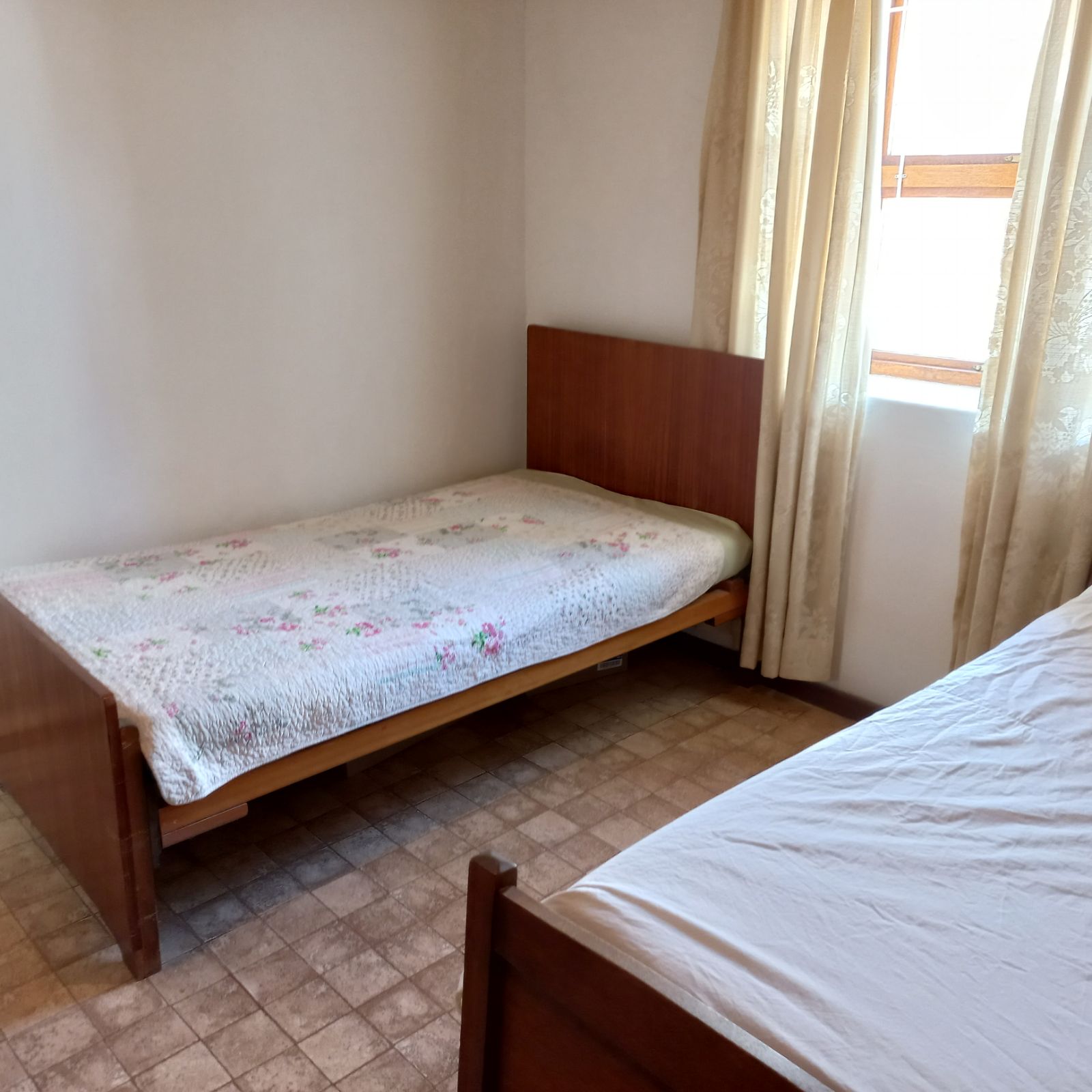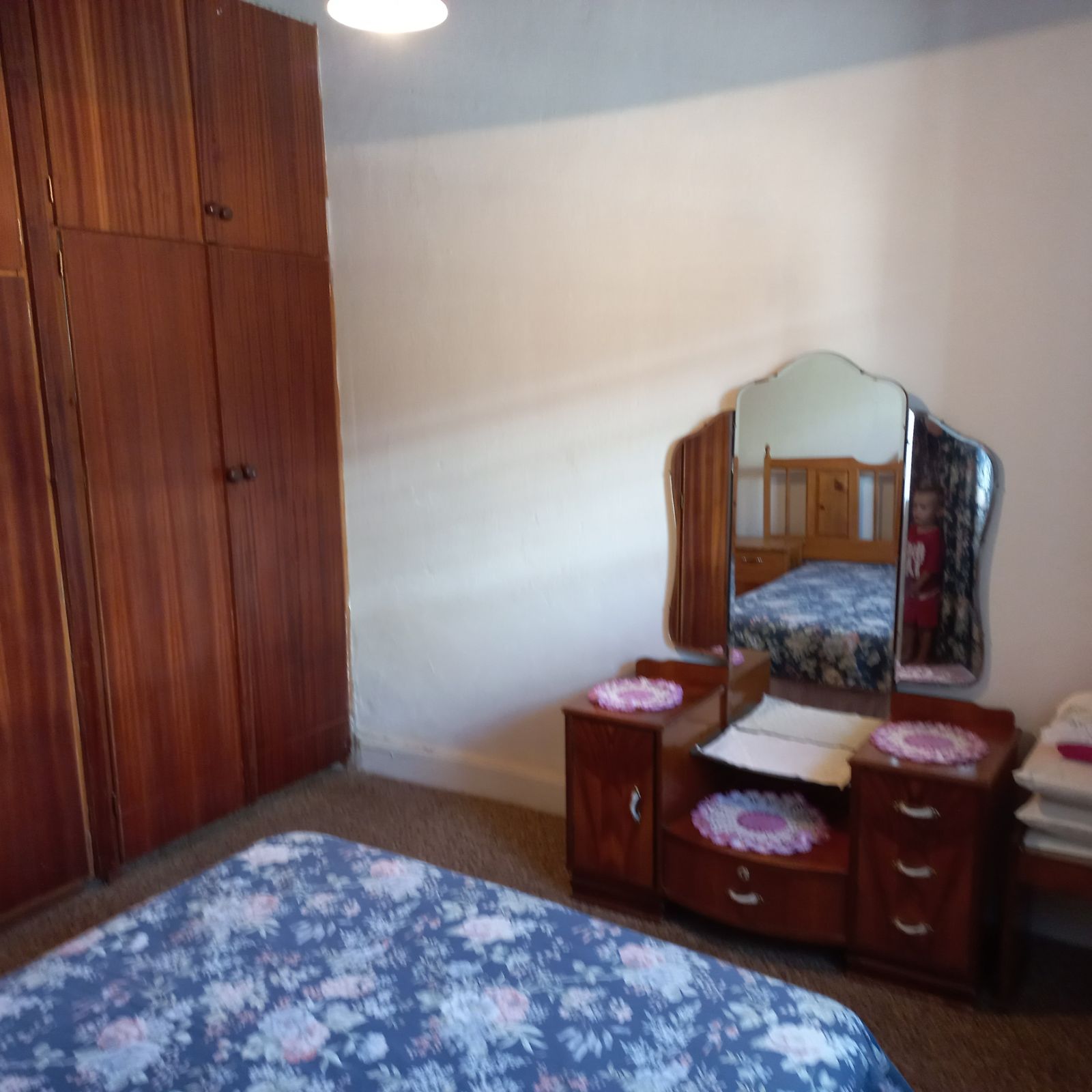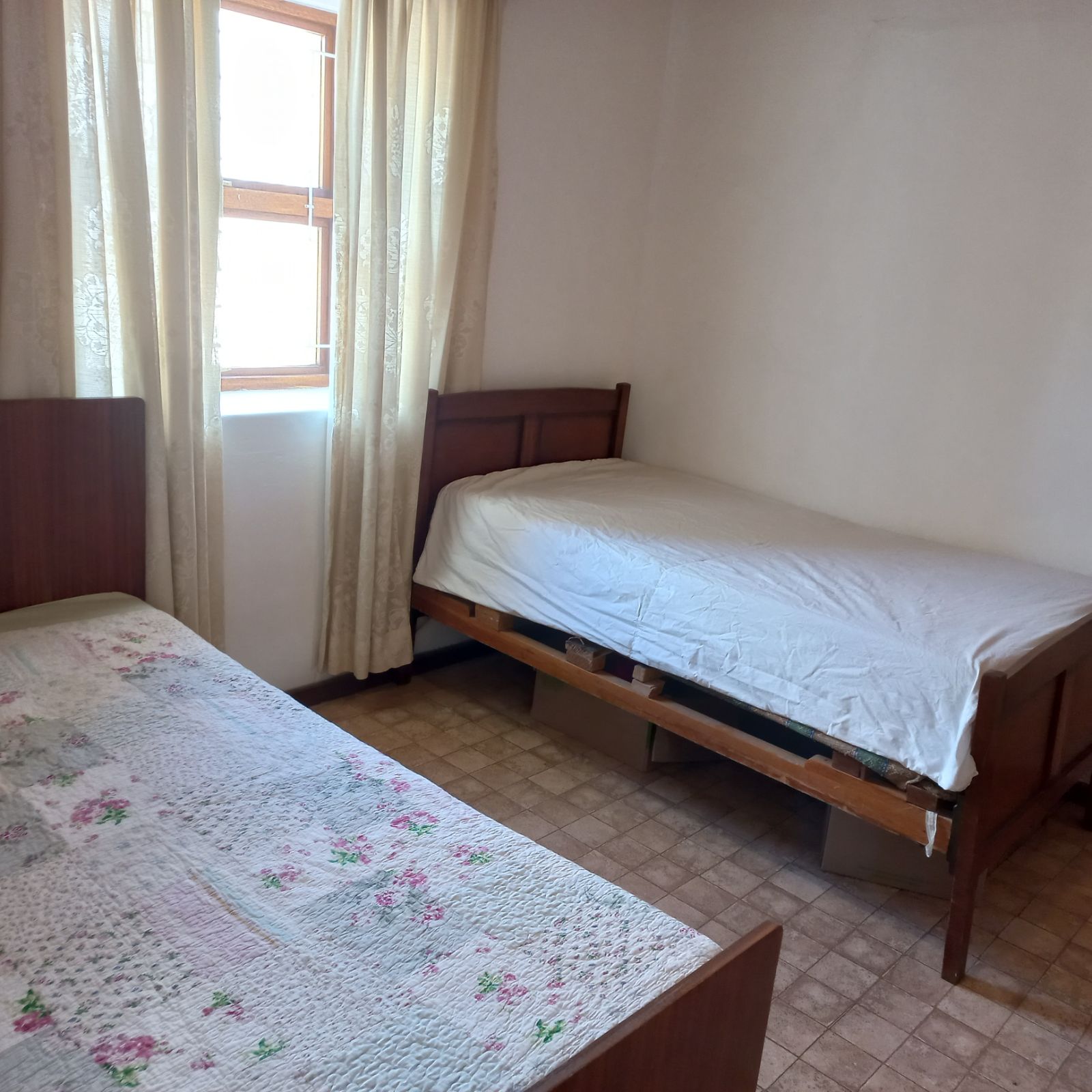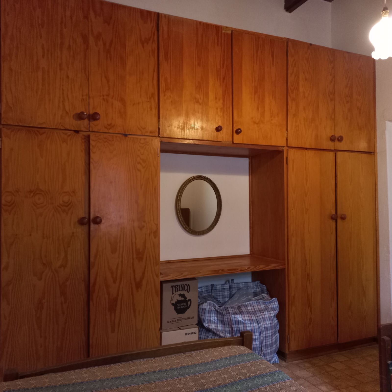 Three spacious bedrooms, each featuring built-in cupboards and elegant wooden ceilings.