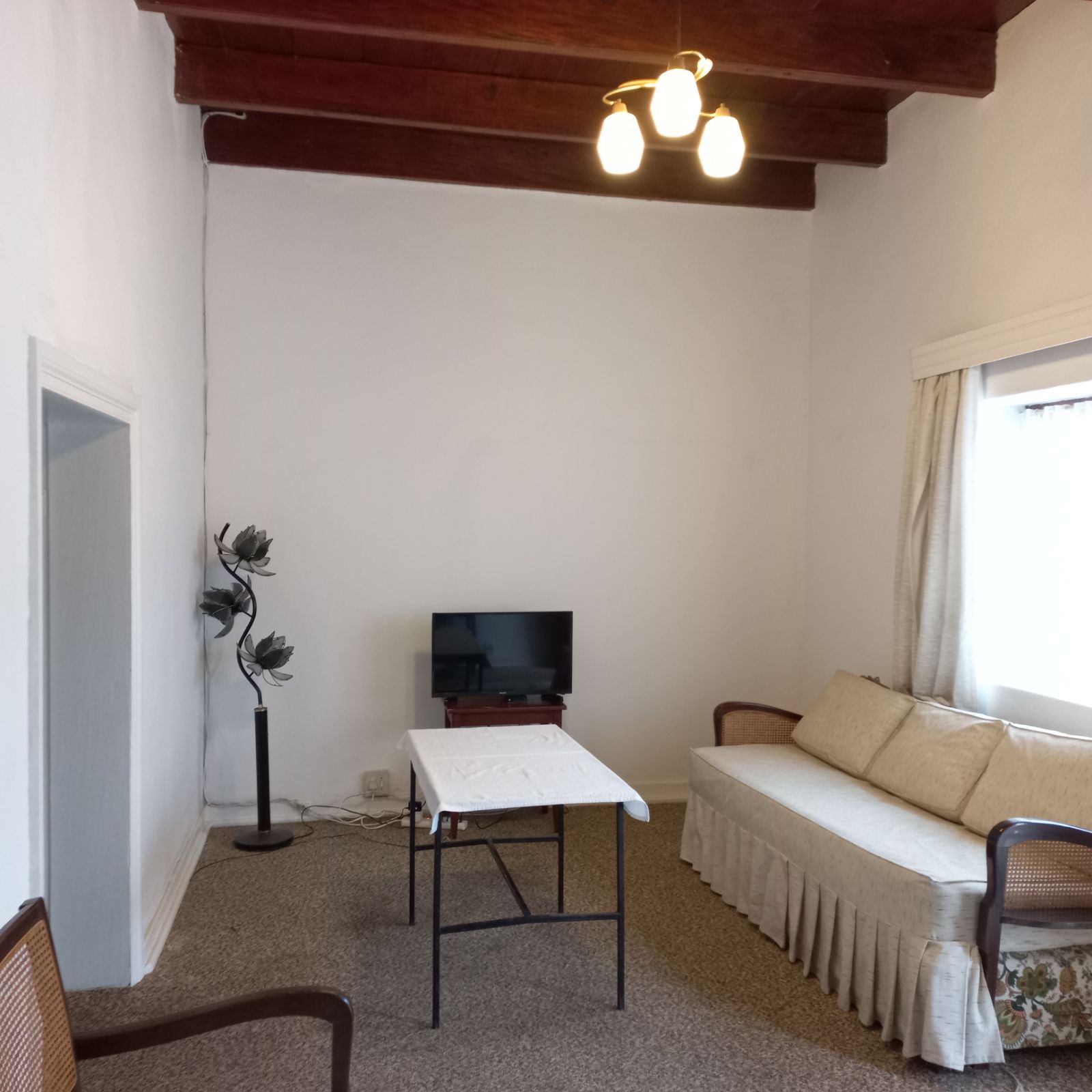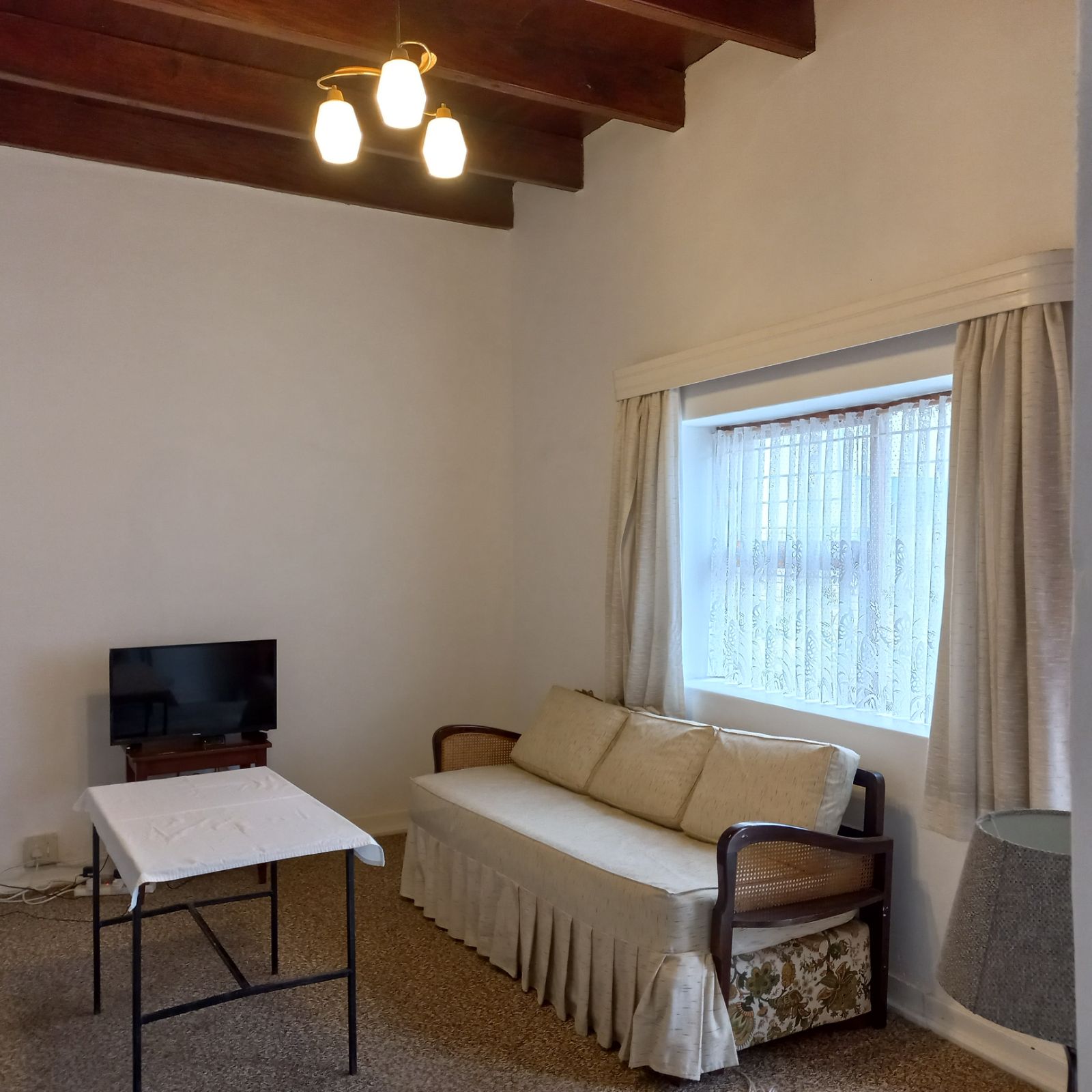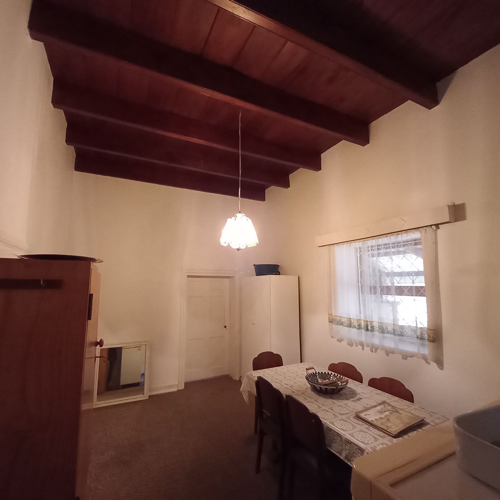 A generous lounge/TV room, perfect for relaxing or entertaining, also with a gorgeous wooden ceiling.