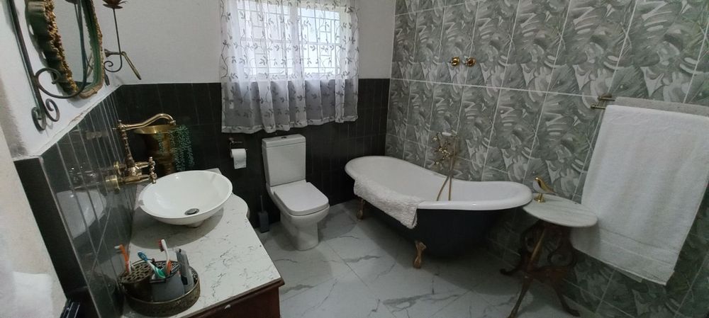 2 Bedrooms, including a main bedroom with an en-suite bathroom featuring a luxurious bath, toilet, and basin.