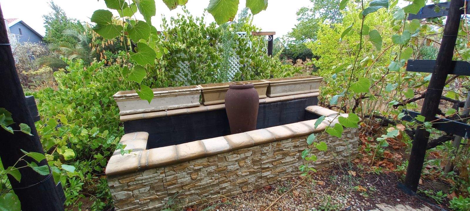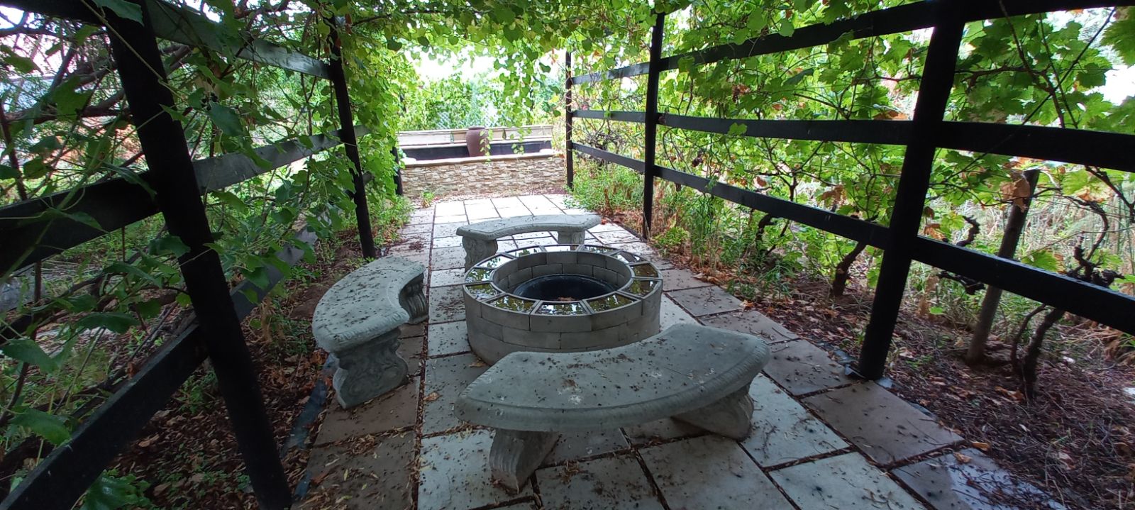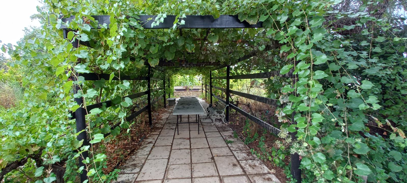 Vine-covered spaces, fruit trees, and tranquil outdoor areas ideal for relaxation.