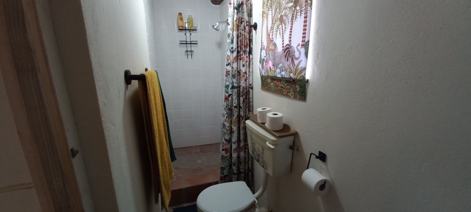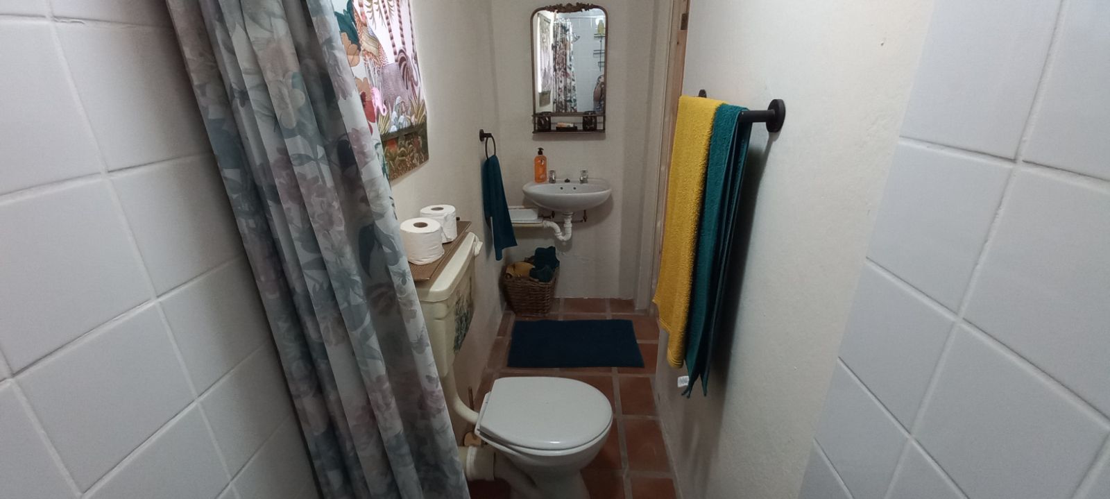 A second bathroom fitted with a shower, toilet, and basin.