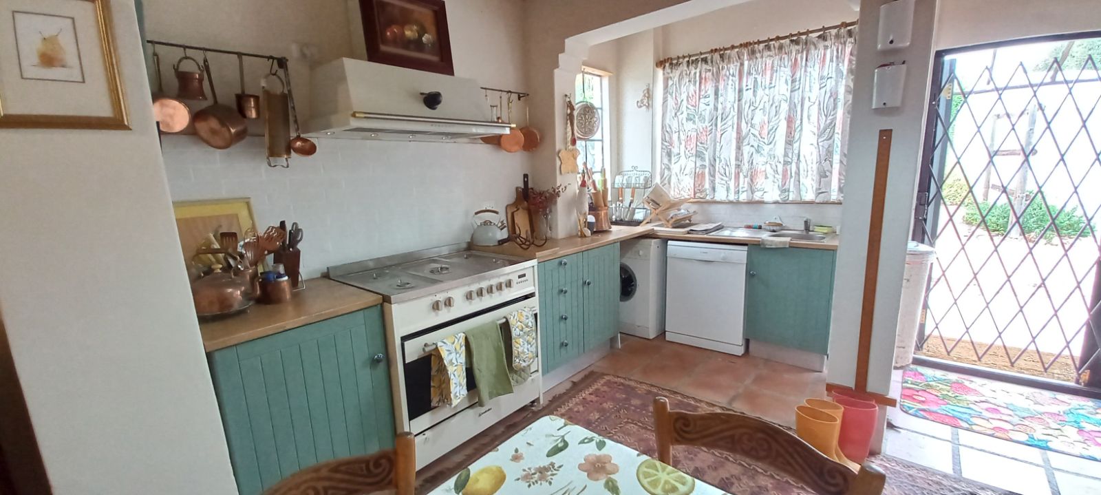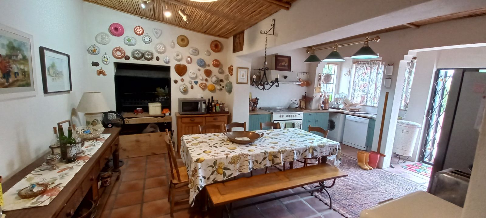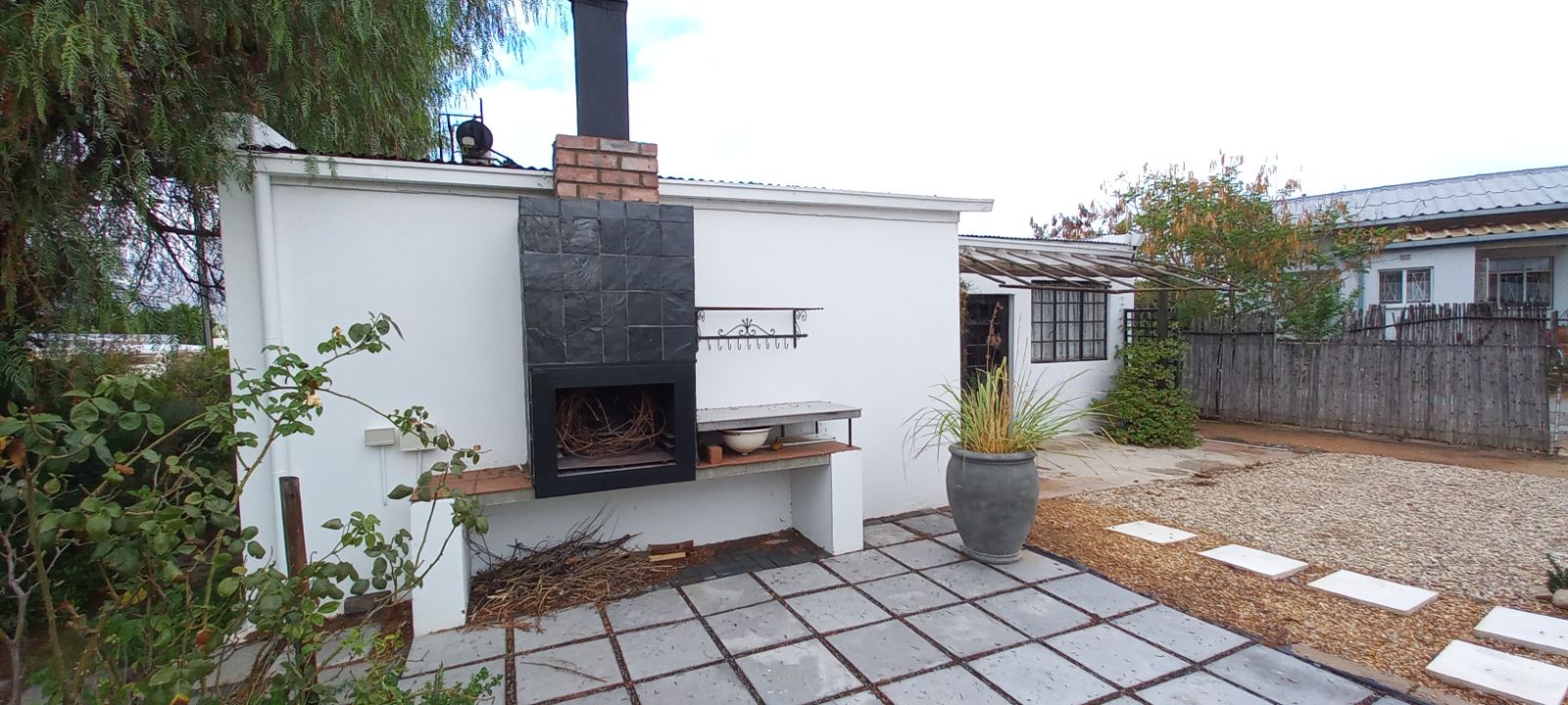 A Spacious kitchen with ample cupboard space, additional storage, and a built-in braai/entertainment area.