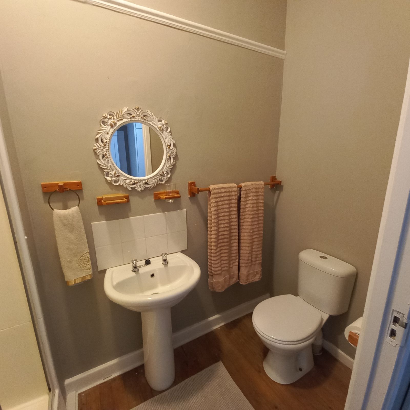 2 spacious bedrooms, both with en-suite bathrooms (shower, basin, toilet)
