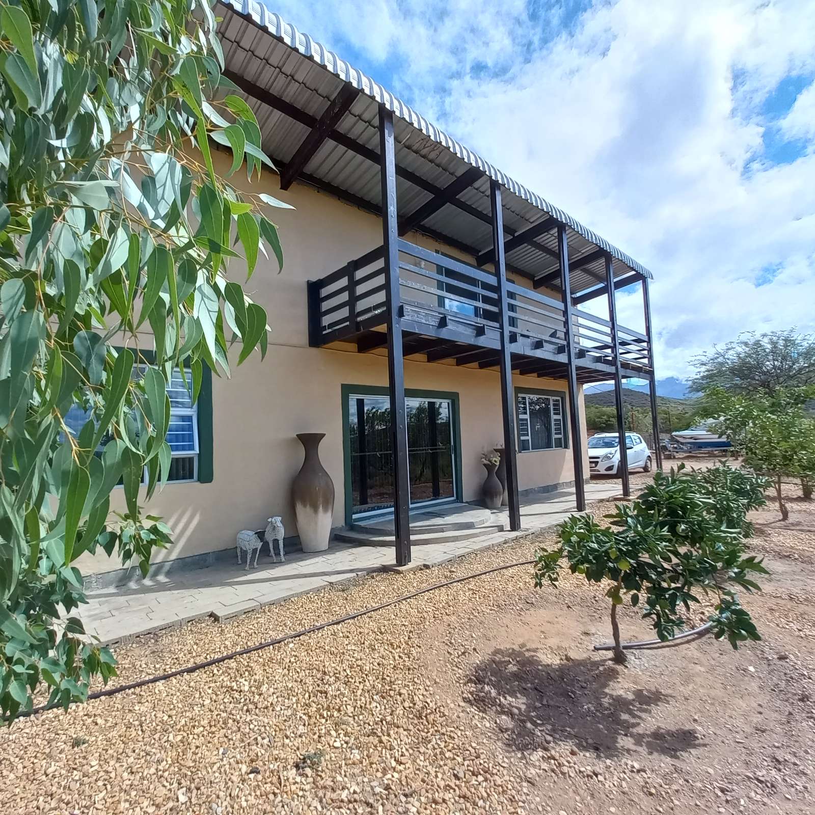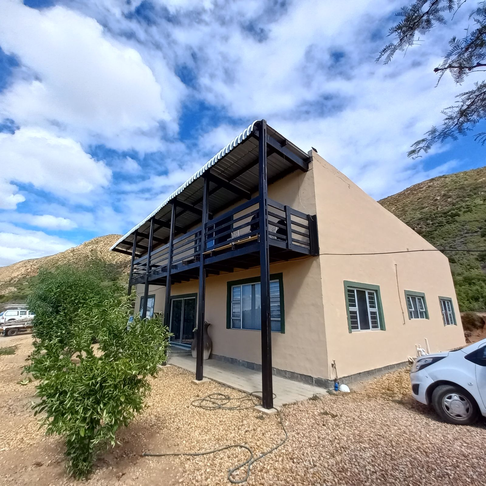 Nestled just outside Calitzdorp, this stunning 3-bedroom, 2-bathroom home offers the perfect blend of privacy, farm-style living, and modern convenience. Surrounded by the rolling hills and unspoiled veld of the Klein Karoo, this off-grid retreat provides a peaceful escape while being just a short drive from town.