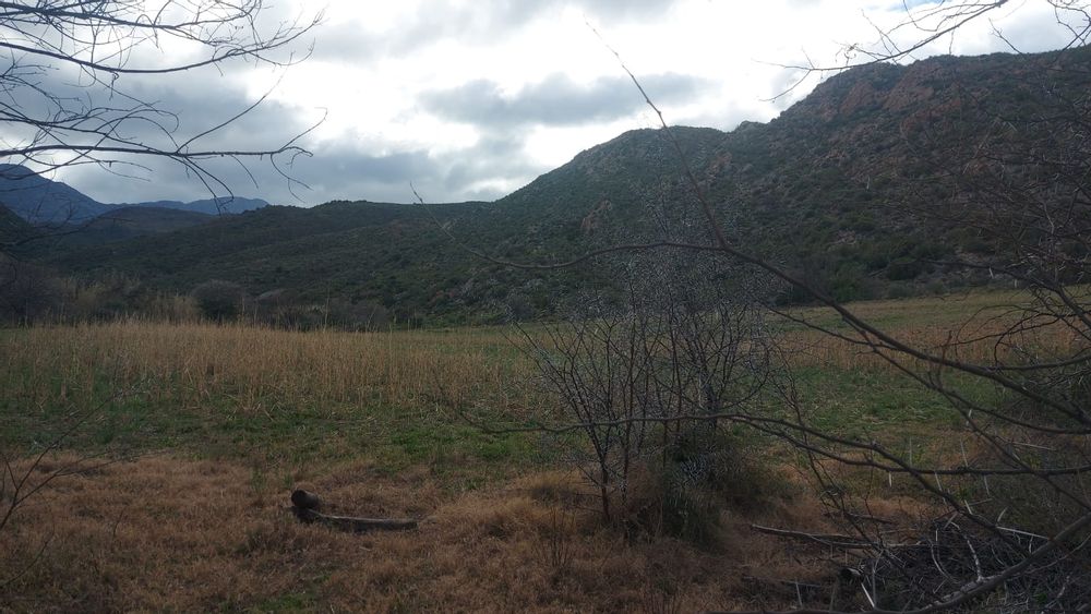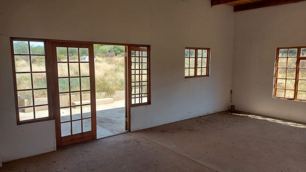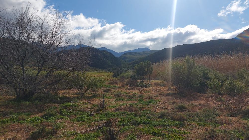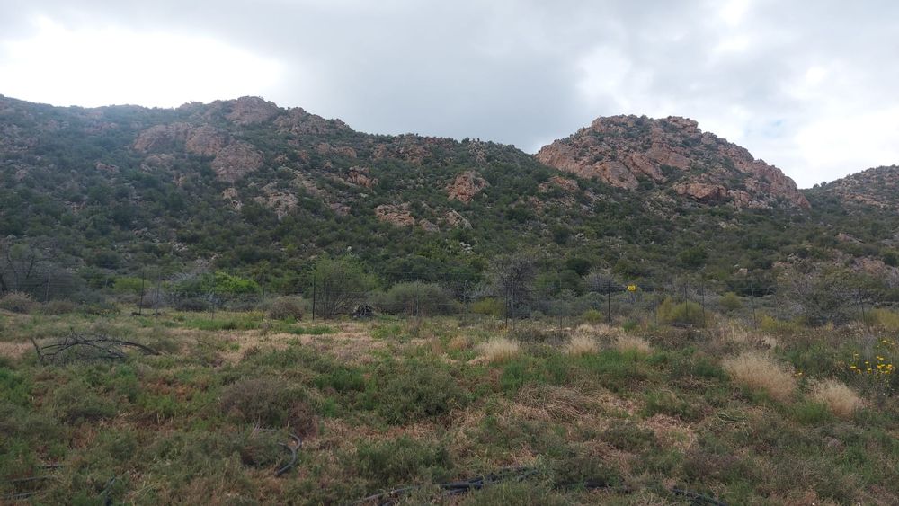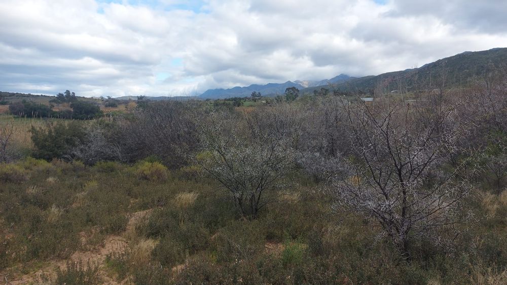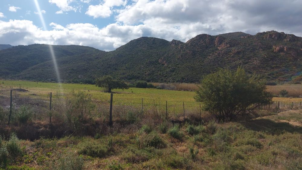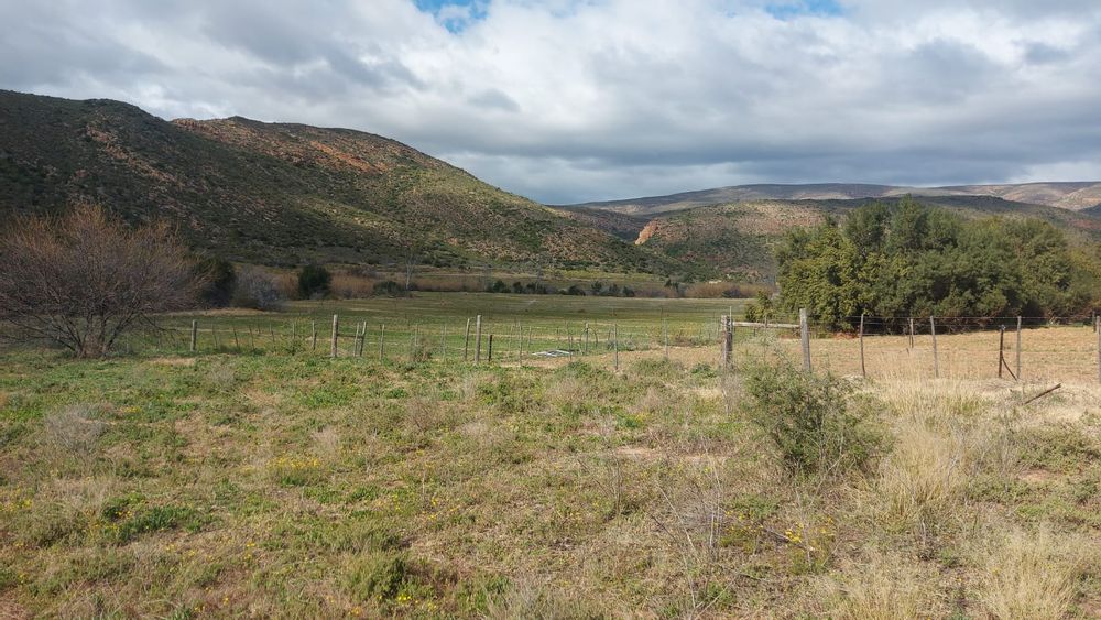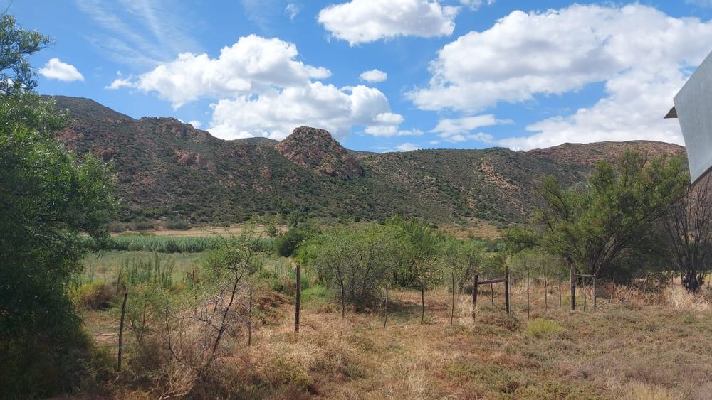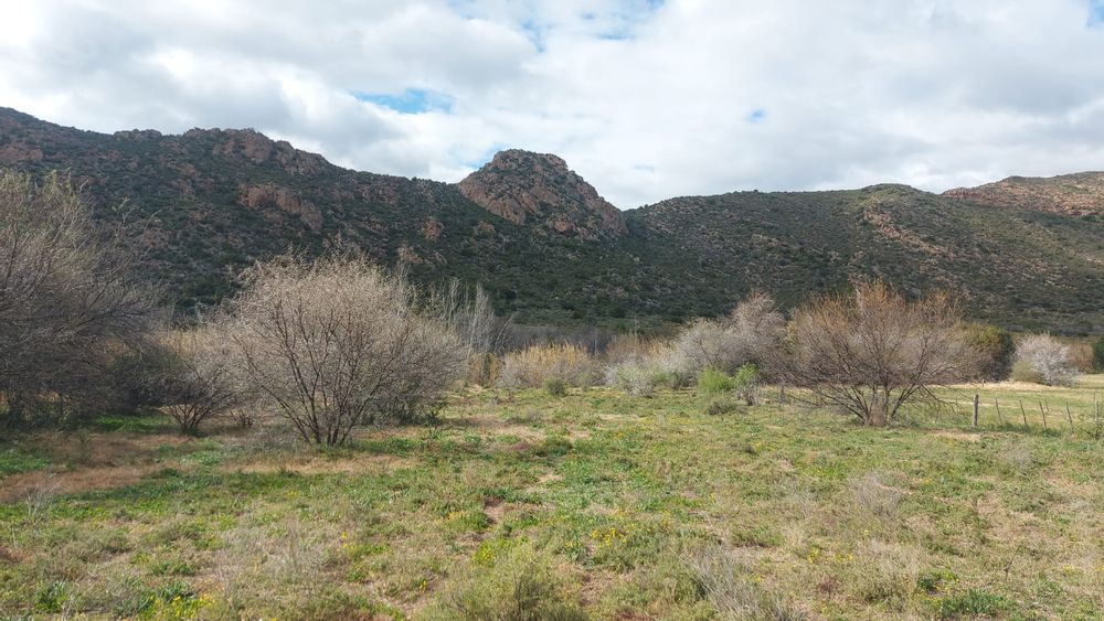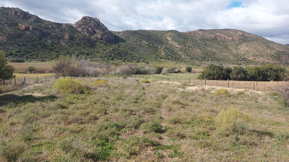 A perennial stream traverses the property. Note. There are NO municipal services. Eskom power is available but not connected. Water needs to be collected from rain water or delivered by the municipality. Further water can be used from the Borehole. The property is 25km from Calitzdorp and 25km from Ladismith.33.478809, 21.510859
