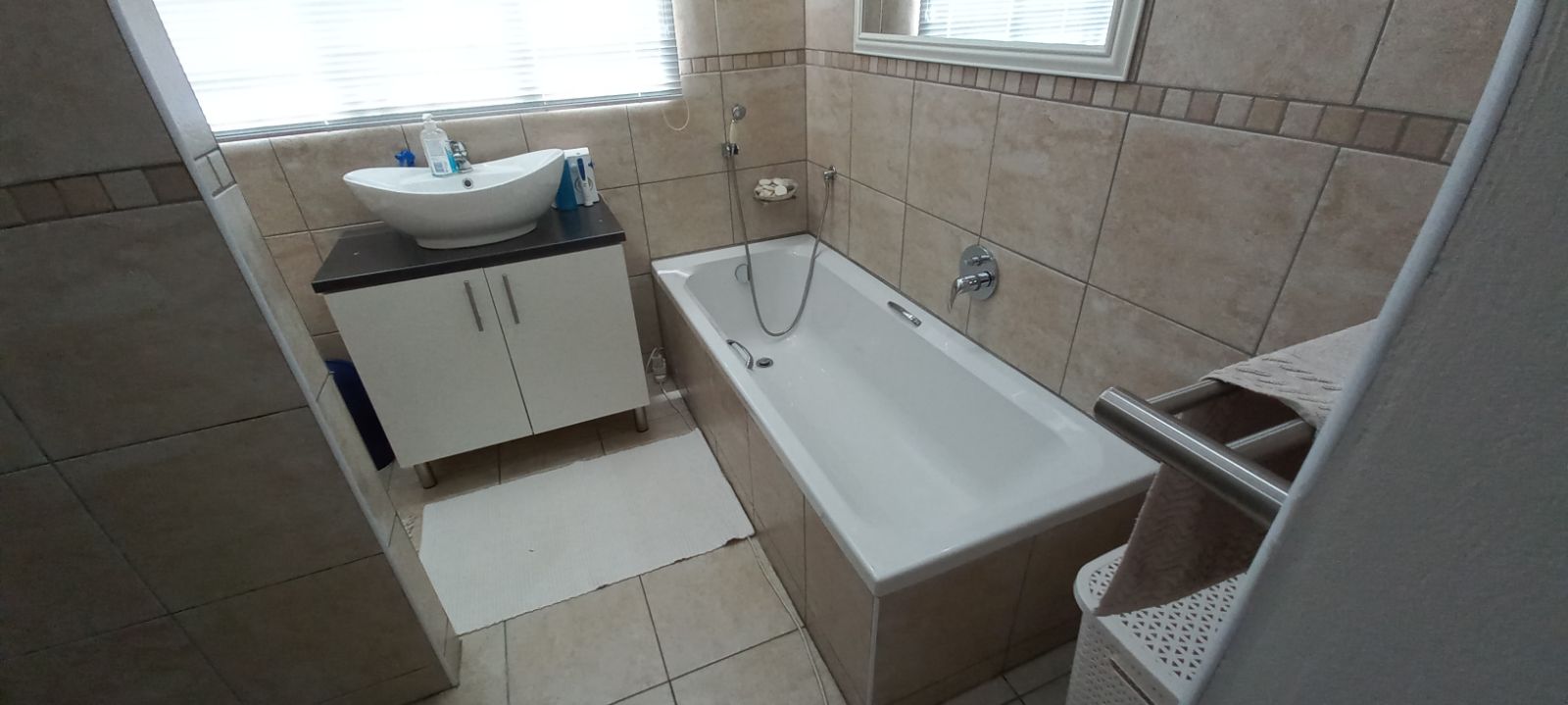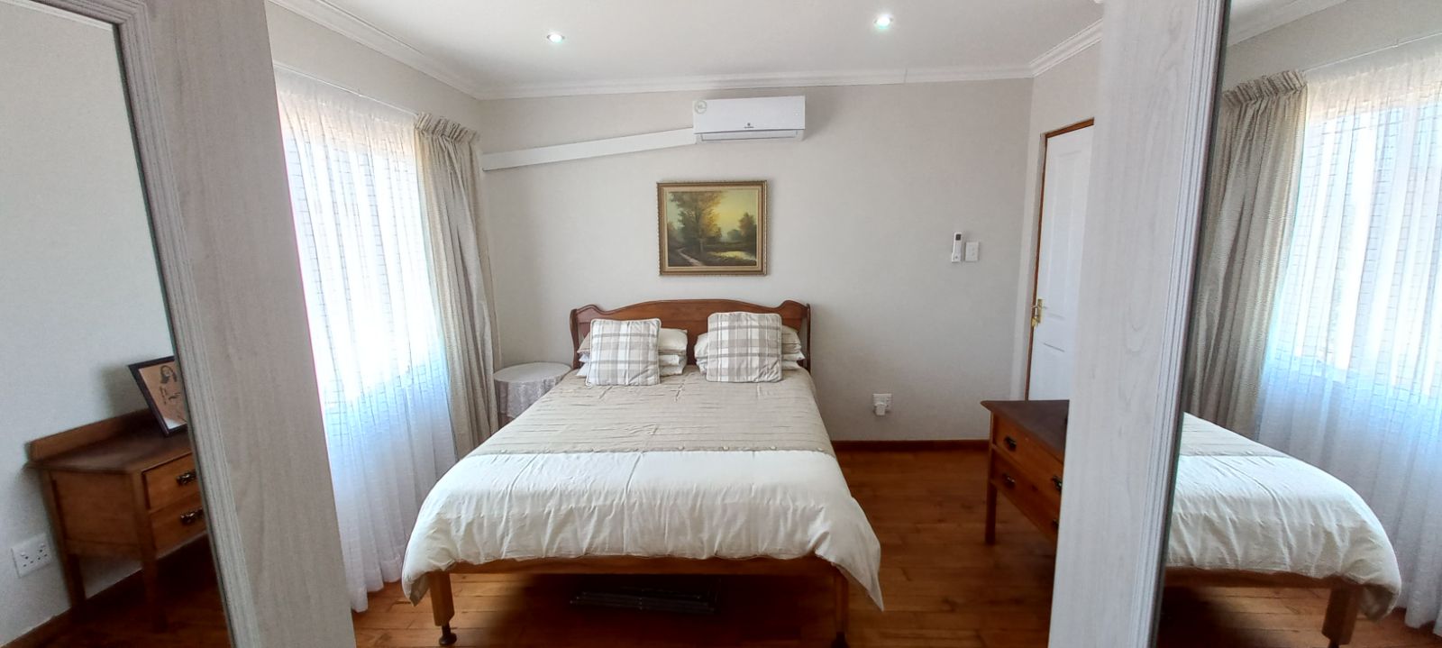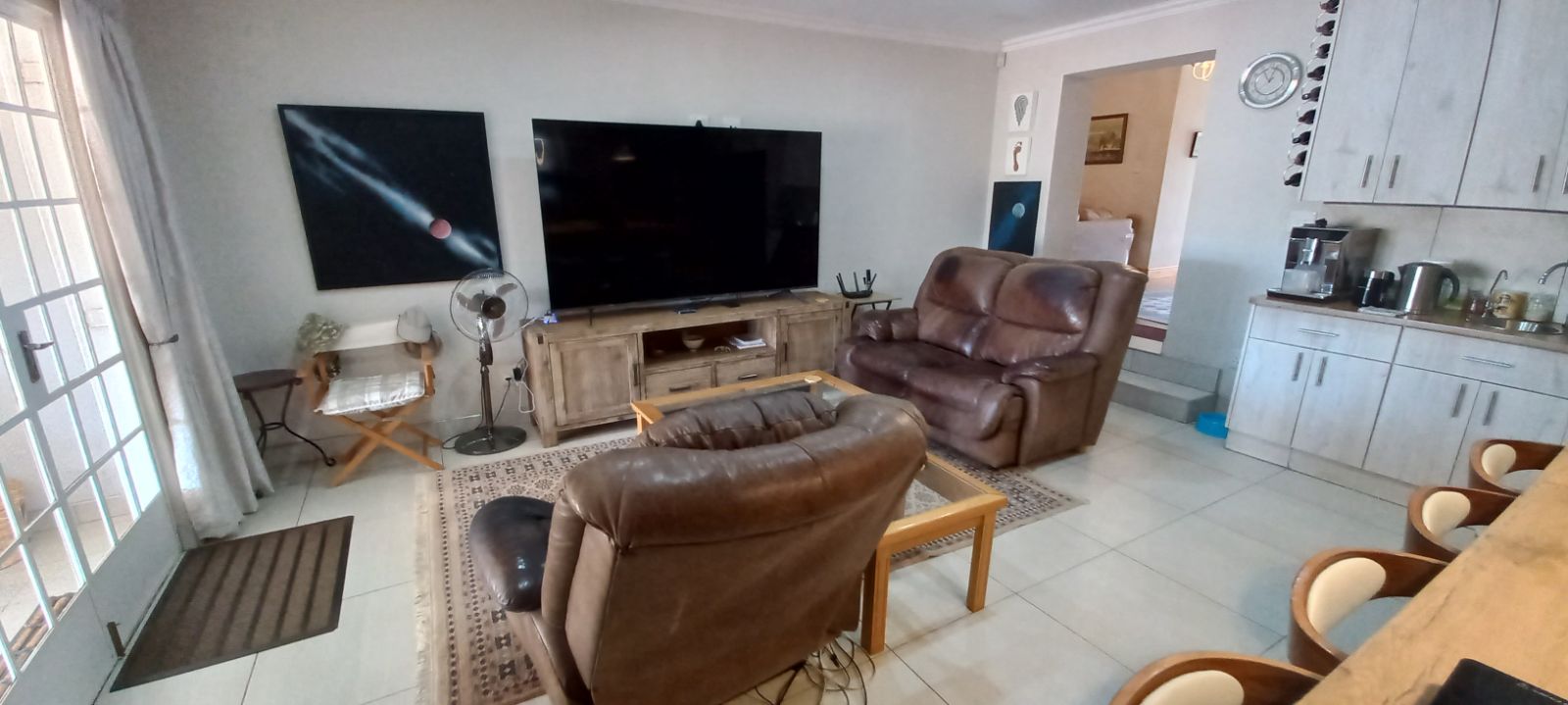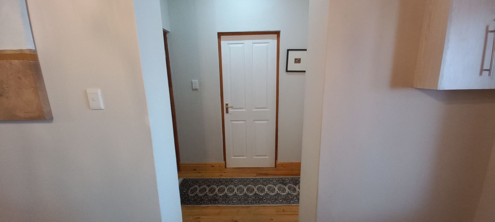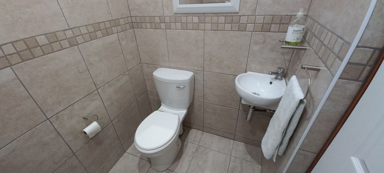 A flatlet with an open-plan family room and modern kitchen with an air-conditioner, a good size bedroom with built-in cupboards and updated bathroom.