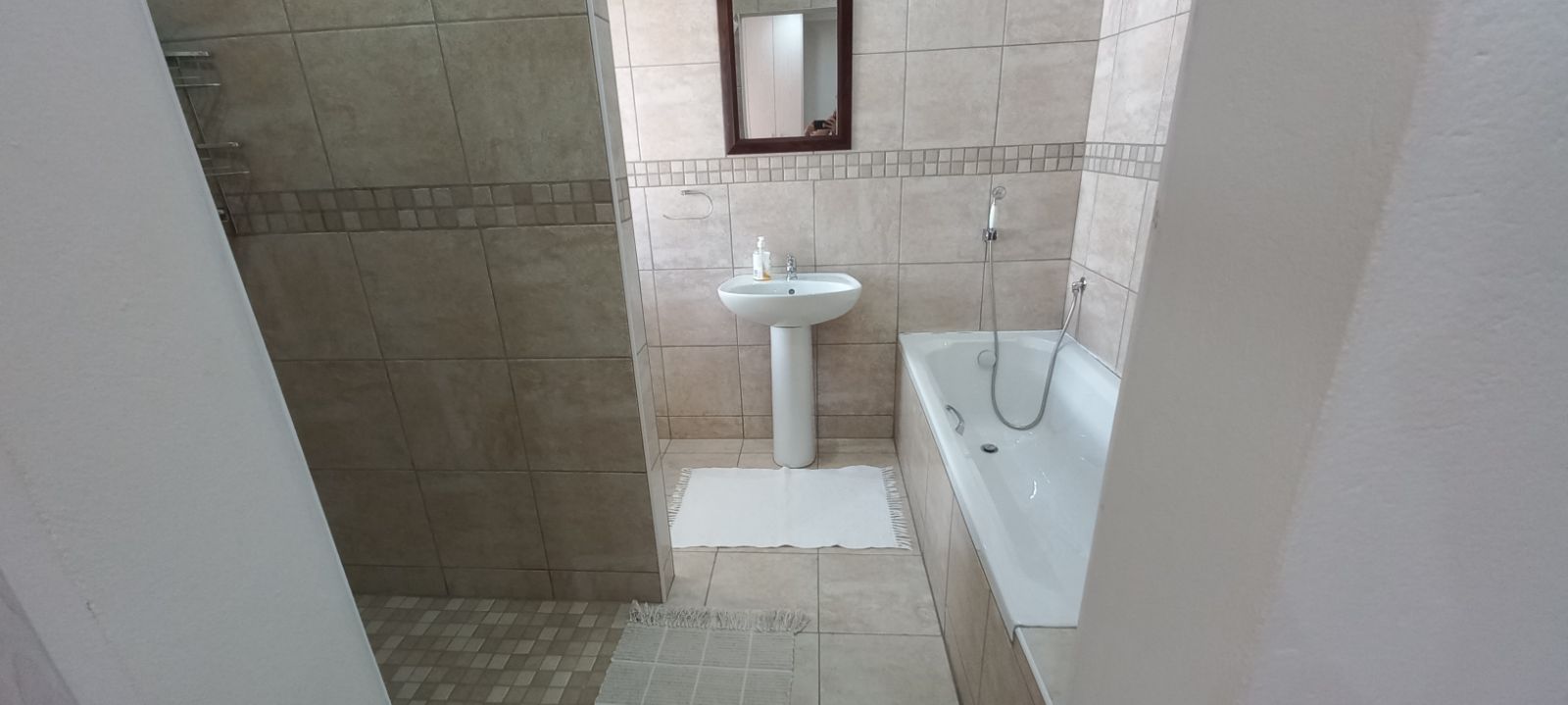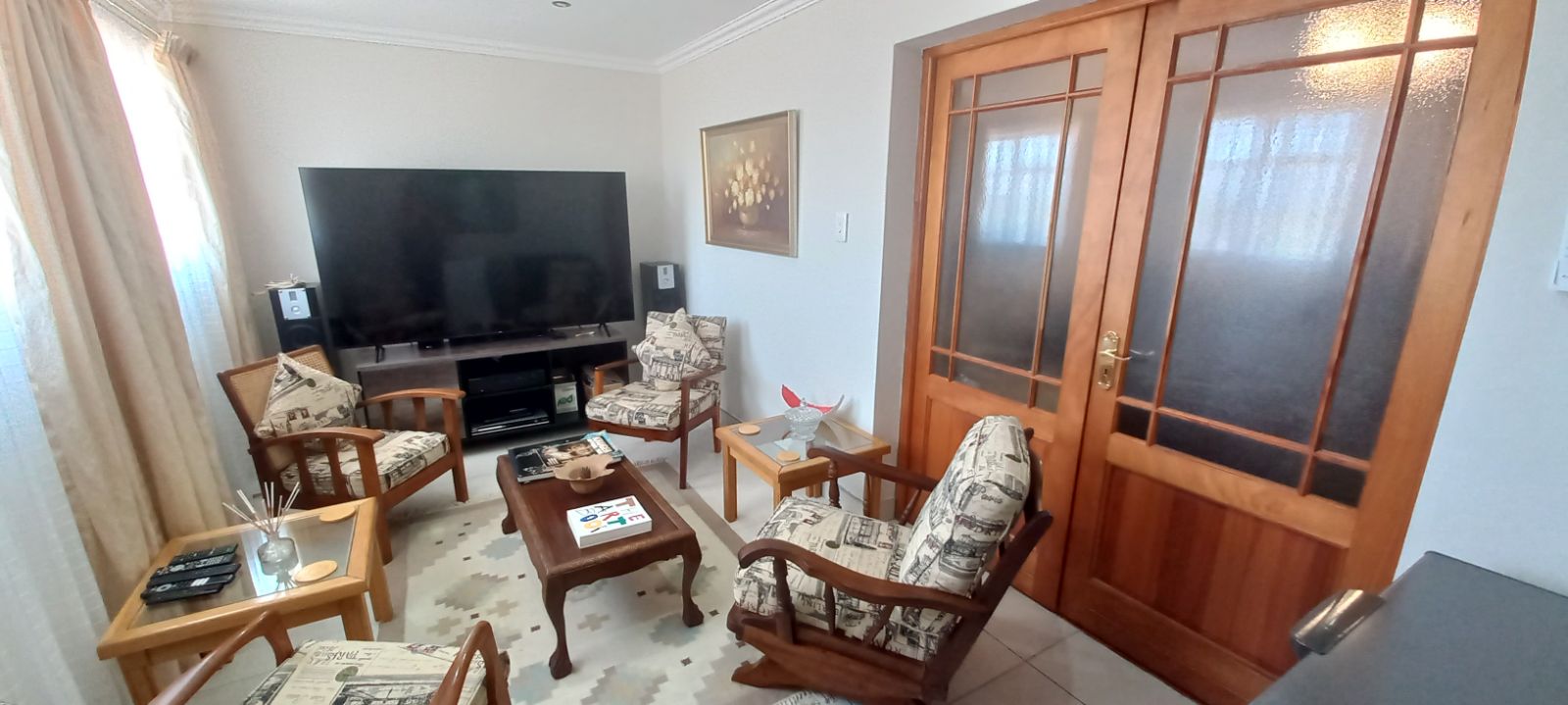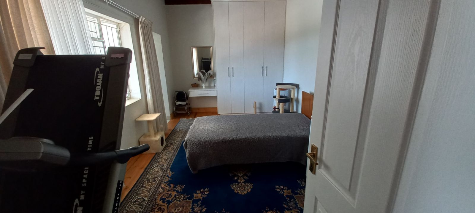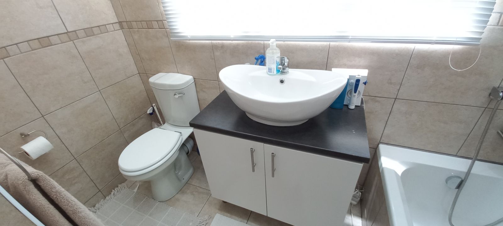A flatlet with an open-plan family room and modern kitchen with an air-conditioner, a good size bedroom with built-in cupboards and updated bathroom.