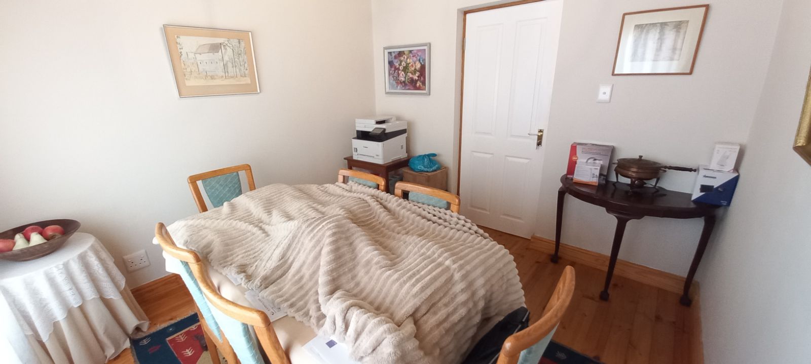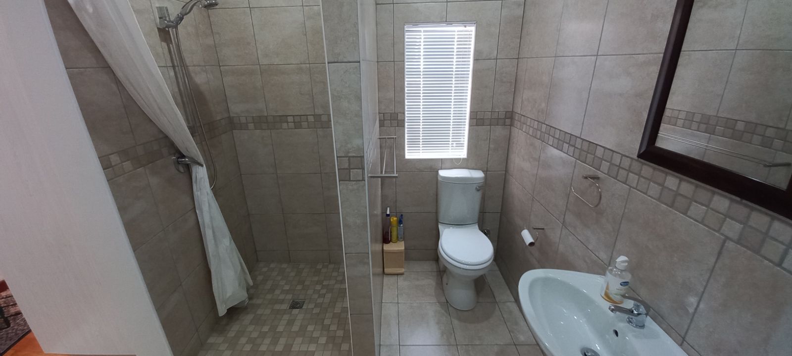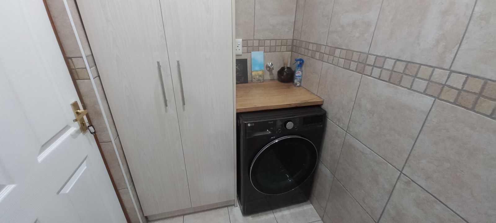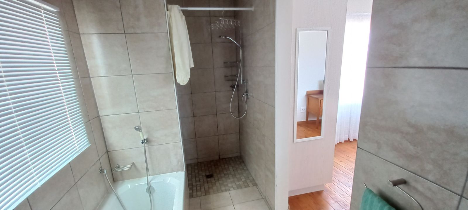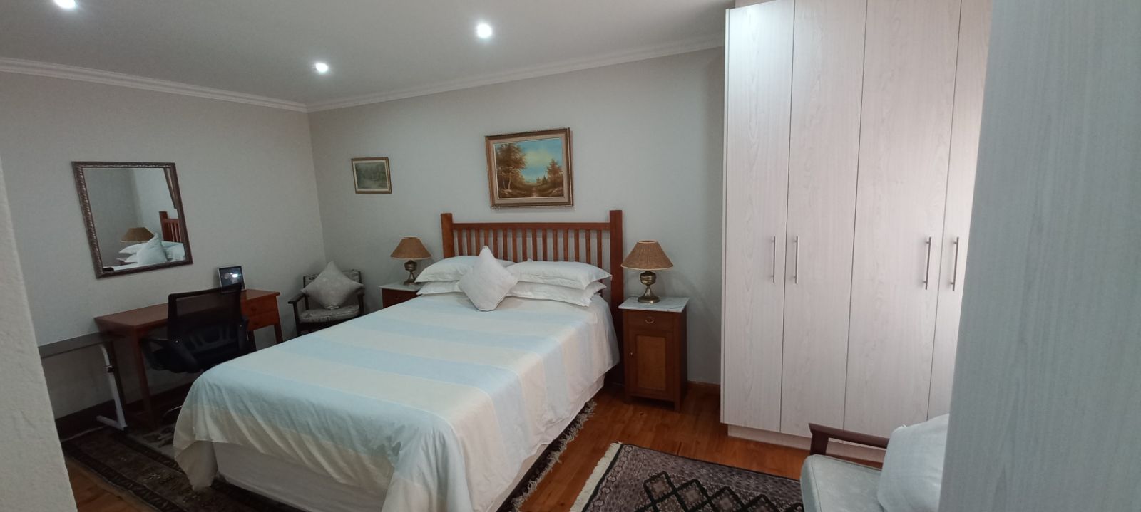 A flatlet with an open-plan family room and modern kitchen with an air-conditioner, a good size bedroom with built-in cupboards and updated bathroom.