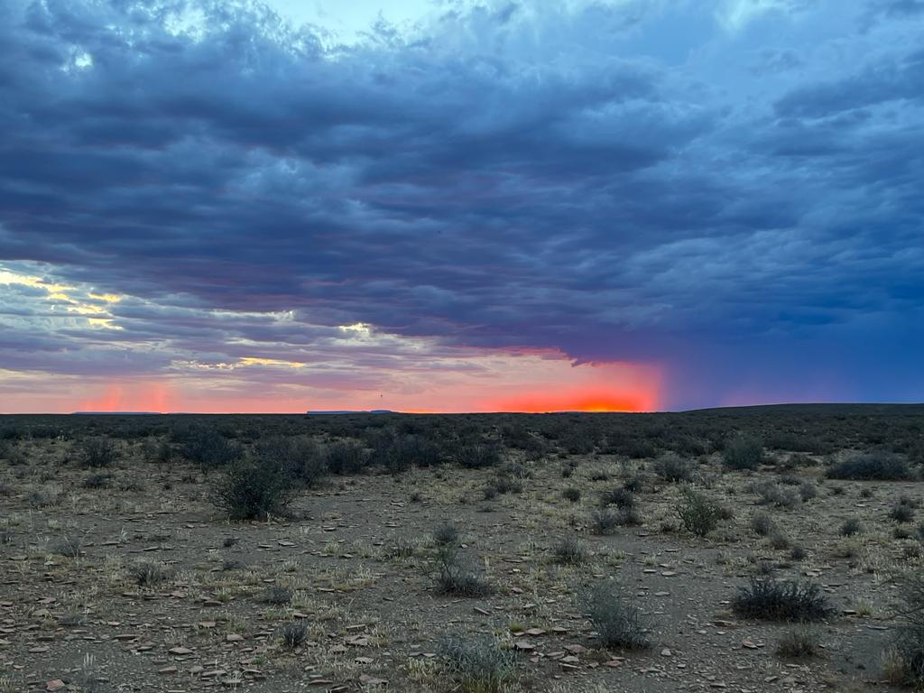 Goeie gespaarde vlakteveld. Rivier loop deur plaas. Lang strook nie standhoudende rivier met baie riet - Karoo spens.