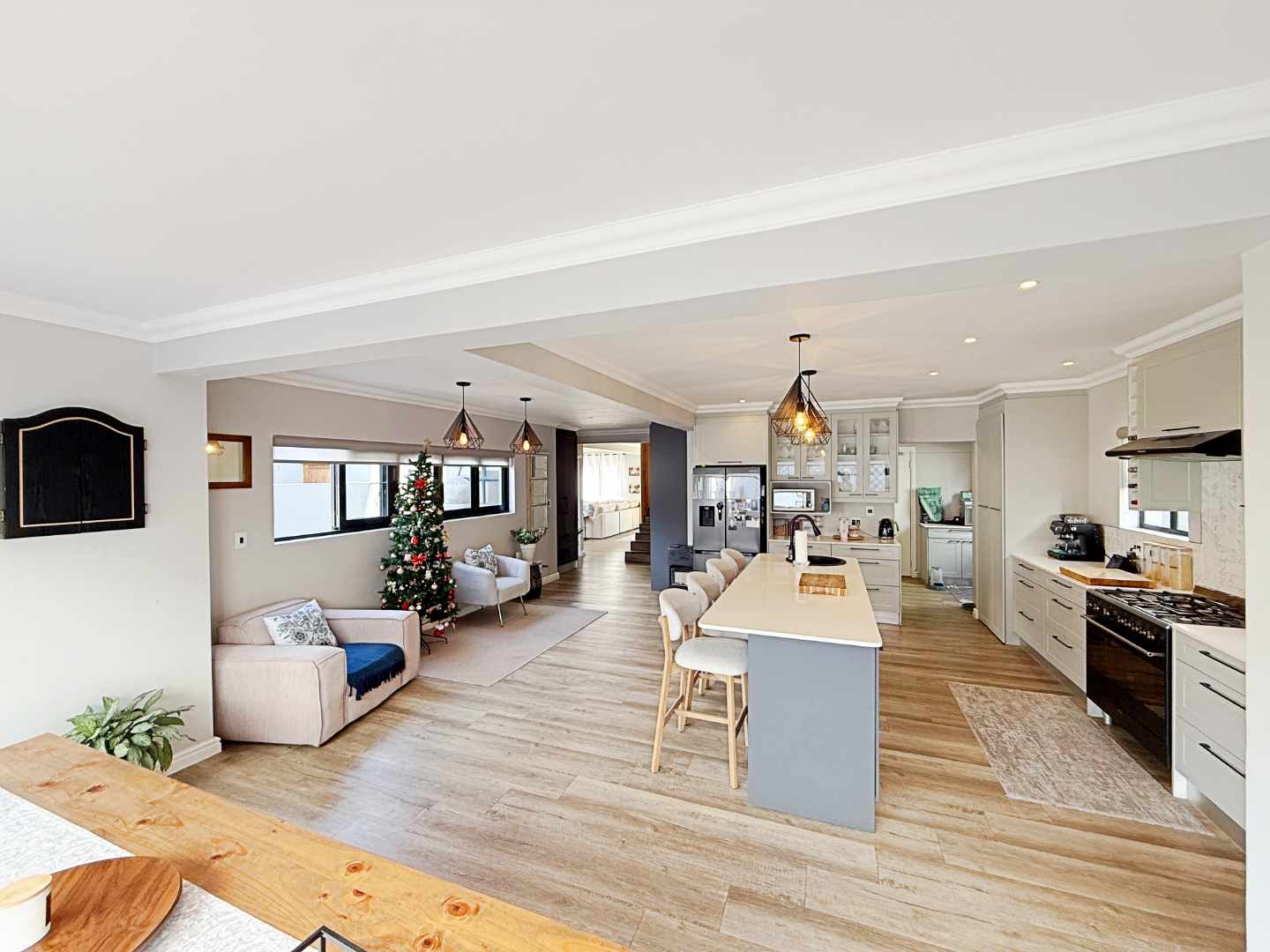 Step into the welcoming main entrance lounge, full of natural light, designed for relaxed conversations and to unwind. As you move further into the heart of the home, you discover the open-plan kitchen and dining room, truly the hub of this superb property.