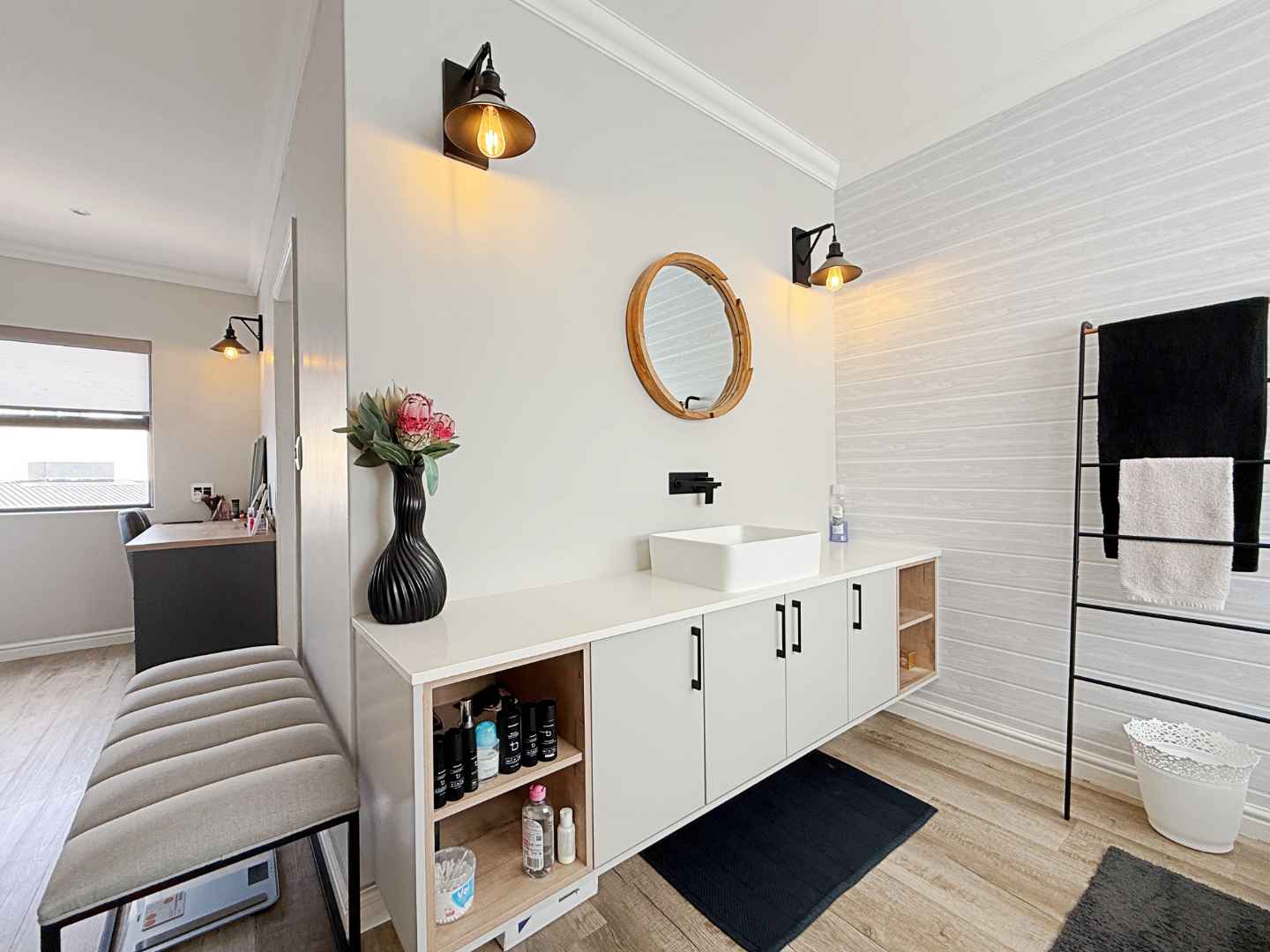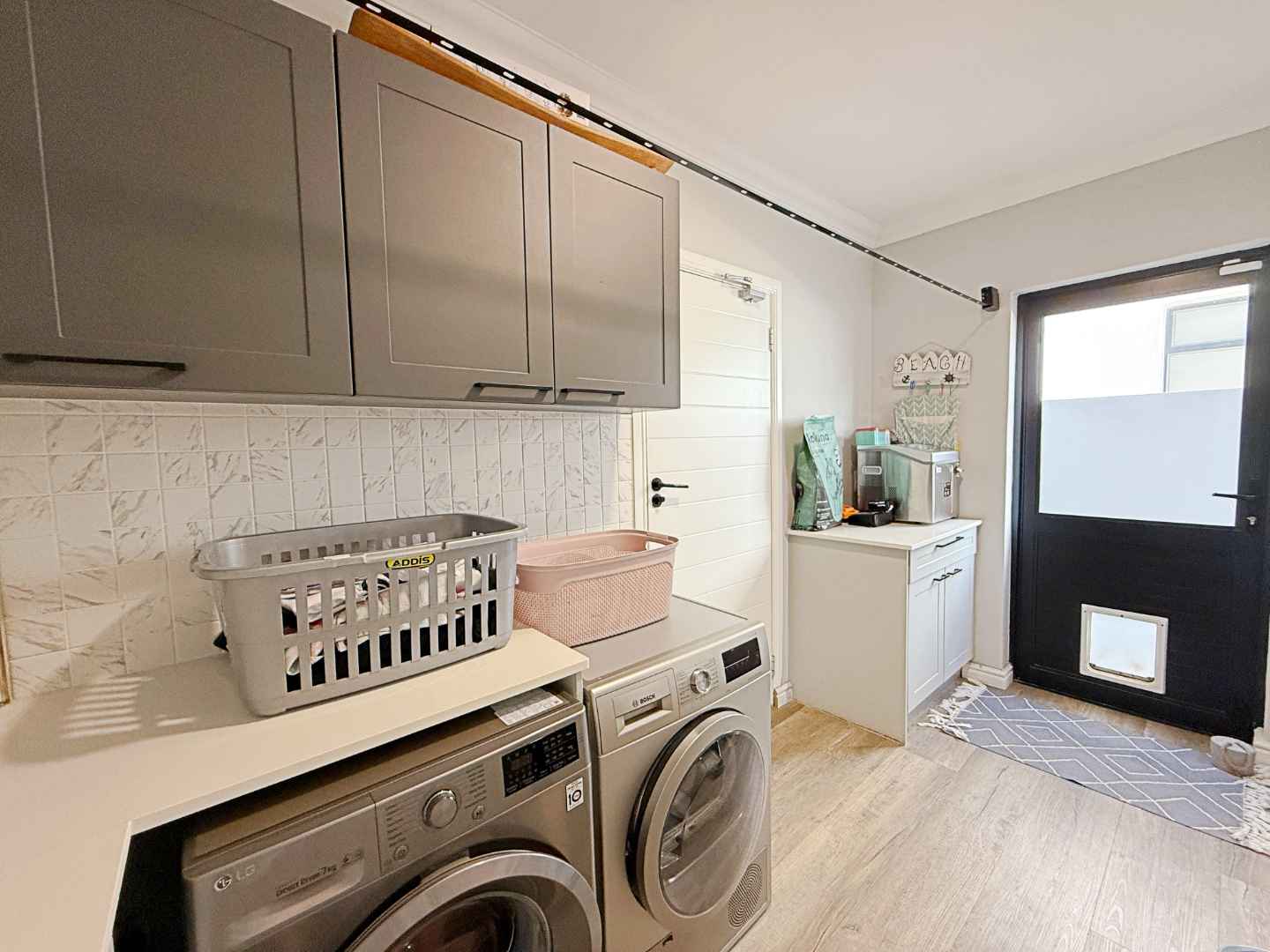 The main bedroom is a spacious, modern and fresh sanctuary. It boasts abundant cupboard space and a sleek, contemporary en-suite bathroom, offering a luxurious retreat after a day at the beach. Beyond the main suite, the home offers three superb family or guest bedrooms, featuring fitted cupboards and two rooms boast the luxury of a private en-suite, with the third bedroom utilizing the nearby full modern bathroom.