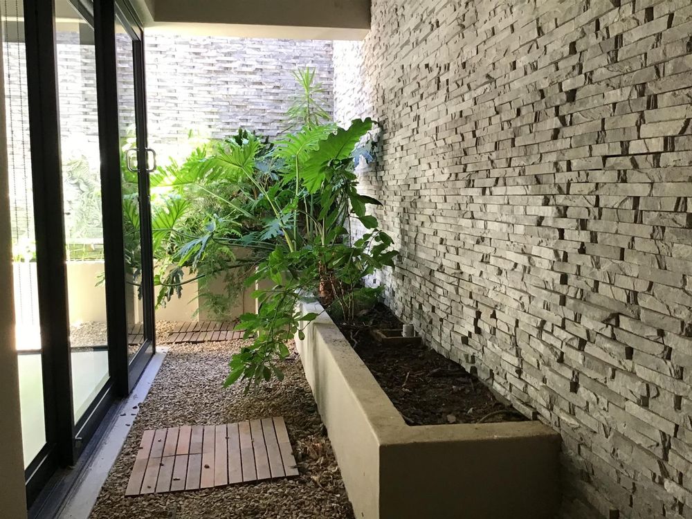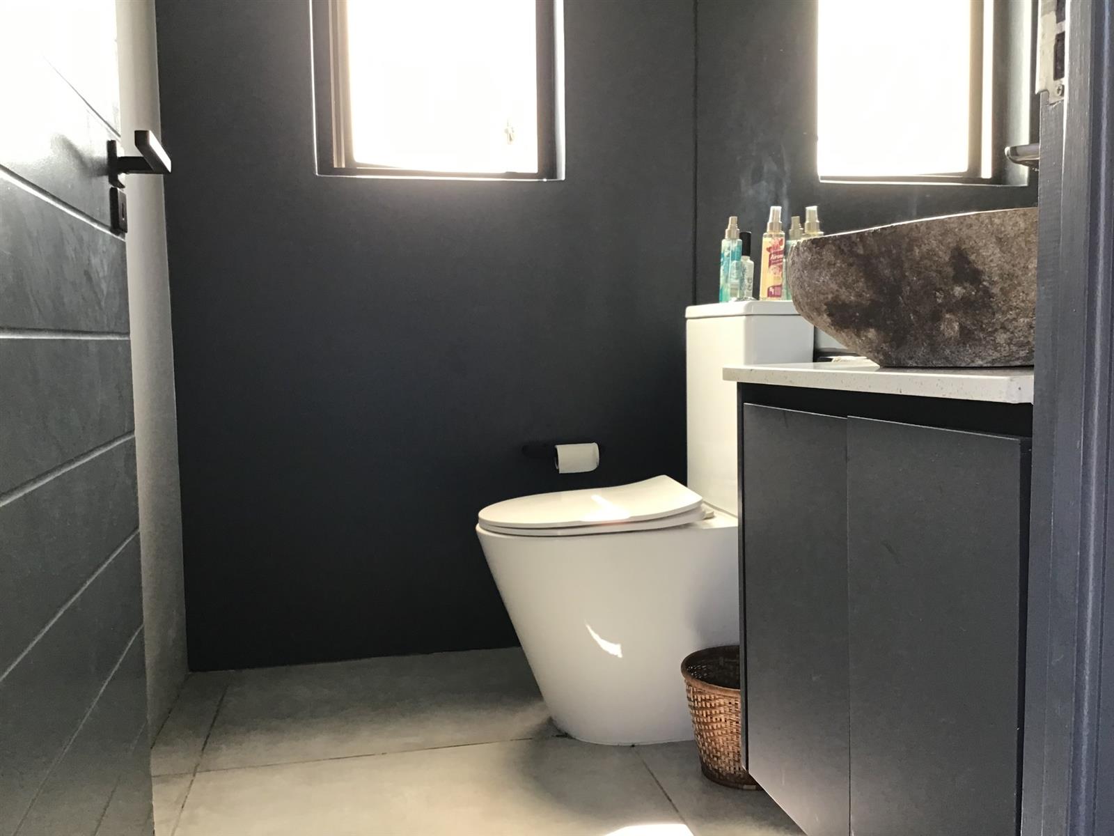 The main bedroom is a restful escape, offering generous cupboard space, a calming modern en-suite, and both indoor and outdoor showers—an intimate retreat surrounded by lush greenery. Each bedroom opens to its own private outdoor nook, inviting quiet moments of reflection. Downstairs, you’ll find ample storage, adding practicality to luxury.