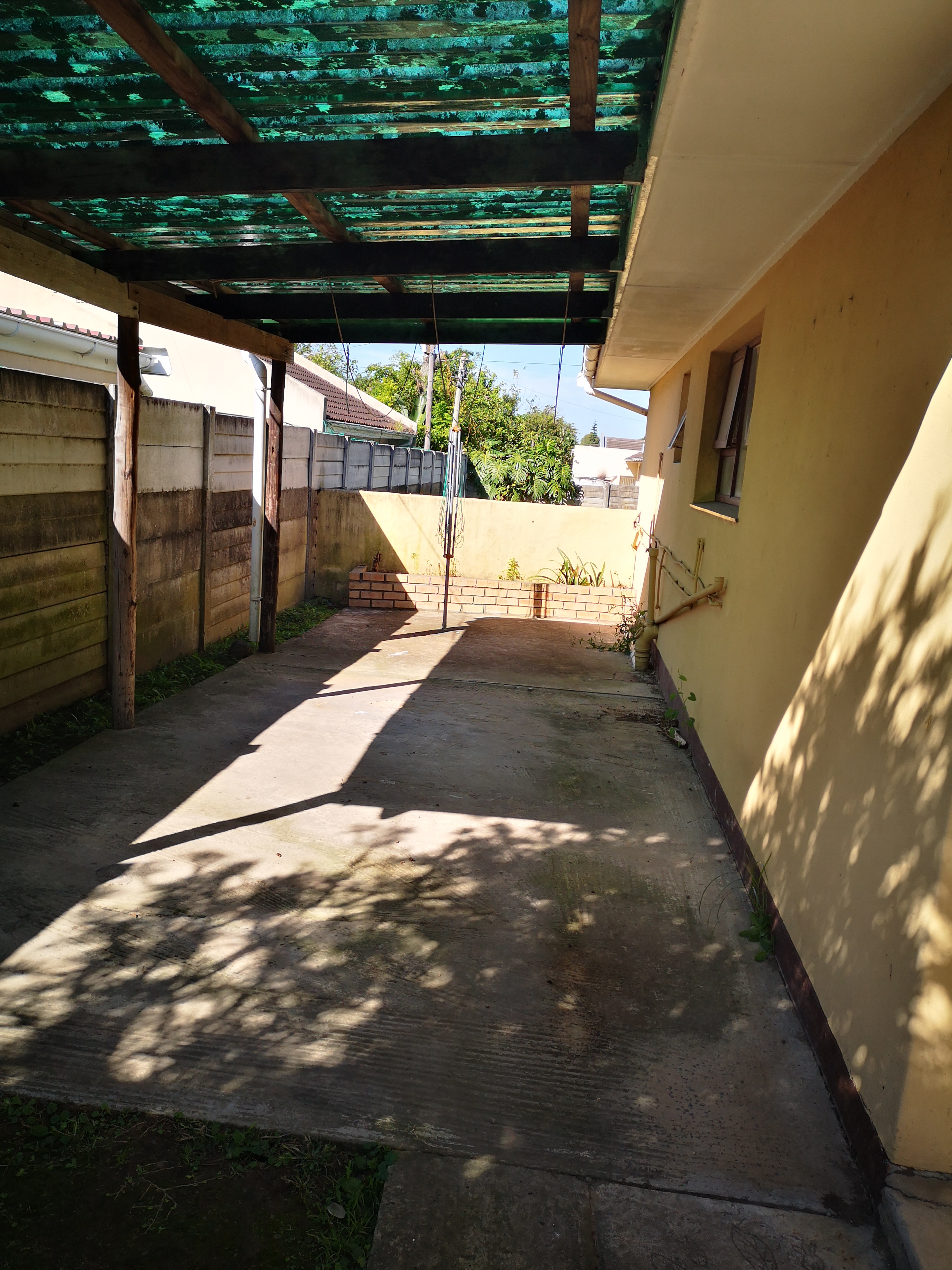 A lovely covered patio and a car port.