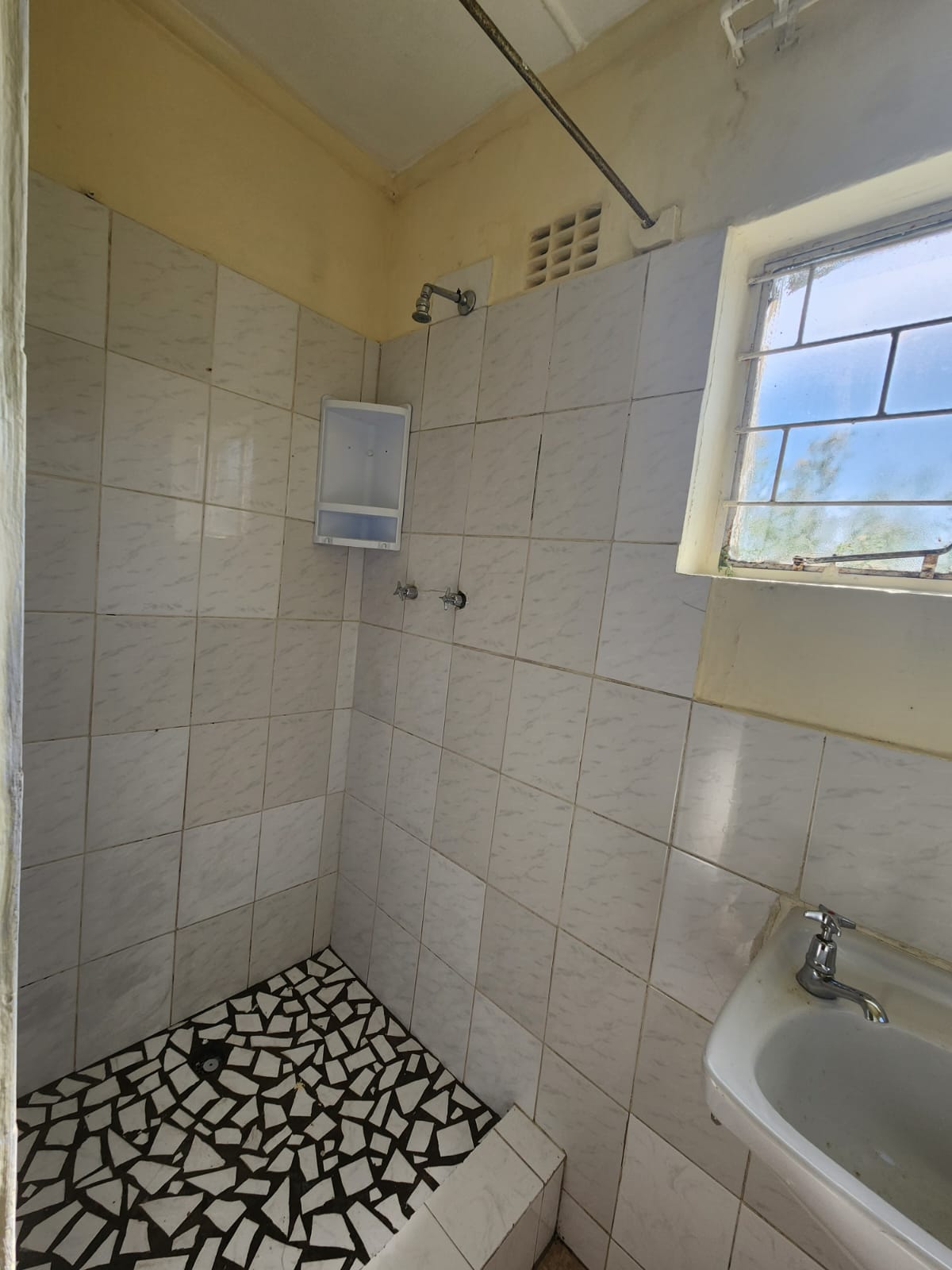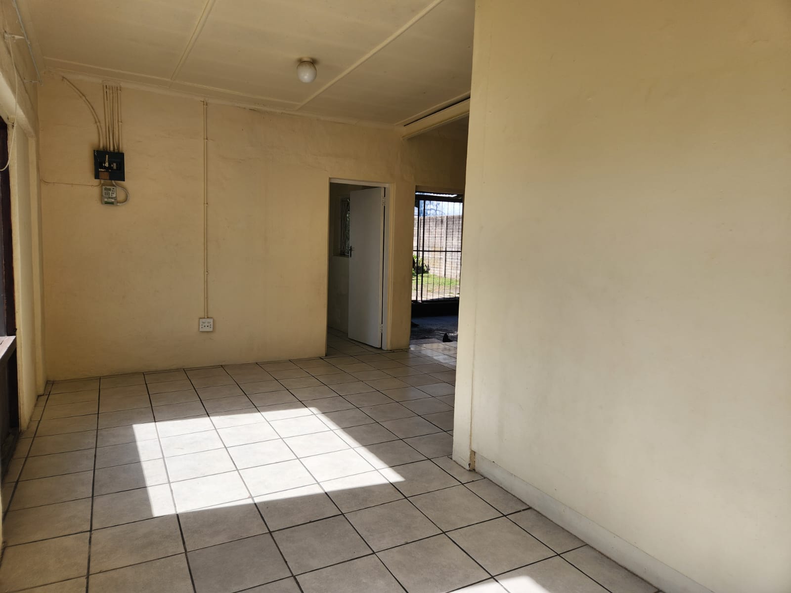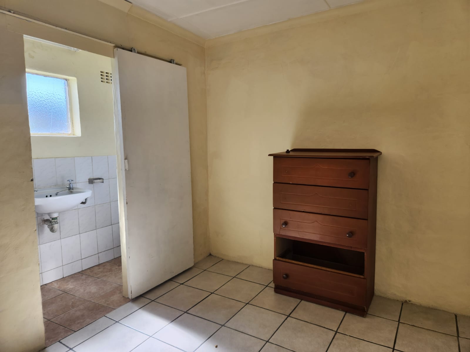 The bedrooms are tiled, and the main bedroom has built in cupboards.