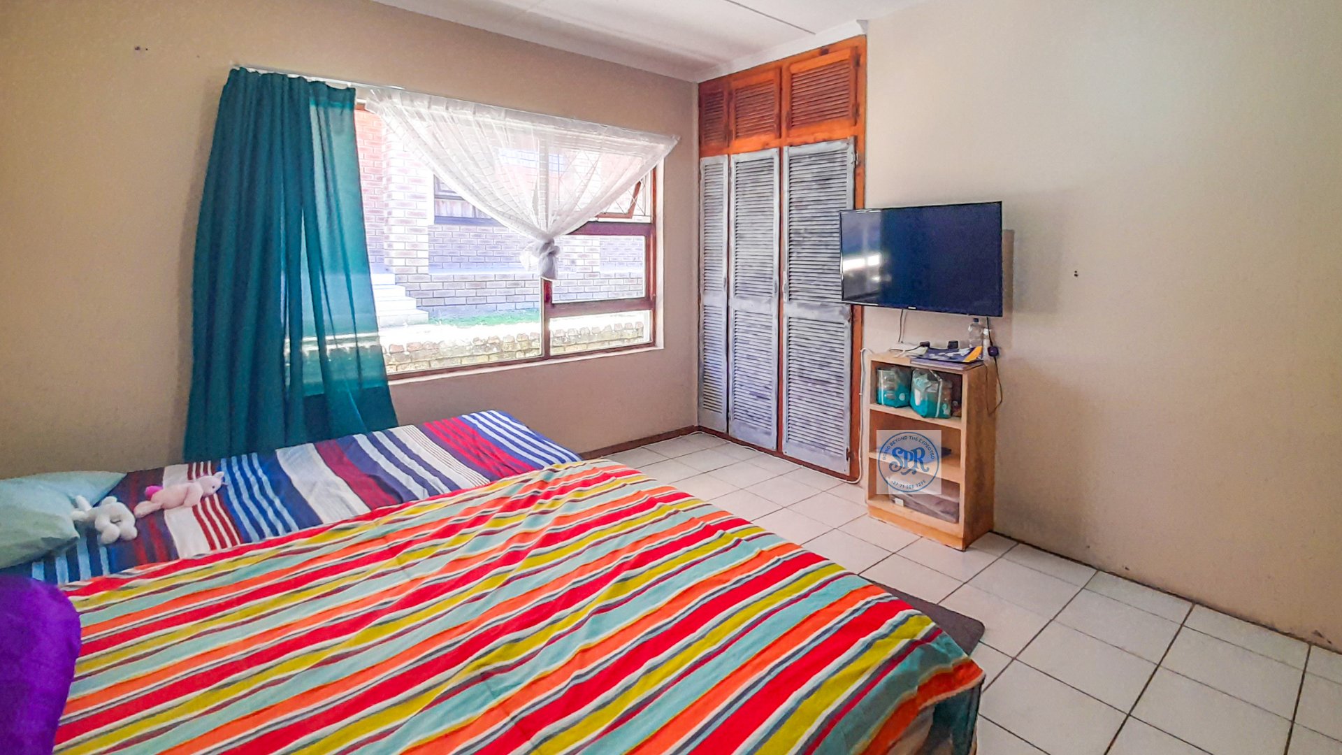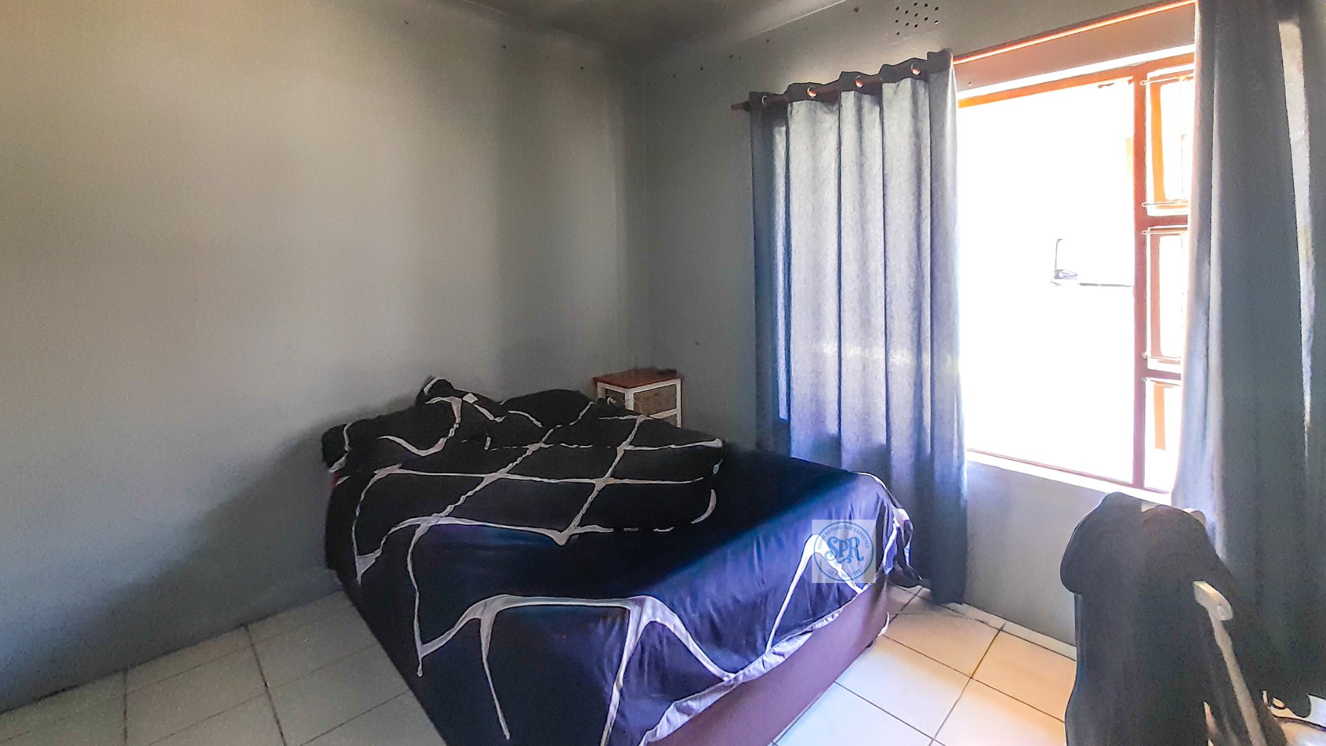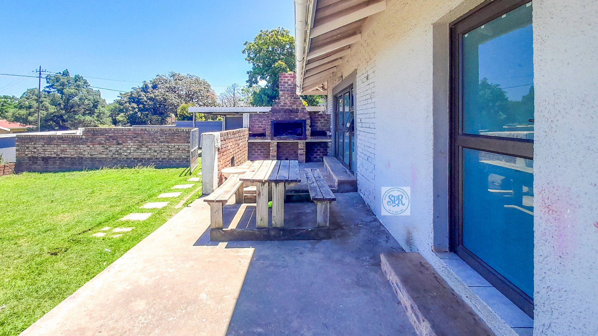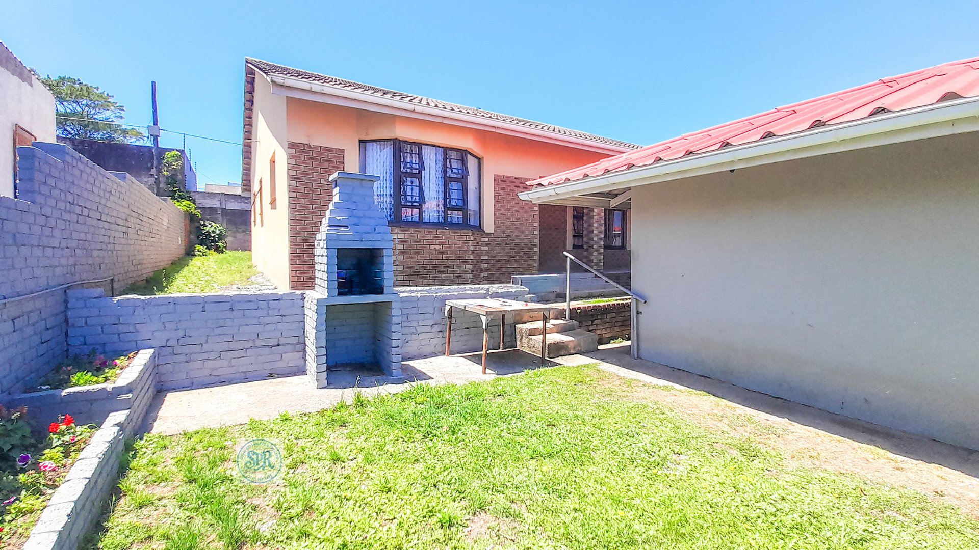 Now, the second house is the stylish one. Accessed through its own remote entrance and double carport, it opens into a garden with its own braai spot (because one braai is never enough). Step inside and you’ll find a modern lounge, a few stairs up to the dining area, and a sleek open-plan kitchen with scullery. The bedrooms don’t disappoint either: the main boasts a bay window, a wall of cupboards, and an ensuite with a jacuzzi corner bath that practically begs for bubbles. The second bedroom is equally spacious, and there’s a second full bathroom to keep everyone happy.