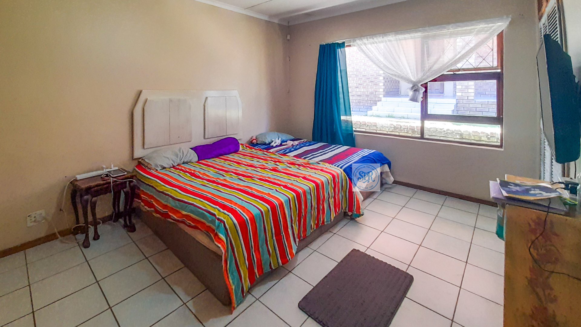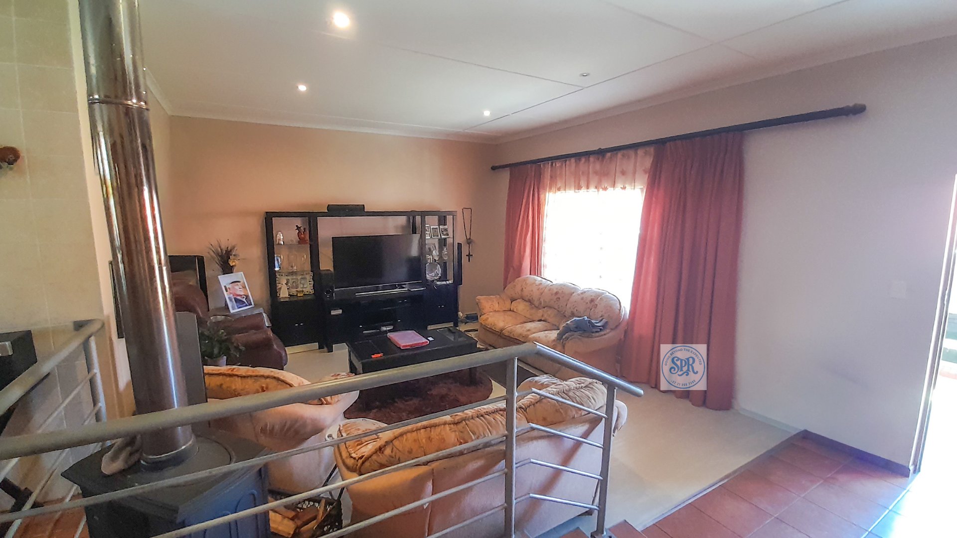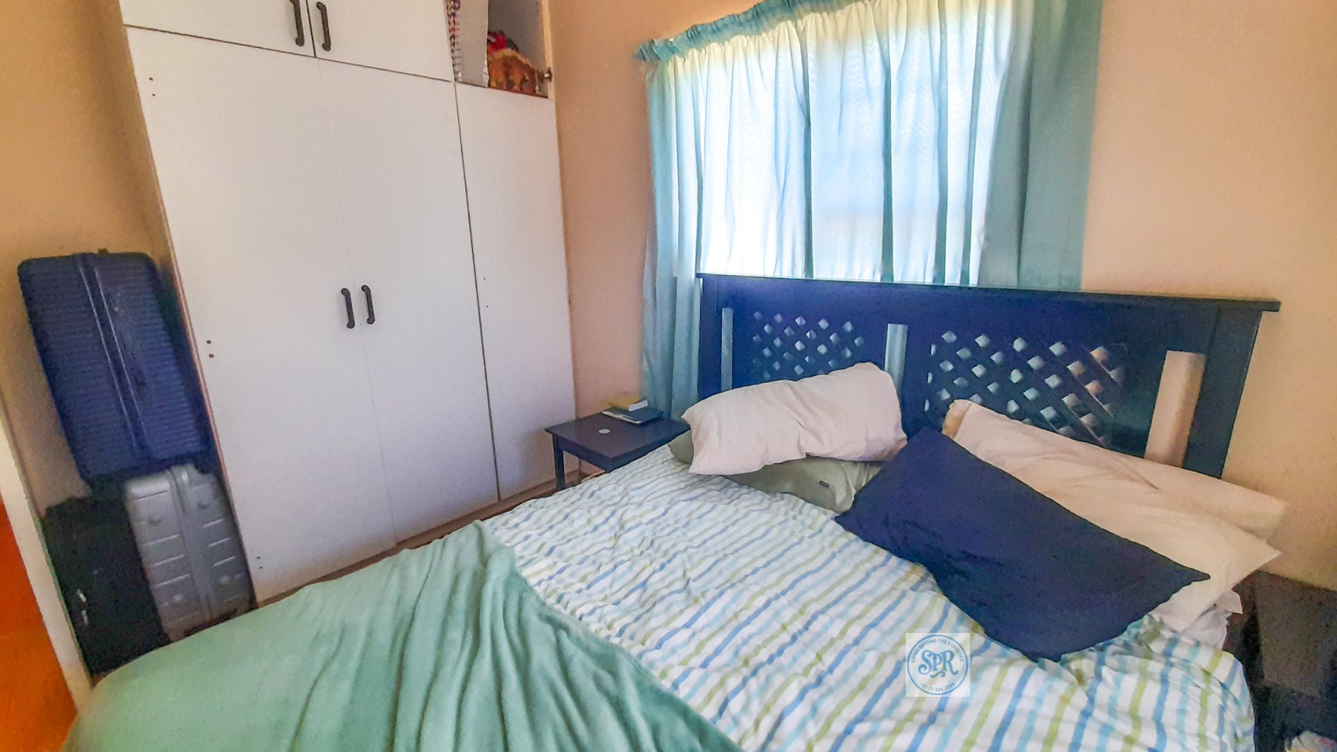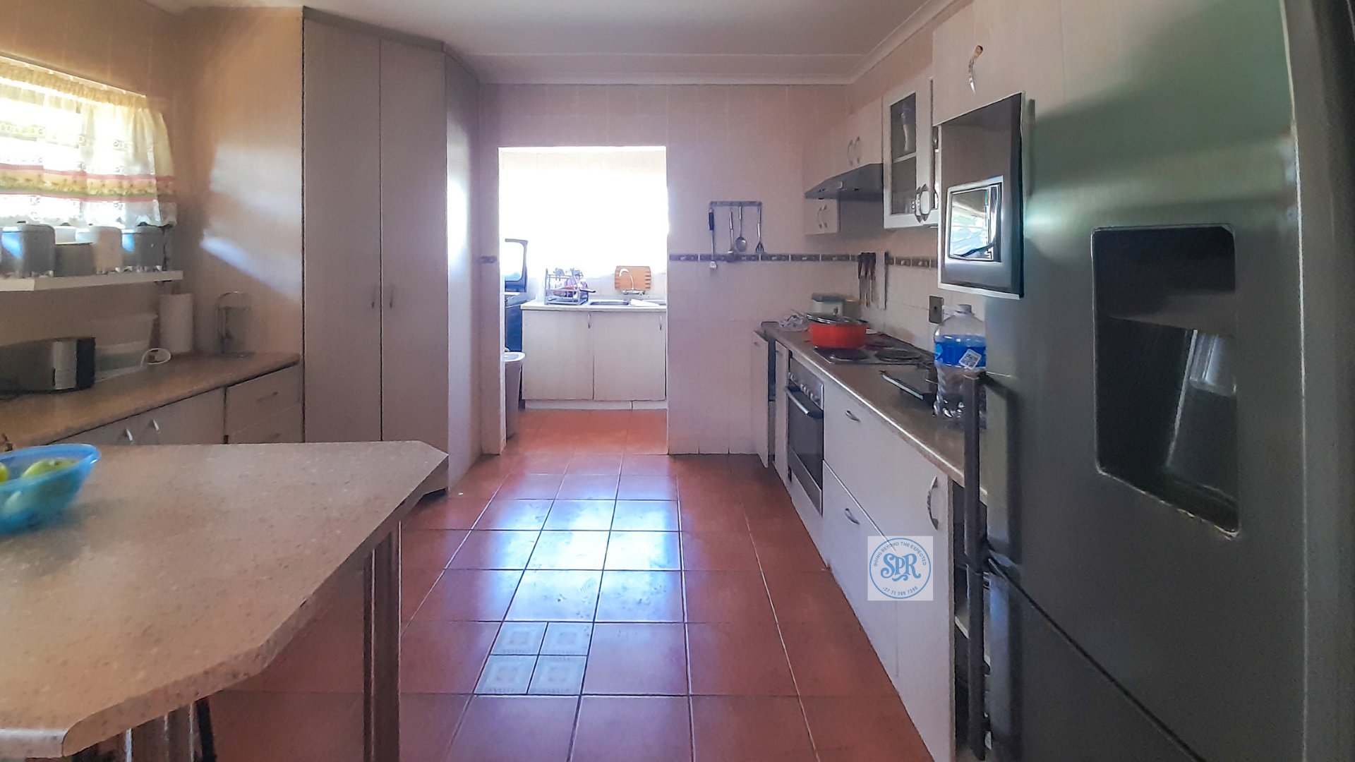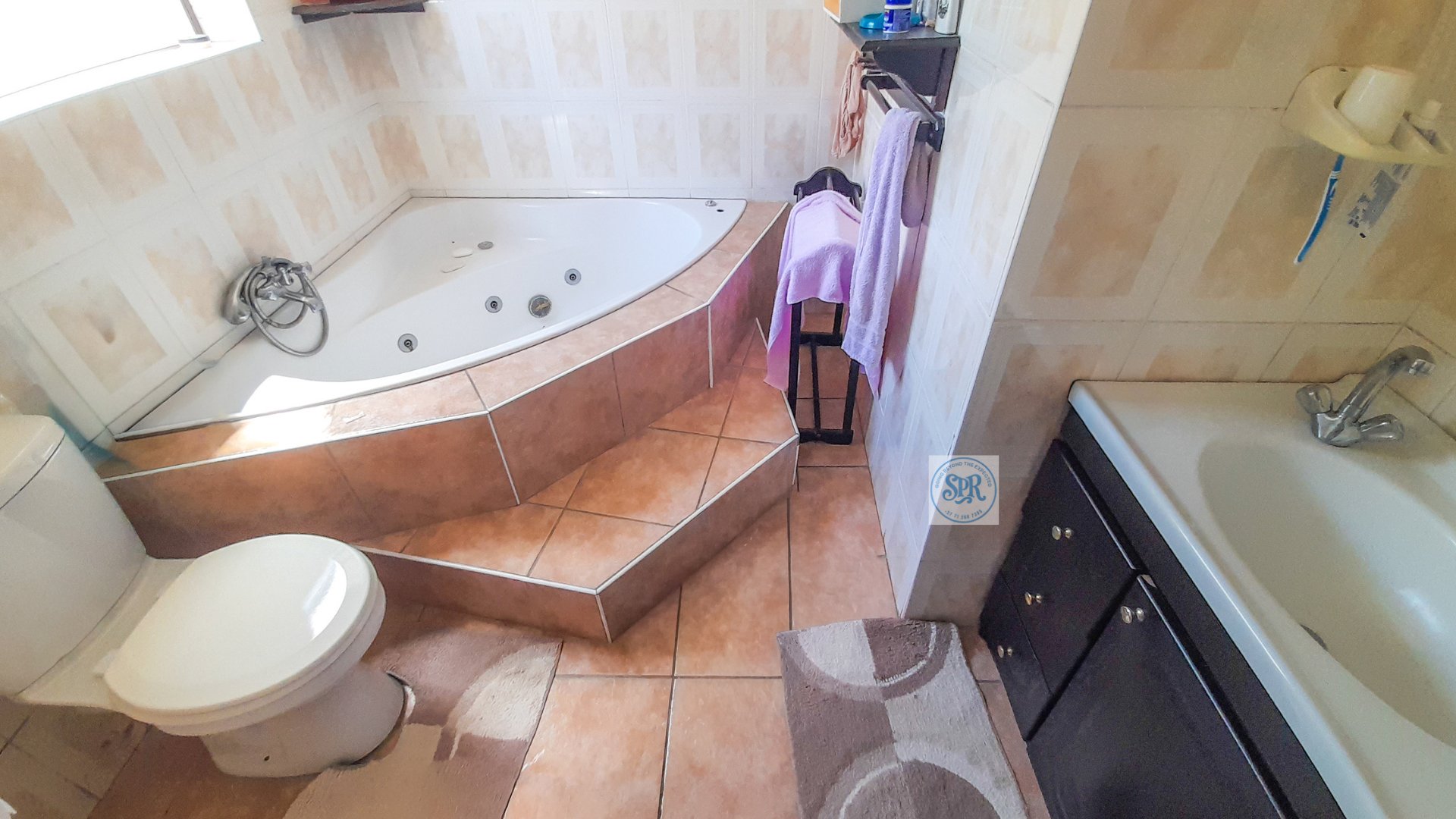 Now, the second house is the stylish one. Accessed through its own remote entrance and double carport, it opens into a garden with its own braai spot (because one braai is never enough). Step inside and you’ll find a modern lounge, a few stairs up to the dining area, and a sleek open-plan kitchen with scullery. The bedrooms don’t disappoint either: the main boasts a bay window, a wall of cupboards, and an ensuite with a jacuzzi corner bath that practically begs for bubbles. The second bedroom is equally spacious, and there’s a second full bathroom to keep everyone happy.