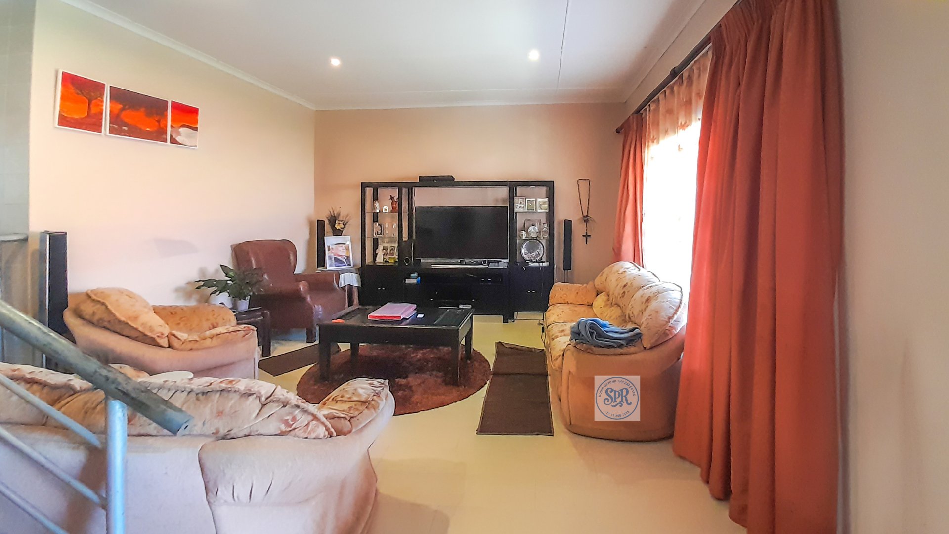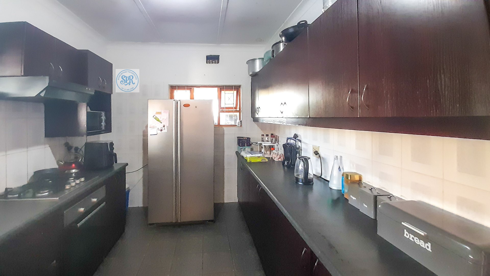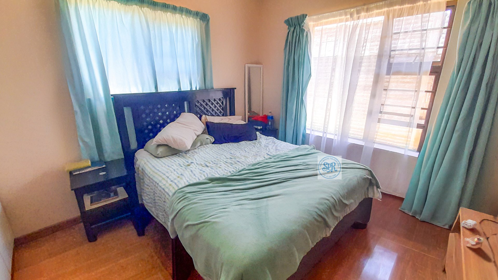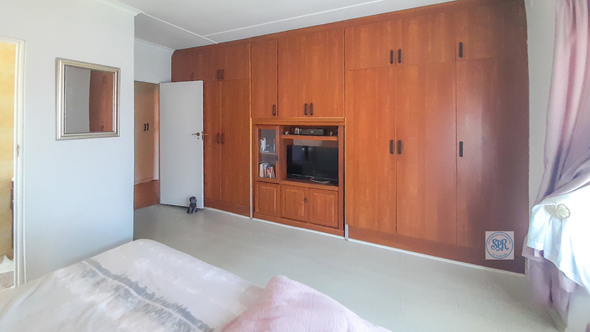 Now, the second house is the stylish one. Accessed through its own remote entrance and double carport, it opens into a garden with its own braai spot (because one braai is never enough). Step inside and you’ll find a modern lounge, a few stairs up to the dining area, and a sleek open-plan kitchen with scullery. The bedrooms don’t disappoint either: the main boasts a bay window, a wall of cupboards, and an ensuite with a jacuzzi corner bath that practically begs for bubbles. The second bedroom is equally spacious, and there’s a second full bathroom to keep everyone happy.