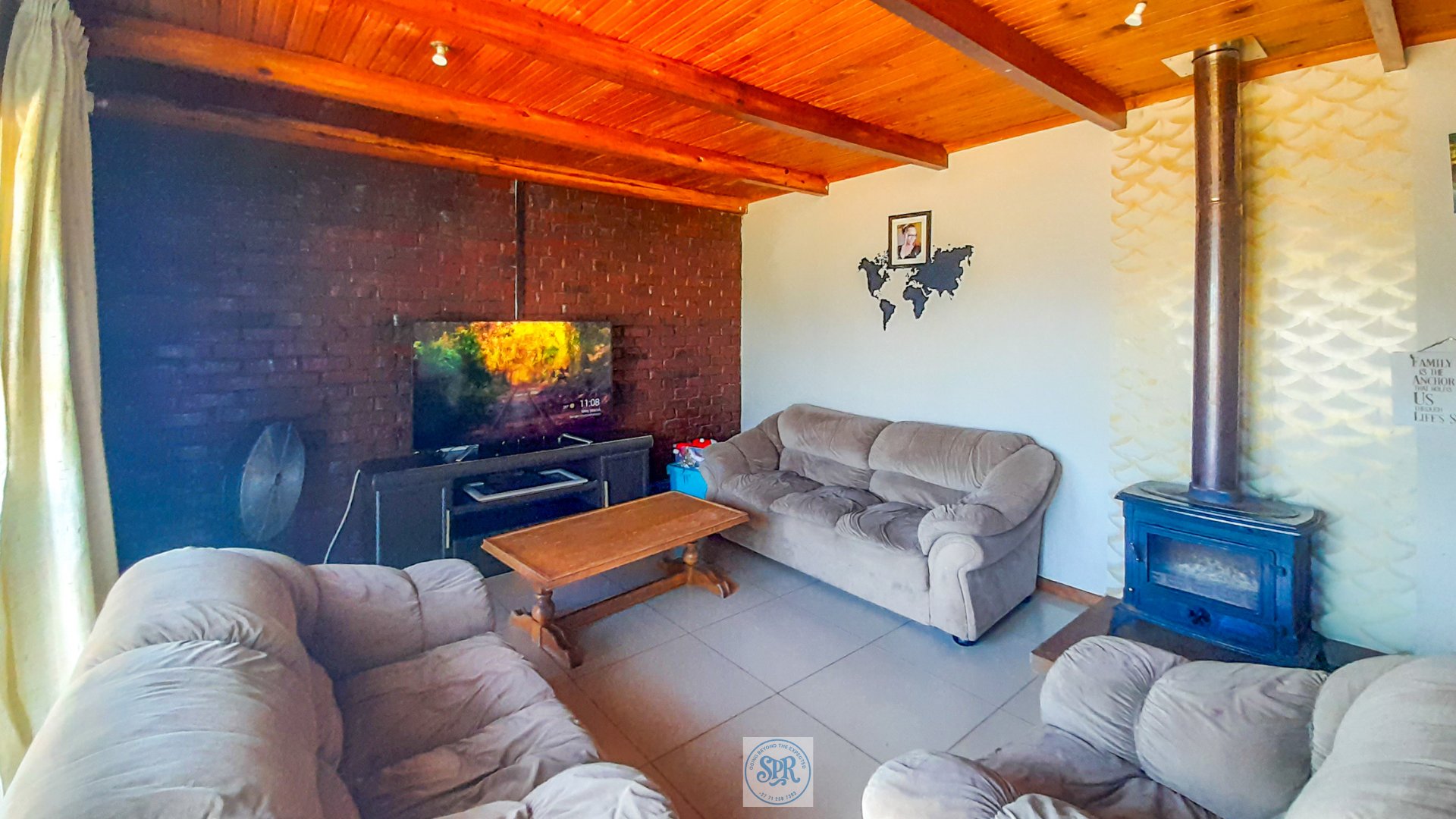 The main house is the seasoned character here: solid bones, some TLC needed, but nothing dramatic. It greets you with three generous bedrooms and two bathrooms, plus a lounge that insists on showing off its Jetmaster fireplace. Glass doors lead you straight to the front porch braai area — because what’s a South African home without a braai at arm’s length? The garden plays its part too, with grass underfoot and those quirky “lollipop” trees and palms guarding the entrance like cheerful ushers. Remote gates and a tandem carport keep the practicalities covered and tucked just off this space you’ll find the flatlet — a self-contained lounge, kitchenette, bedroom and shower en-suite. Perfect for guests, teenagers, or anyone who likes their independence but still wants to sneak back for Sunday lunch.