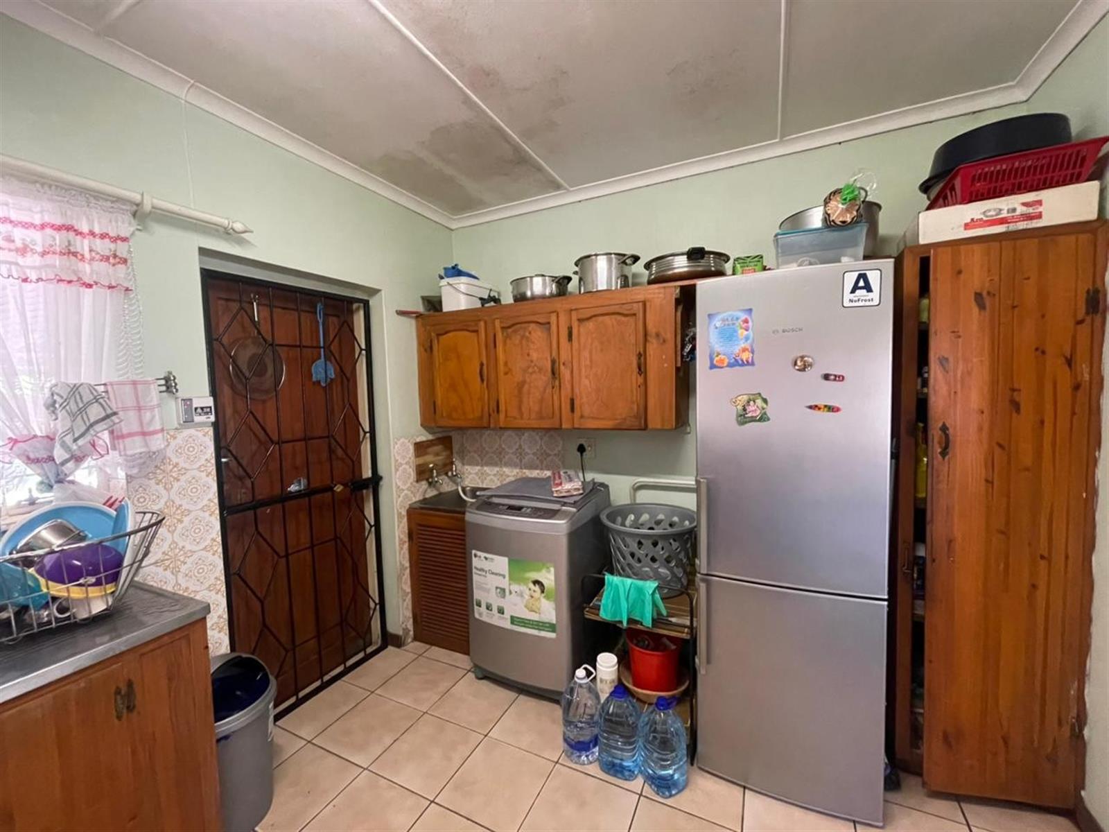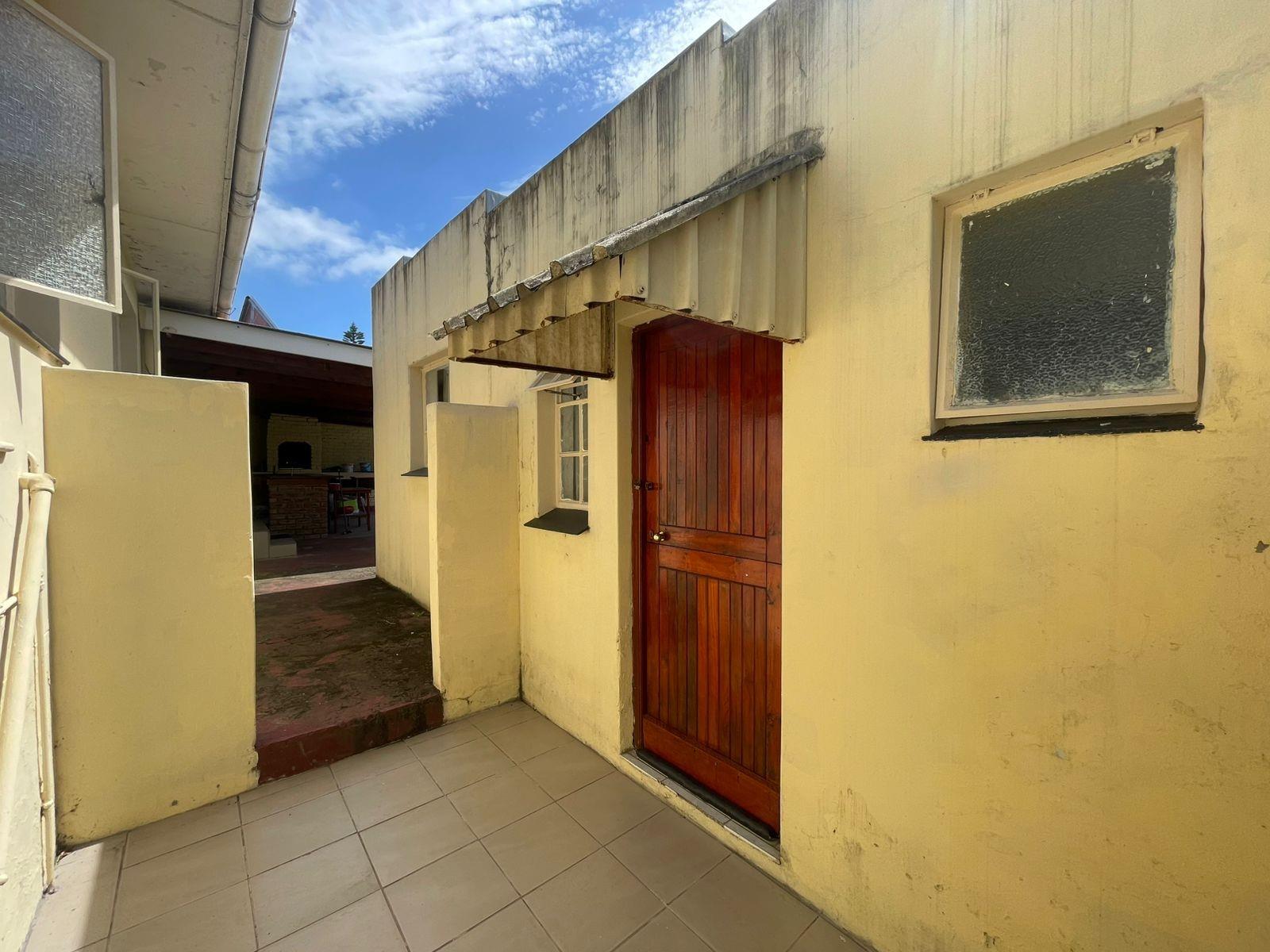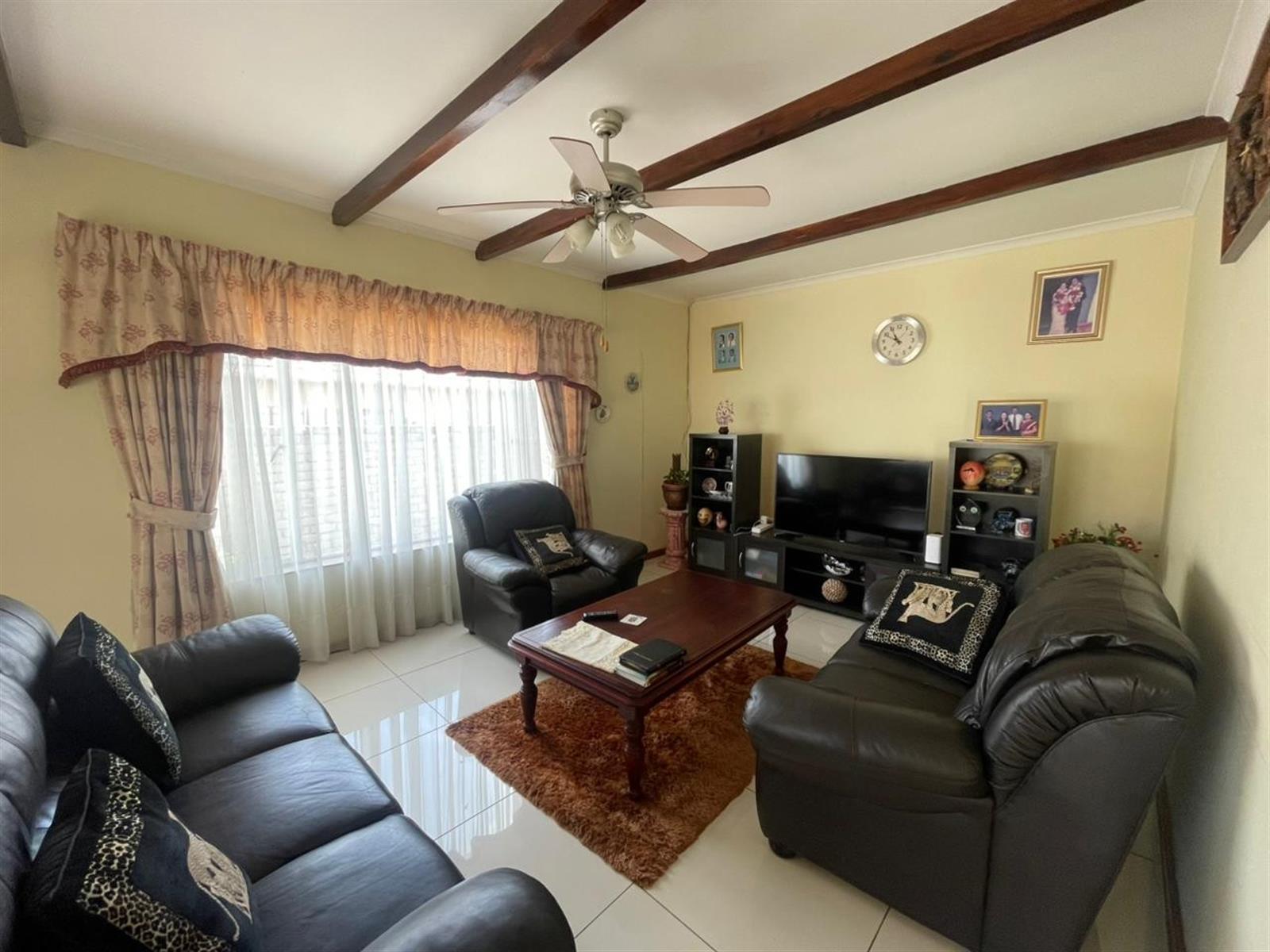The living areas include a sunny lounge and dining area, flowing into a functional kitchen. From the kitchen, a back door leads to a large undercover entertainment area, complete with a built-in braai and bar — ideal for entertaining family and friends.