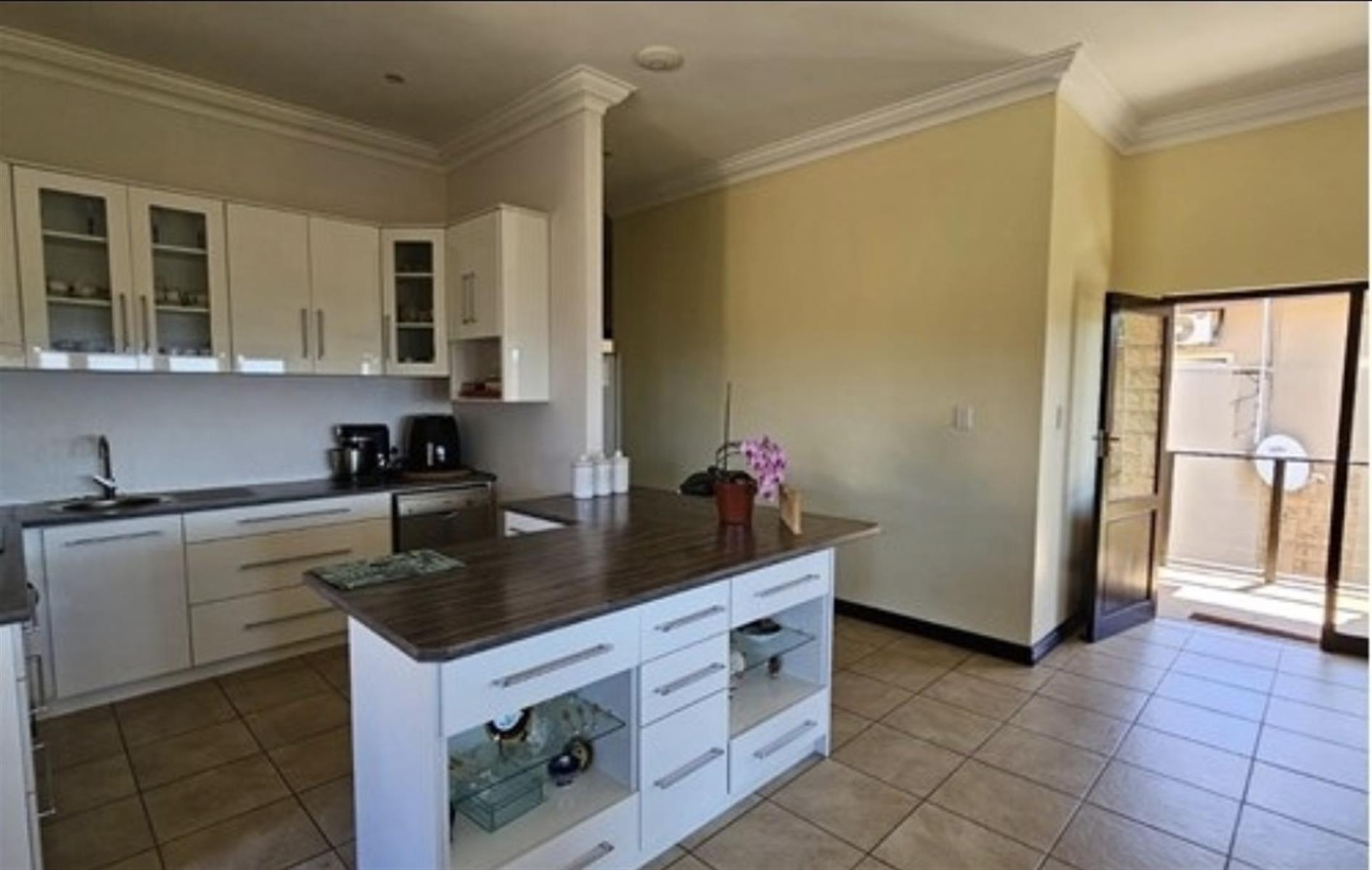 From the moment you walk in, the home invites you into its warm, light-filled open-plan living space where clean lines meet comfort. The modern kitchen is the heart of the home, featuring sleek cabinetry, granite countertops, and premium appliances that make everyday cooking feel gourmet. The lounge and dining area flow seamlessly to an expansive, glass-enclosed verandayour front-row seat to the Conservancys rolling hills and wildlife vistas.