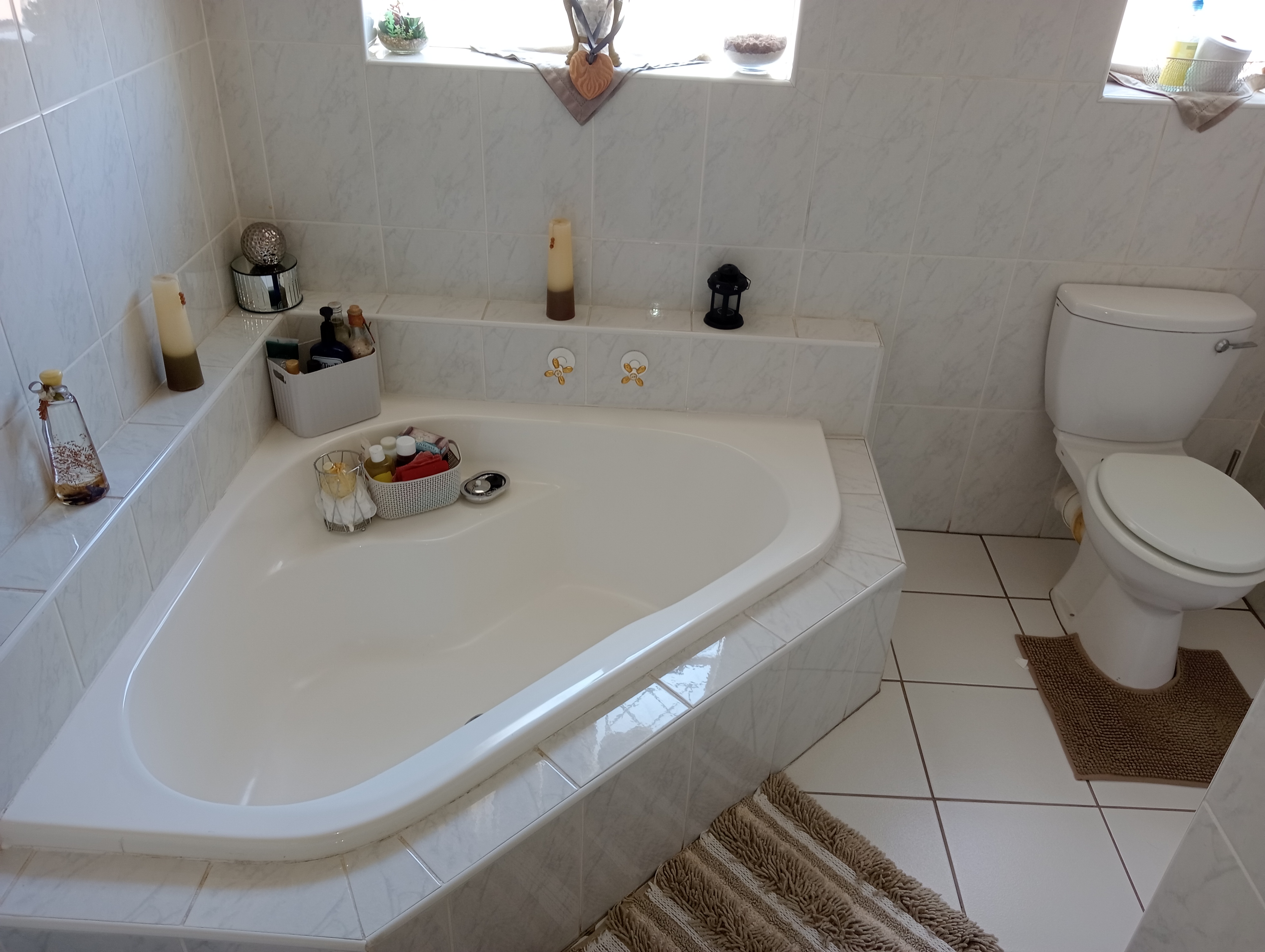 ✅ Family bathroom with corner bath, basin & toilet