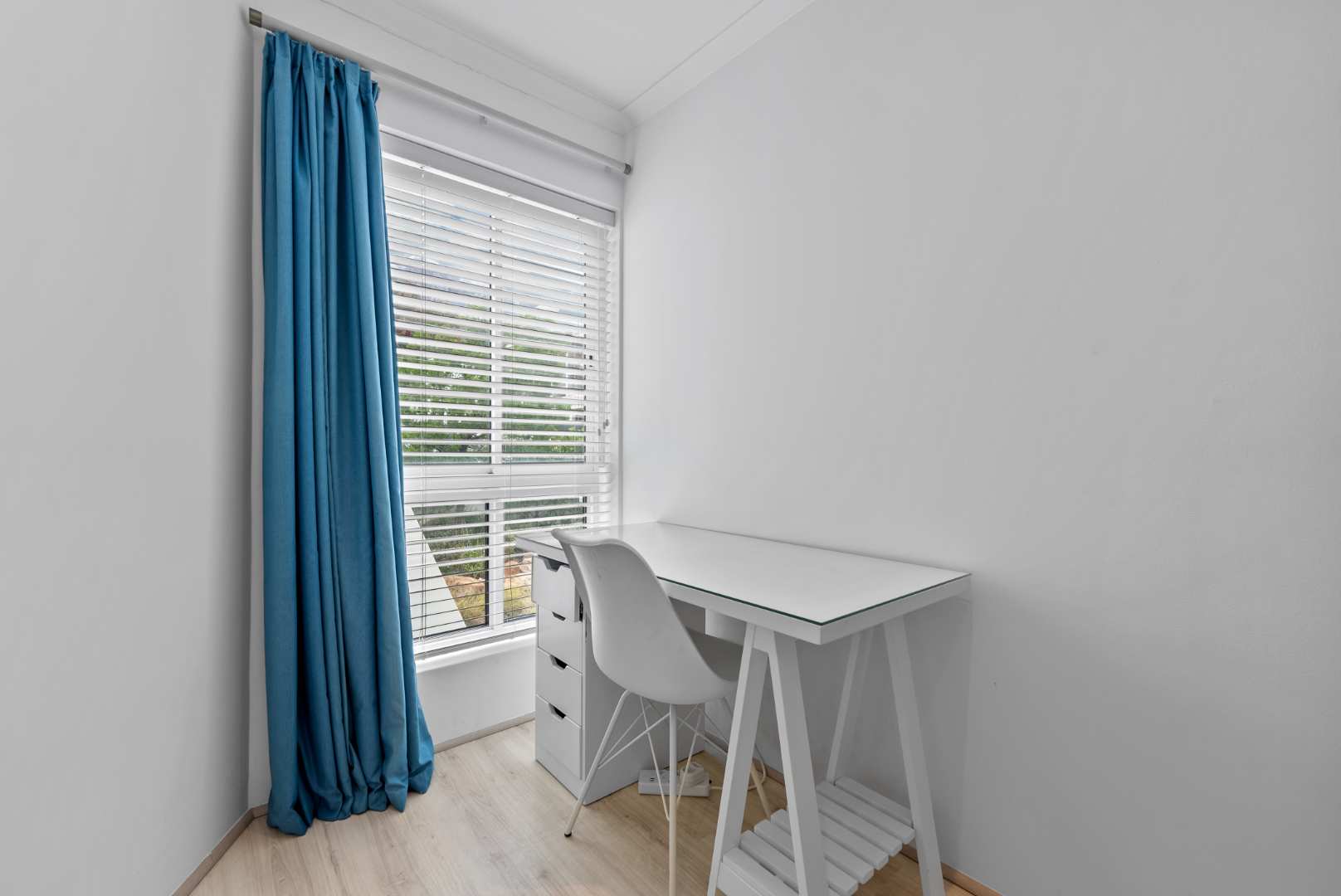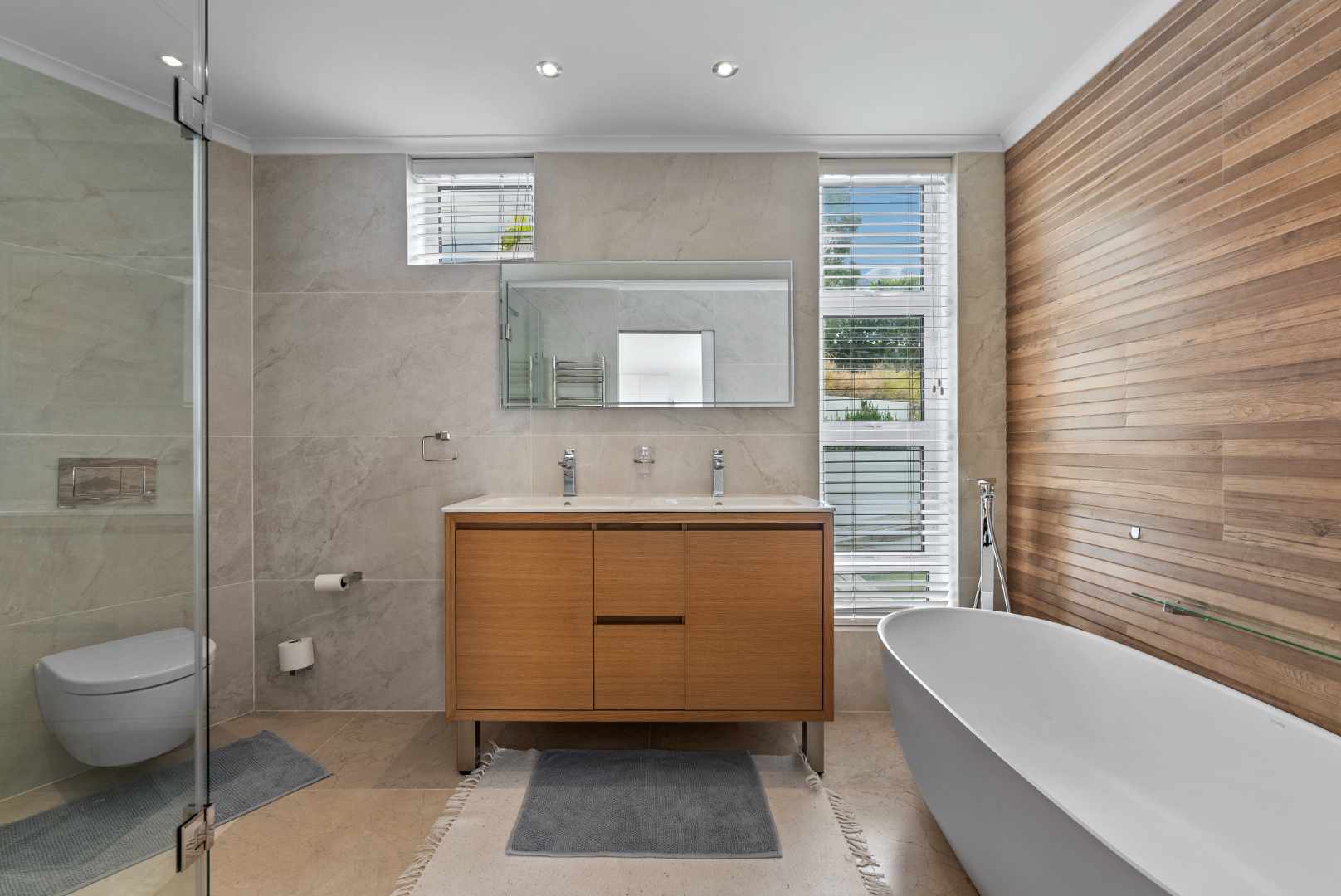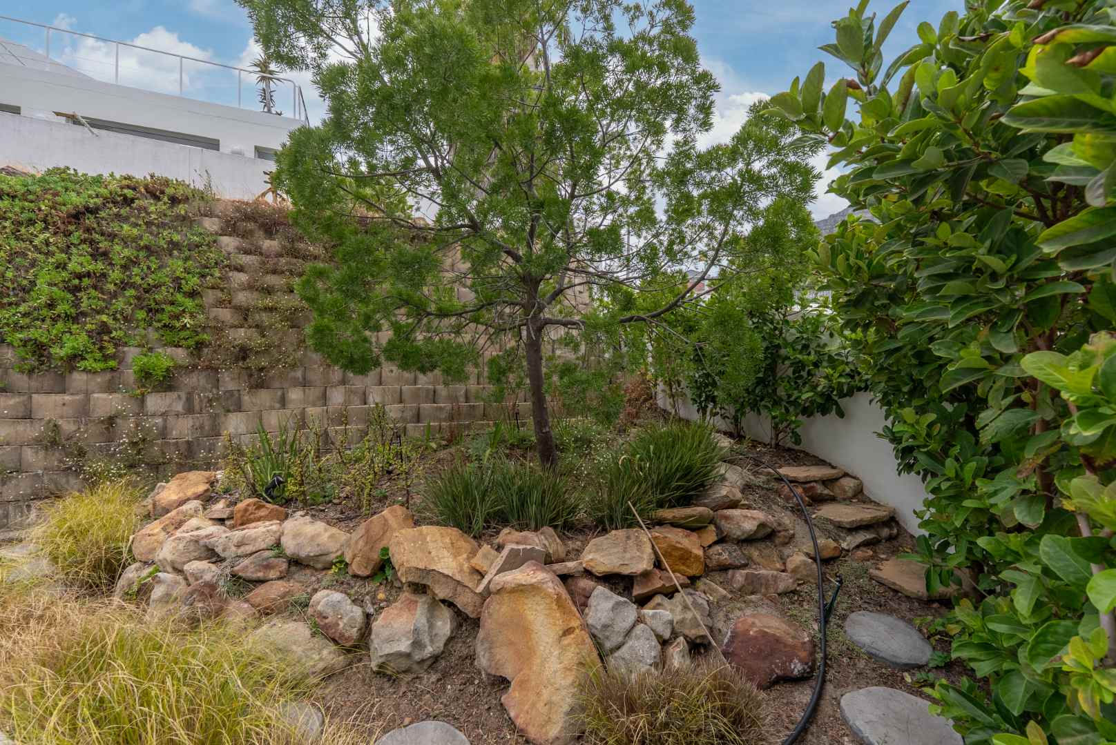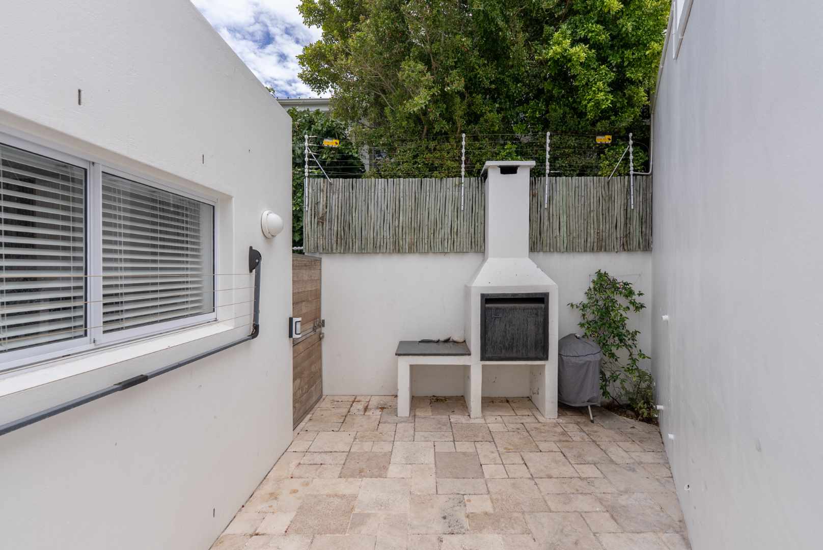 A private rear courtyard with a built-in braai provides an outdoor space ideal for relaxed entertaining.