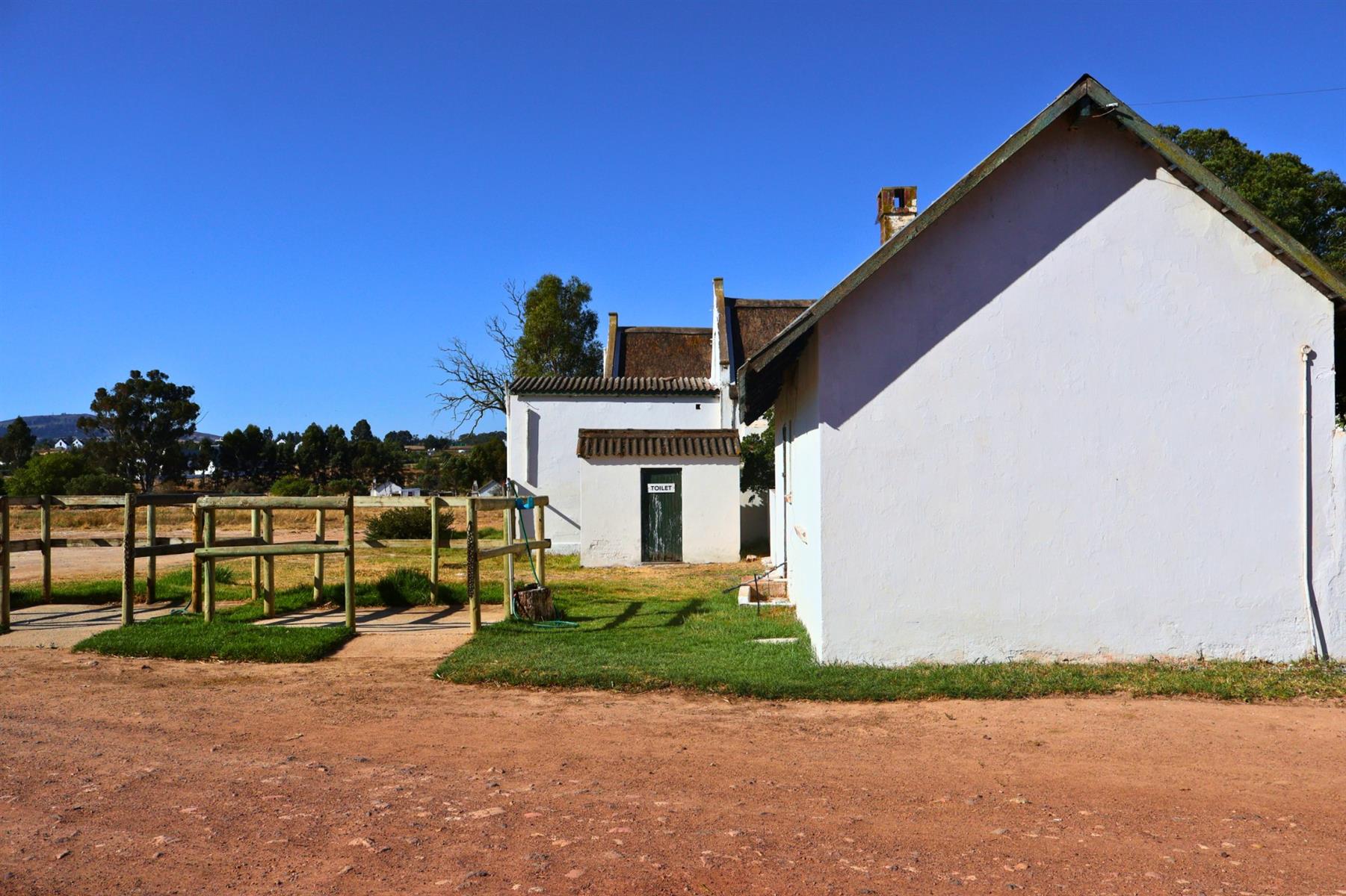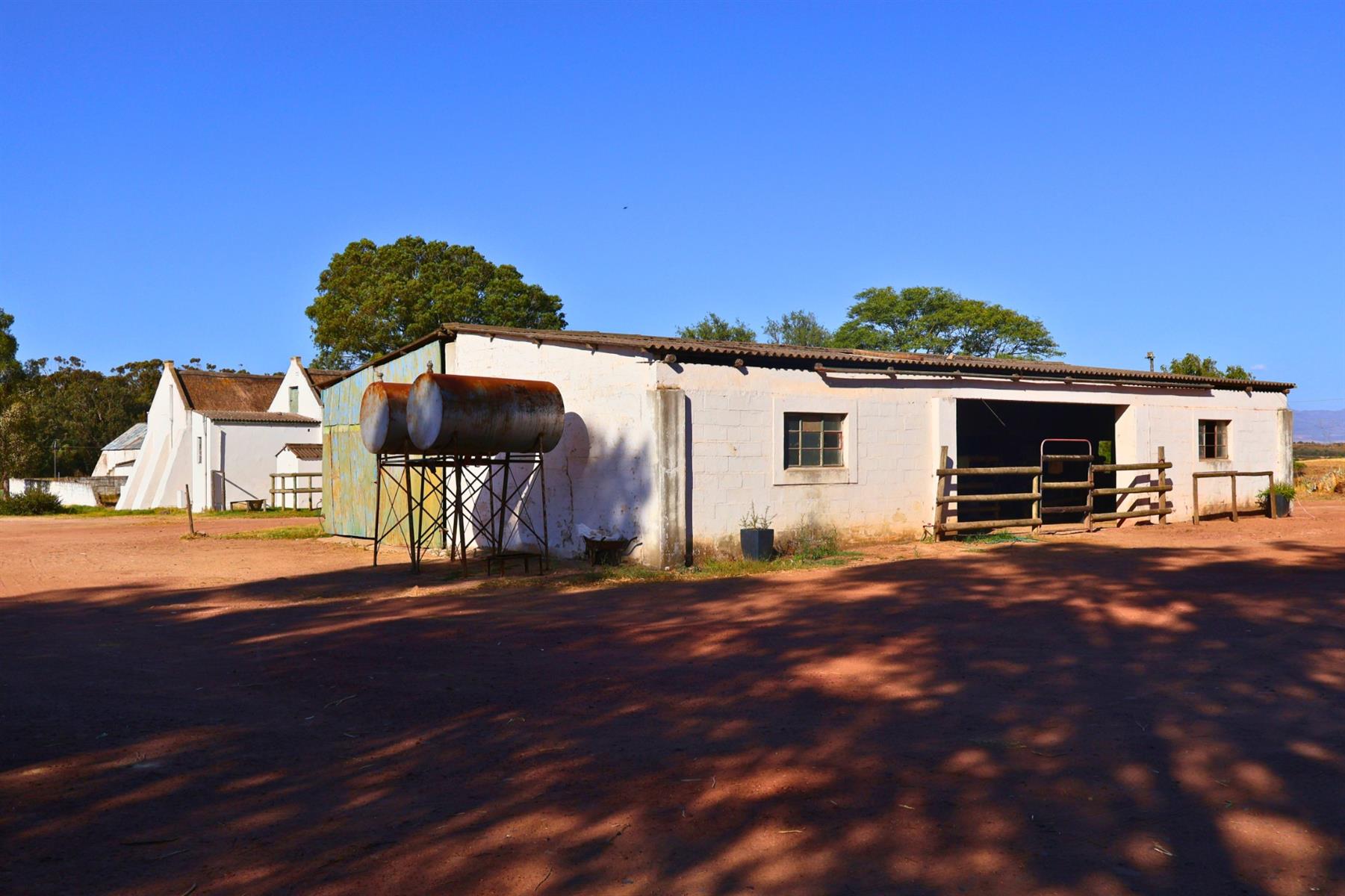 Improvements on the property comprise a well-established agricultural and equestrian infrastructure base, including the main farmhouse, which functions as the Cape Hunt Club clubhouse, a separate long barn, a renovated cottage, a large oat-hay store, multiple general store buildings, two silos, and former tractor and cow sheds converted into stabling, including nine enclosed stables. A purpose-built kennel complex for the Cape Hunt hounds, constructed with approved municipal plans, forms part of the permanent operational setup. Equestrian facilities include a dressage arena, a show-jumping arena, a lunging ring and an established cross-country course, integrated with paddocks, riding routes and open land. Residential accommodation comprises several cottages, one of which is occupied by a contracted security service provider. Boreholes and seasonal dams support ongoing operations.