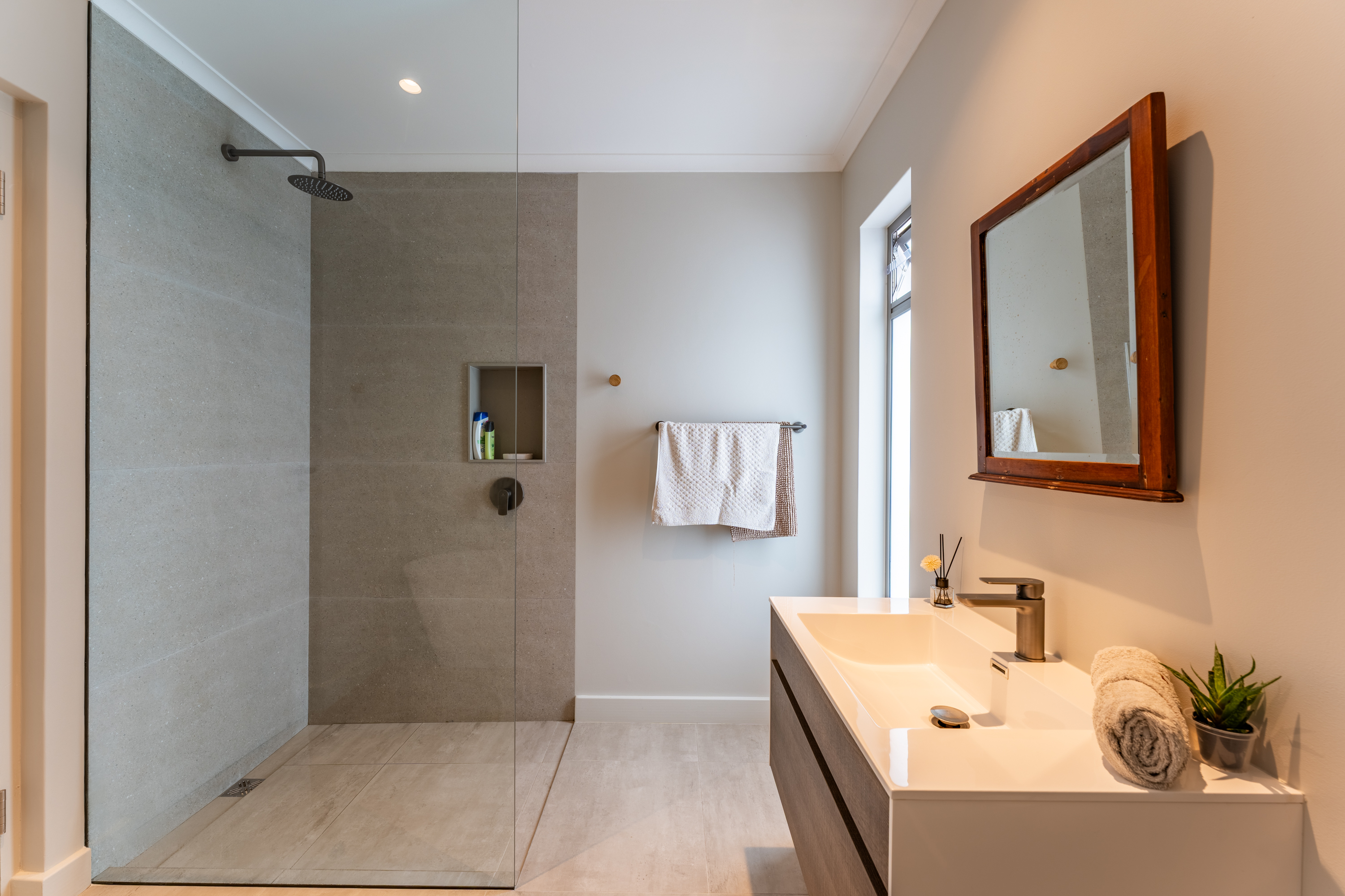 Offering four spacious bedrooms and three bathrooms, the layout caters to families and guests alike. The private master suite features a full ensuite with bath, shower, and heated towel rails, tucked away on one side of the home. On the opposite side, three additional bedrooms—one ensuite with a shower, and two sharing a full bathroom—offer flexibility and privacy.