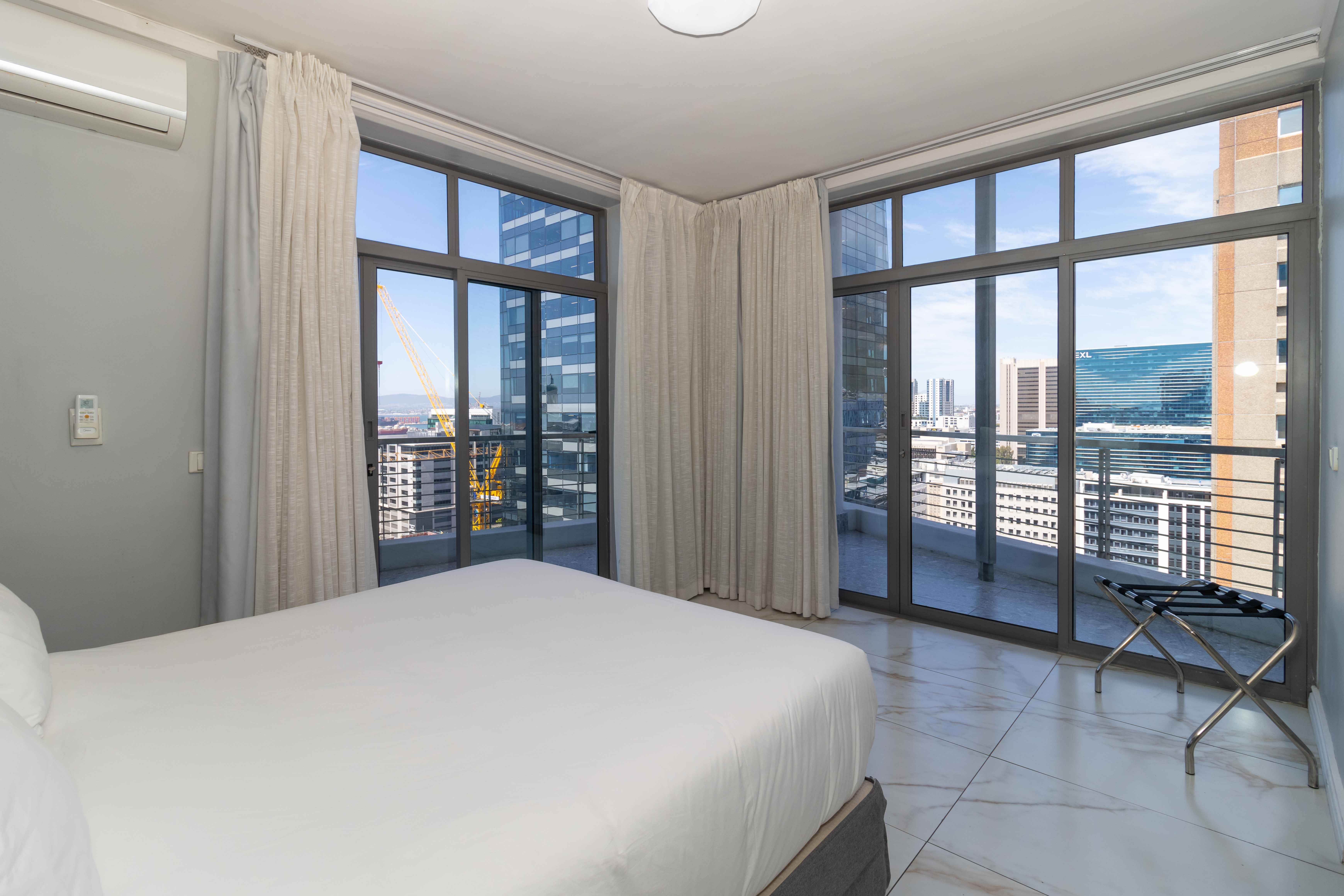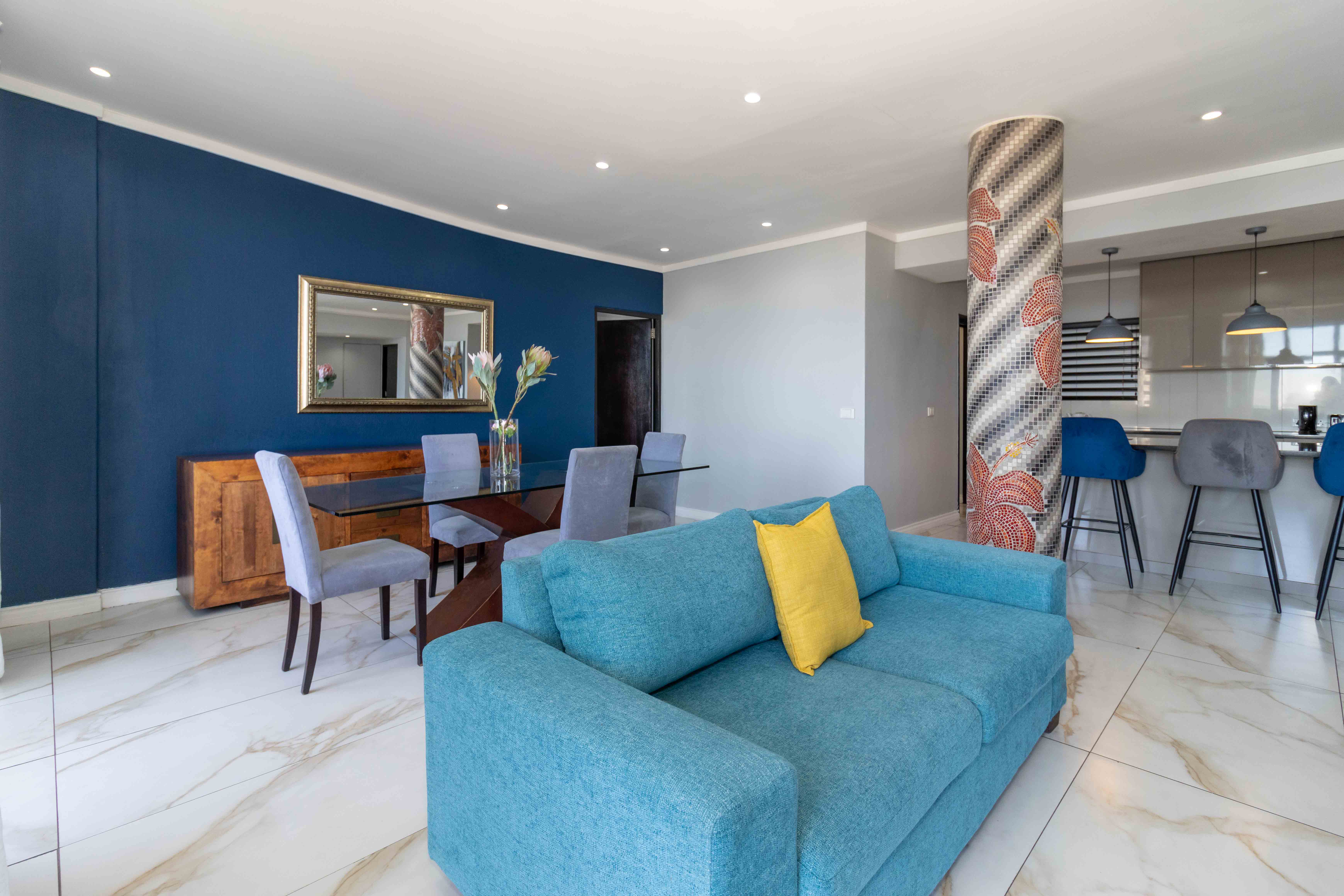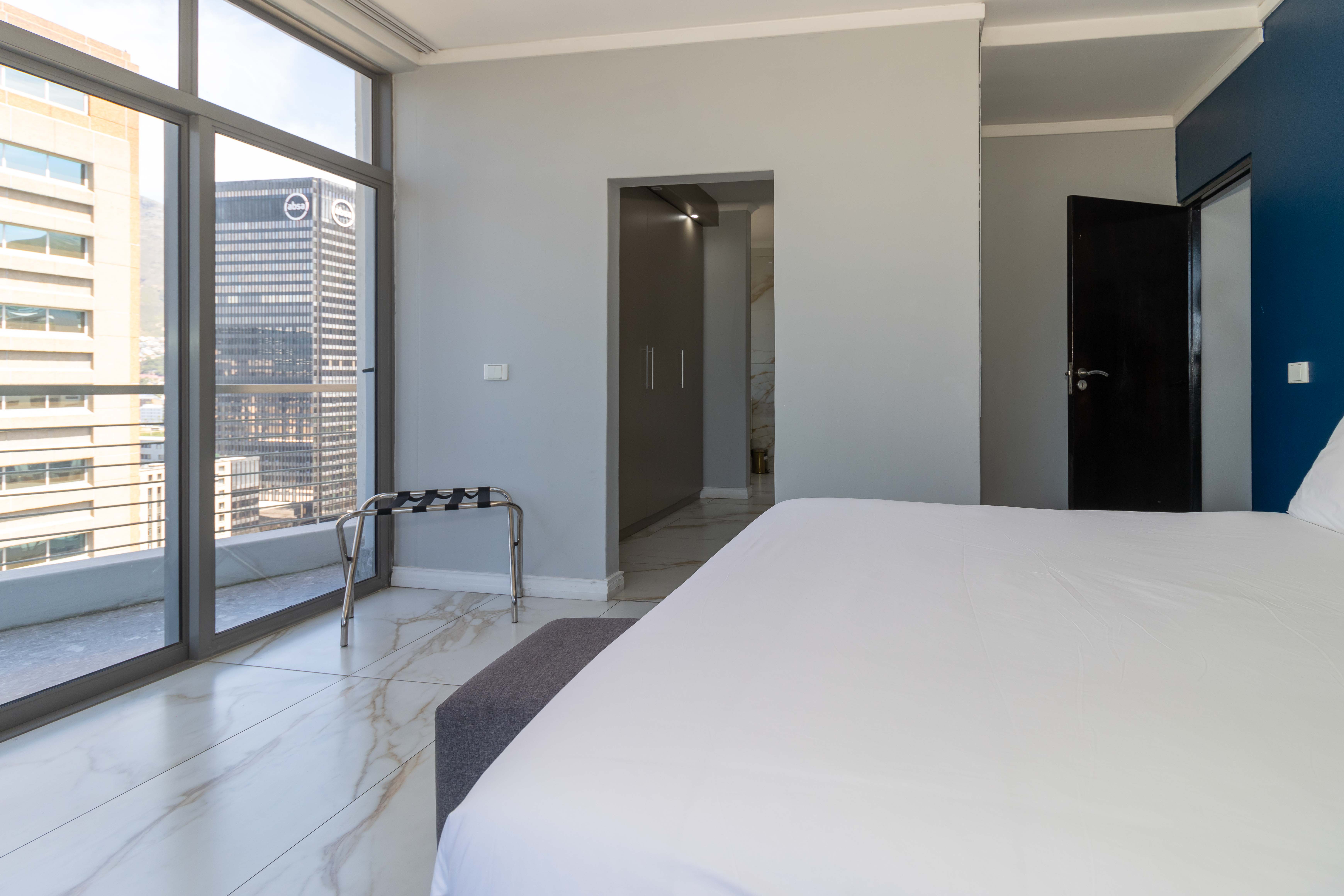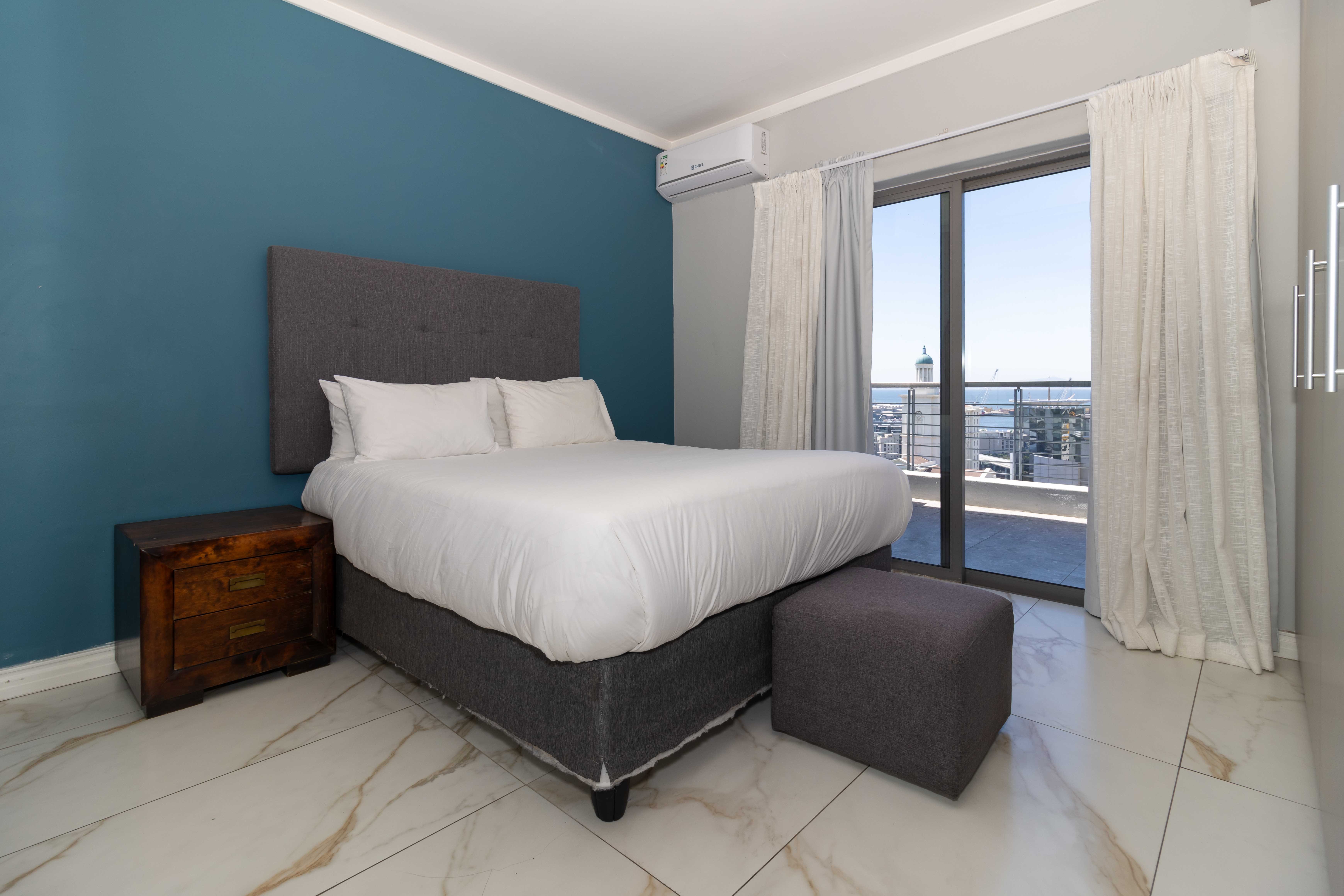 Expansive Living: This 200 sqm residence boasts a grand, open-plan layout with soaring ceilings and floor-to-ceiling windows that flood the space with natural light and frame breathtaking views of Table Mountain and the city skyline.