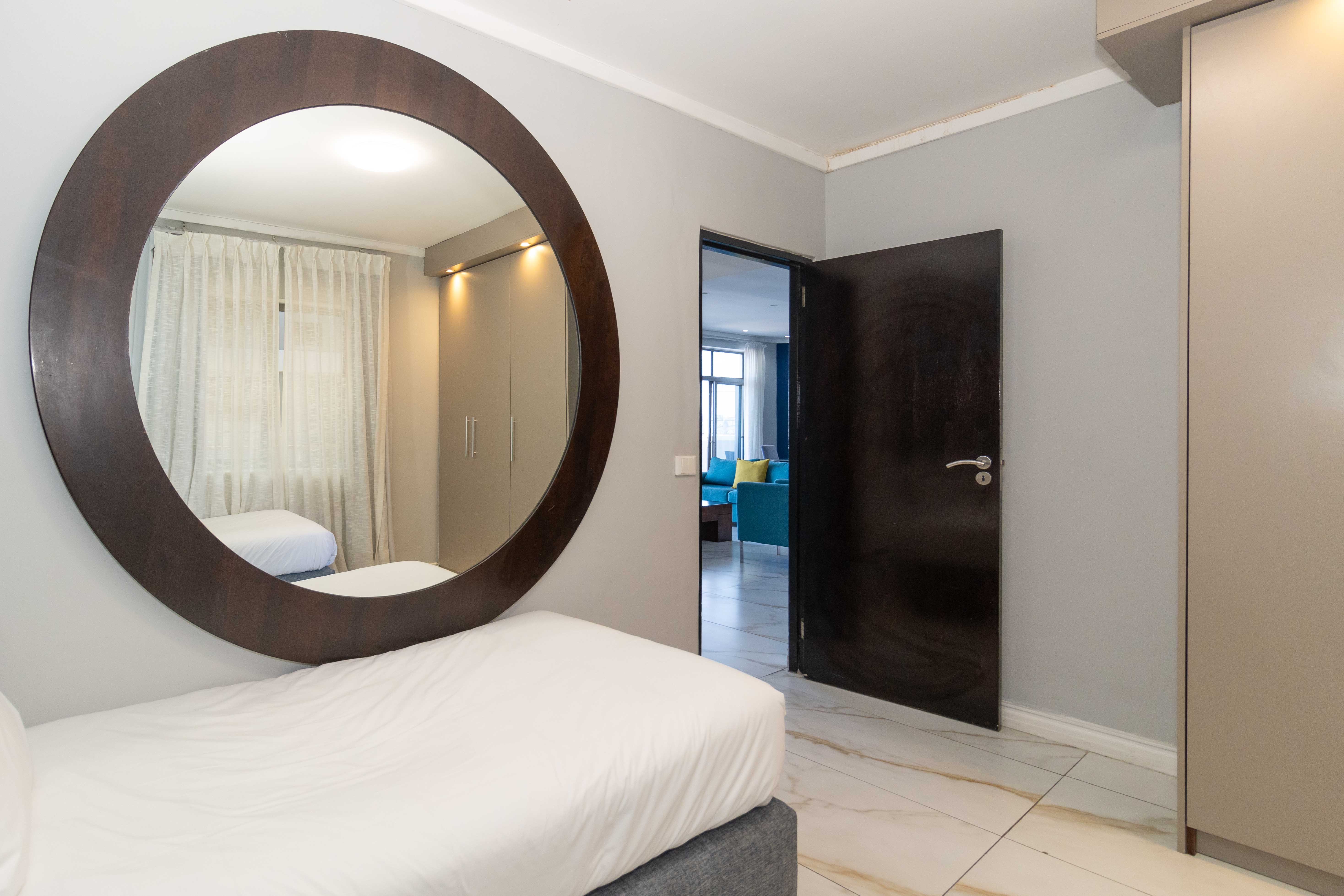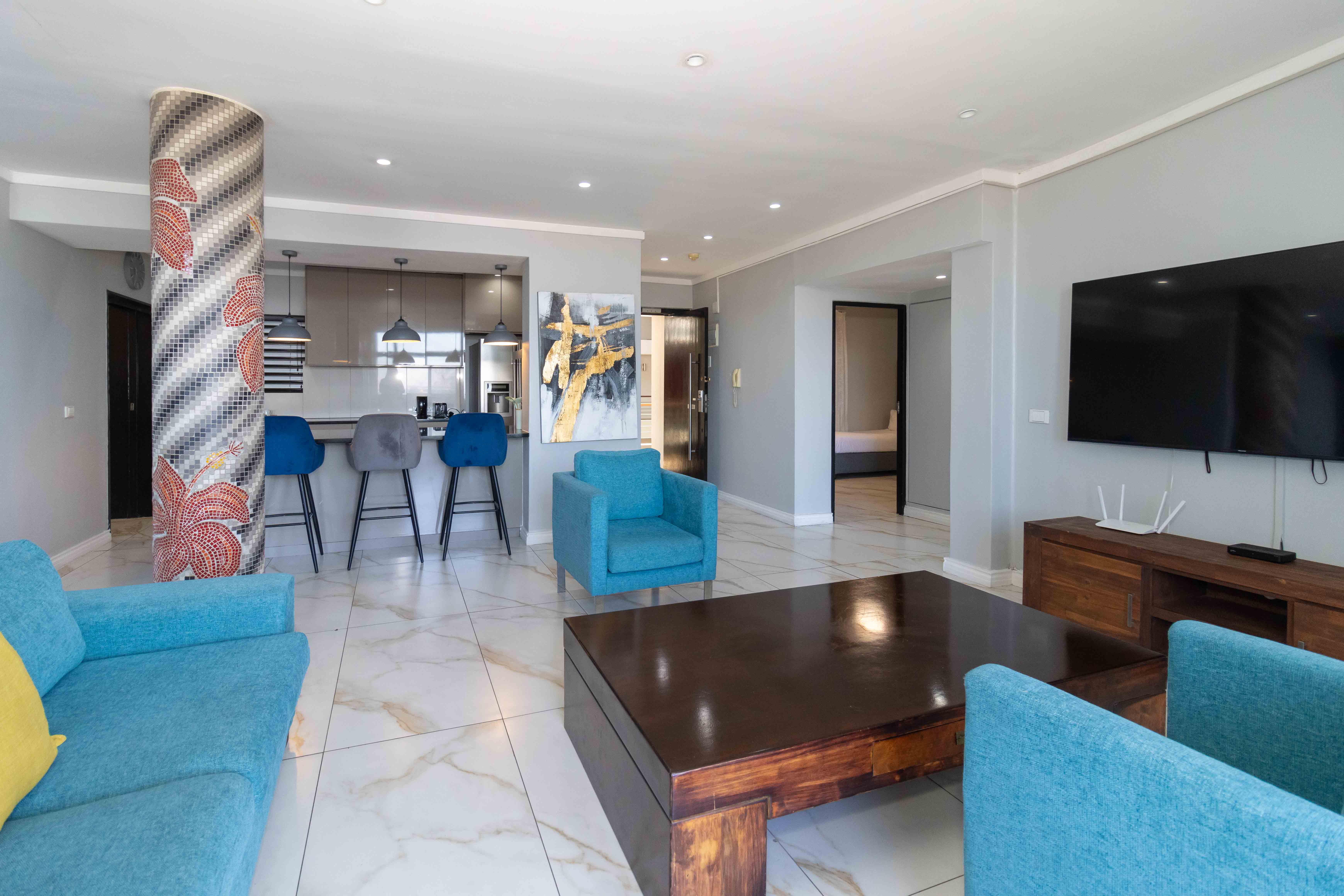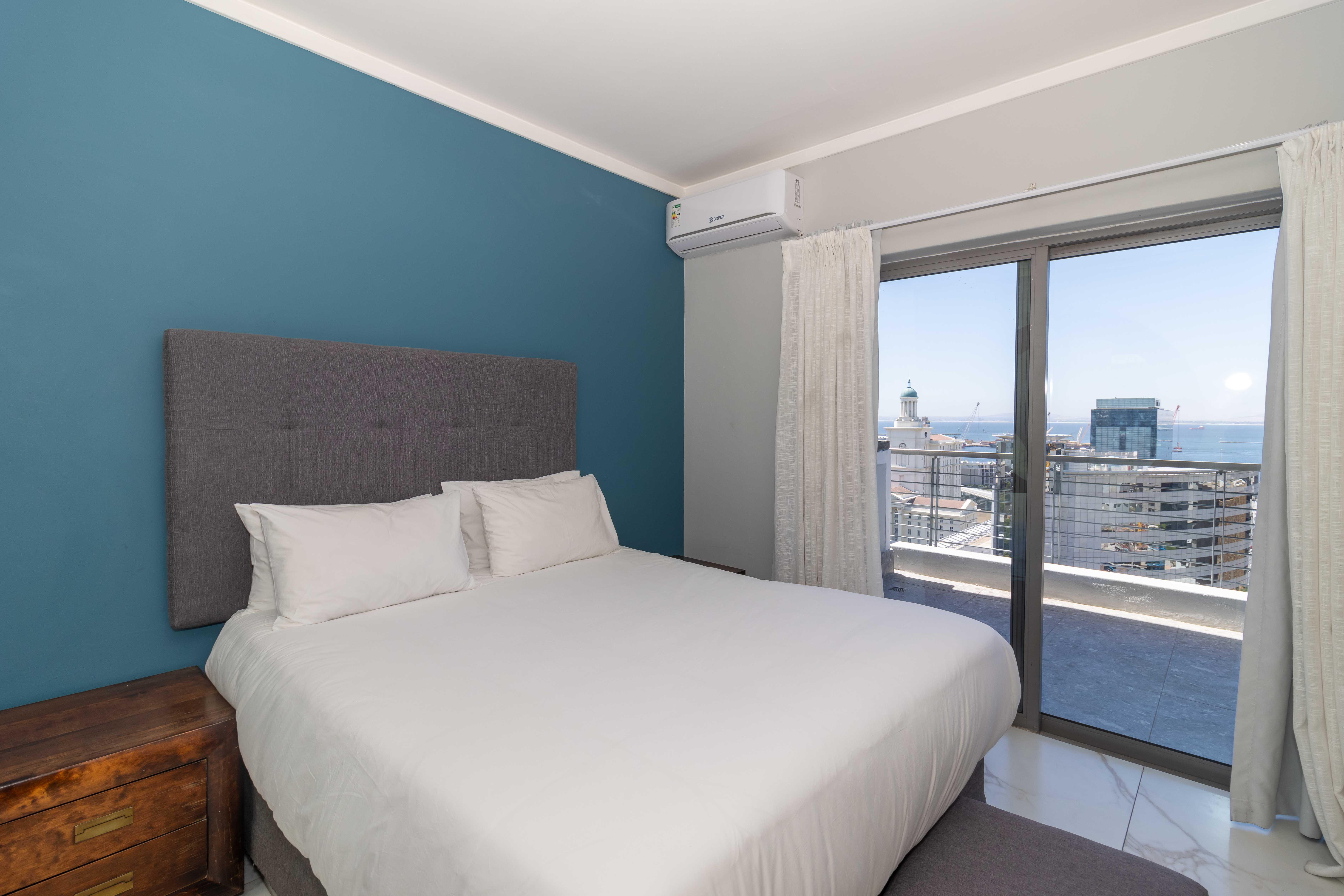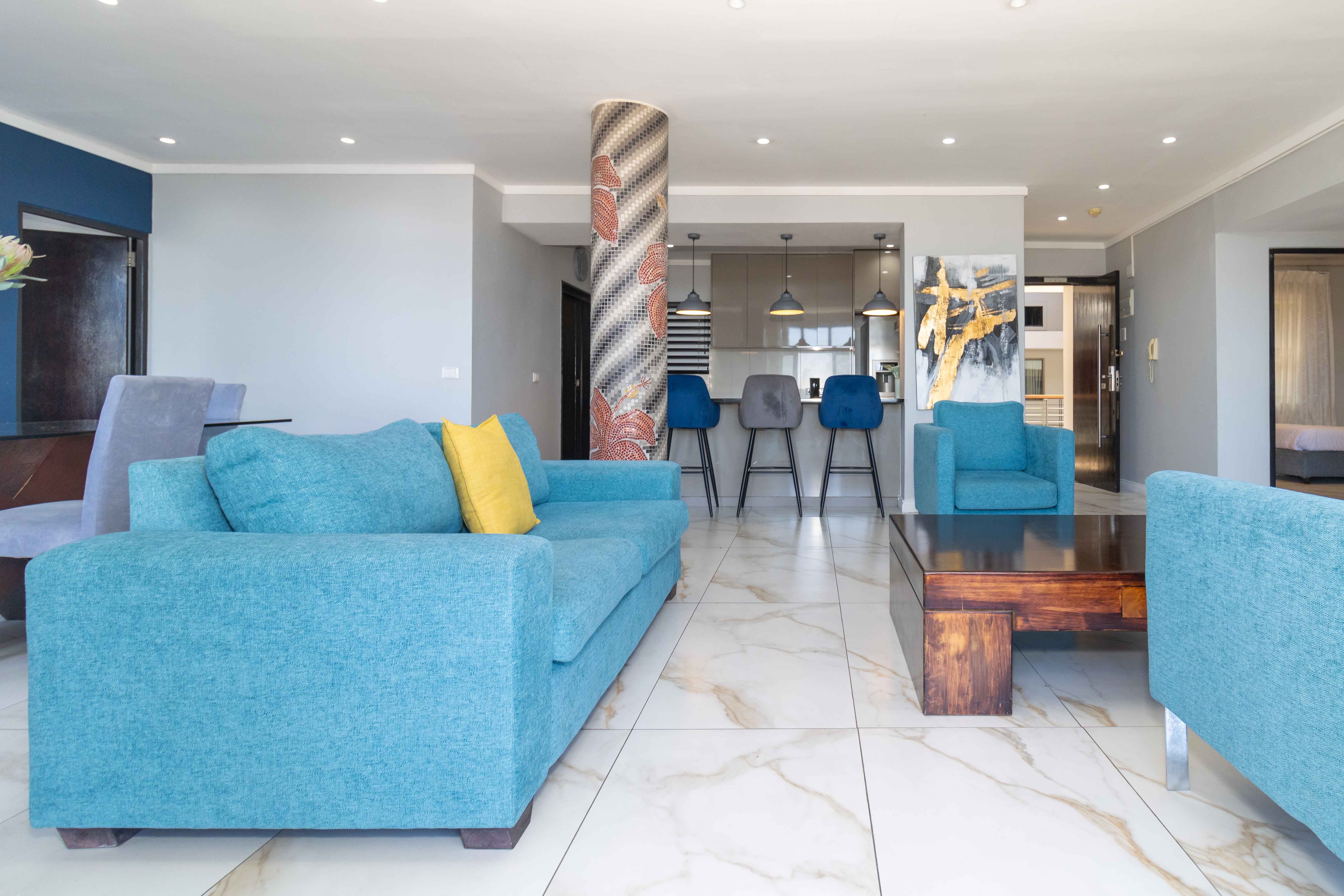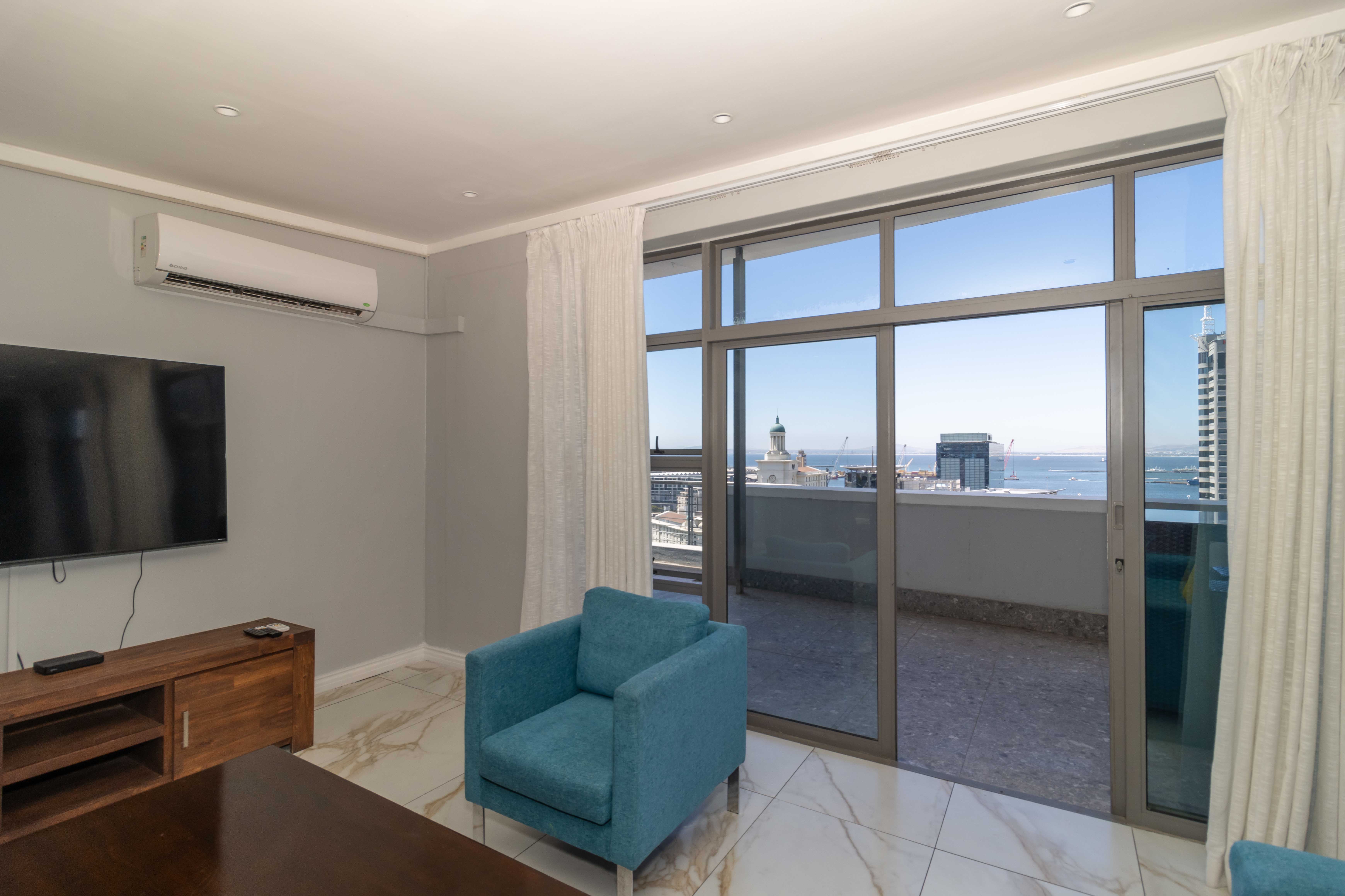 Expansive Living: This 200 sqm residence boasts a grand, open-plan layout with soaring ceilings and floor-to-ceiling windows that flood the space with natural light and frame breathtaking views of Table Mountain and the city skyline.