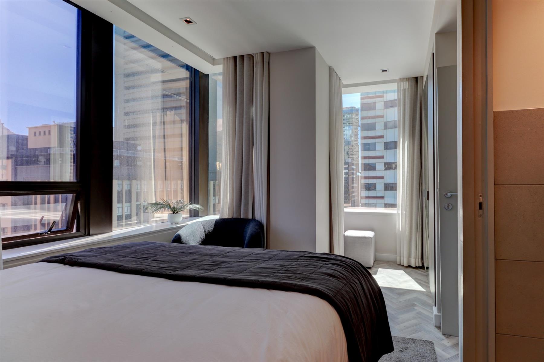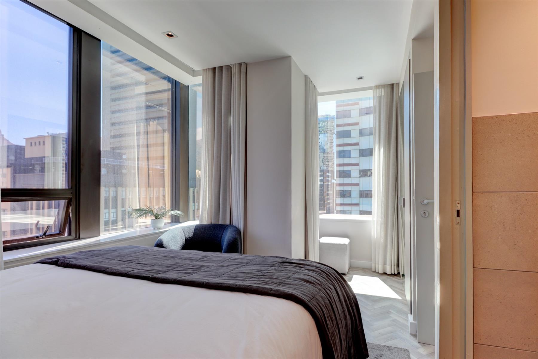 This modern one-bedroom en-suite apartment is situated on the 10th floor of the iconic Foreshore Place in the heart of Cape Town’s CBD.