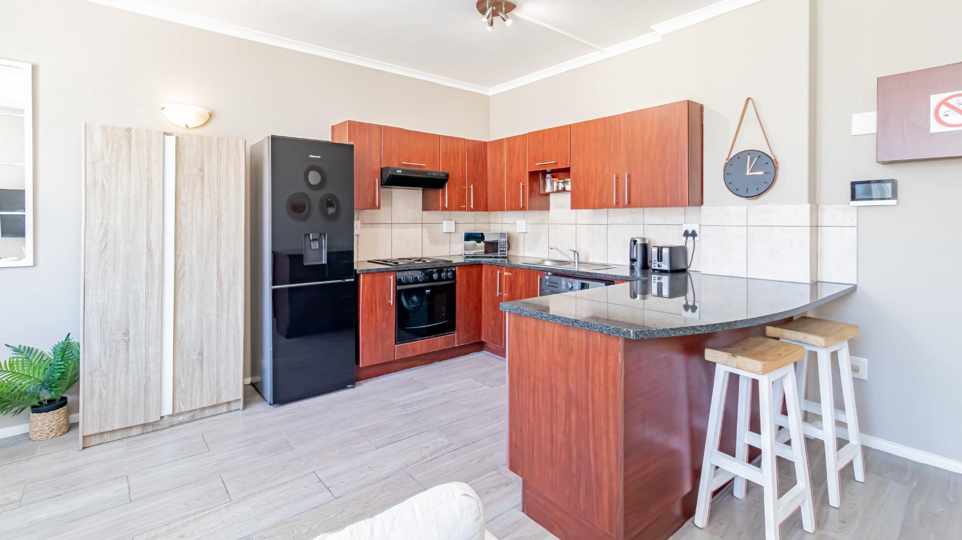 The apartment comprises of an open plan kitchen and lounge flooded with natural light. The Kitchen comes with washing appliance, a Refrigerator and other kitchen utensils and appliances. The two comfortably sized bedrooms (en-suite) both equipped with generously appointed built-in-cupboards and the bathrooms offer a shower or bath each. The Master Bedroom is air Conditioned and Bathroom has both bath and shower.