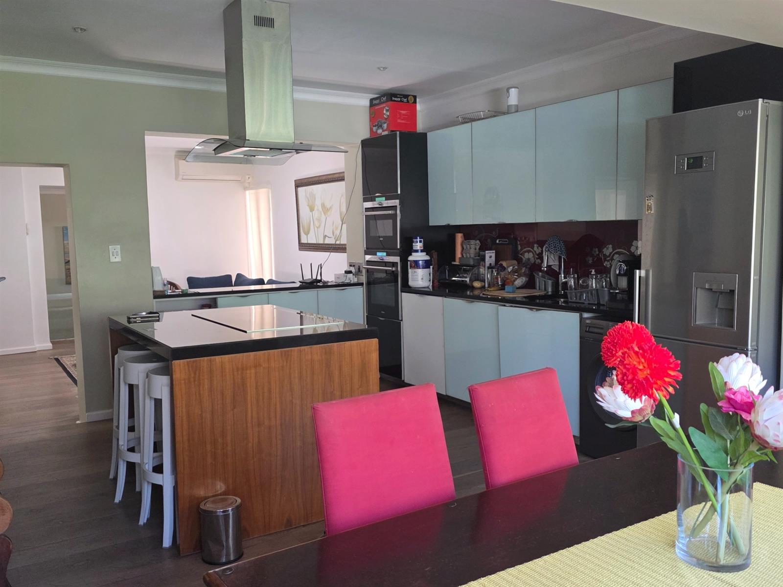 - Fashionable centre island and extractor fan