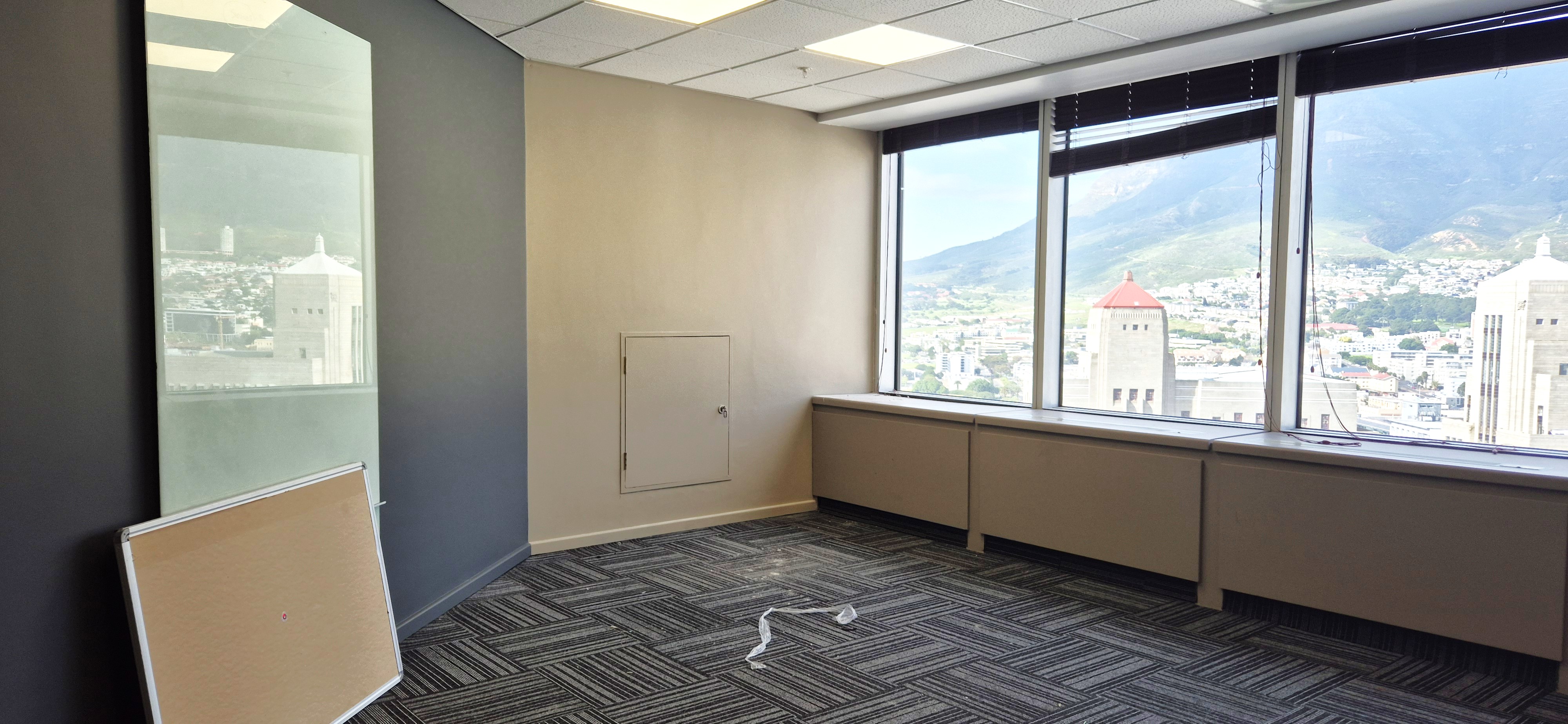 This 655sqm office is located on the 18th floor of the South African Reserve Bank building in Cape Town’s CBD. The space is fully fitted with a reception, boardroom, glass-partitioned offices, open-plan areas, kitchenette, and modern finishes. It offers excellent natural light, air conditioning, fibre internet, and panoramic views. Key benefits include no loadshedding, top-class security, generous tenant installation allowance, and basement parking available at R1,800 per bay. Immediate occupation is possible, with viewings arranged by appointment.