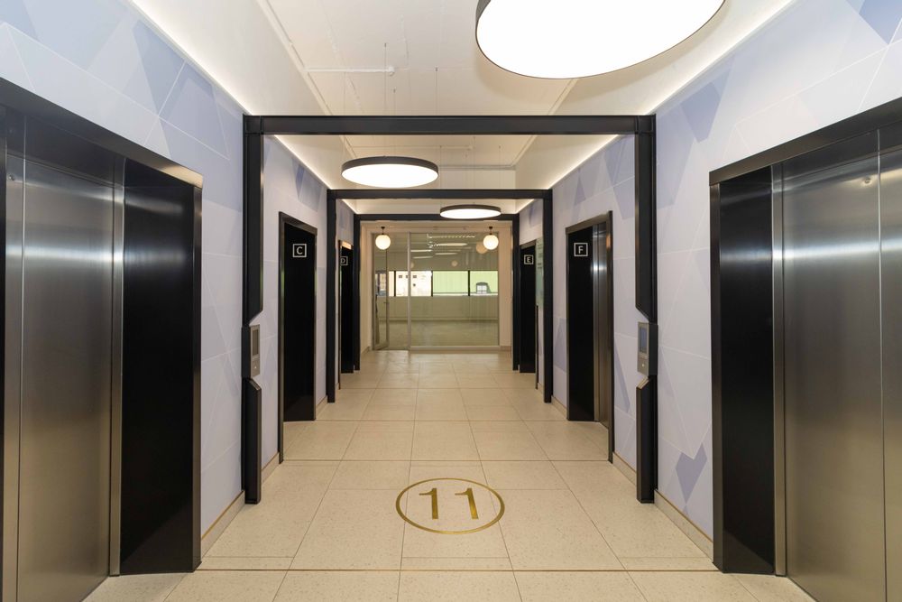 On the ground floor, tenants enjoy access to a vibrant food court with multiple dining options, a fully equipped auditorium, storage facilities, and shower amenities, offering an unmatched all-in-one professional environment. Bathroom facilities are conveniently positioned just outside the unit for exclusive floor access.