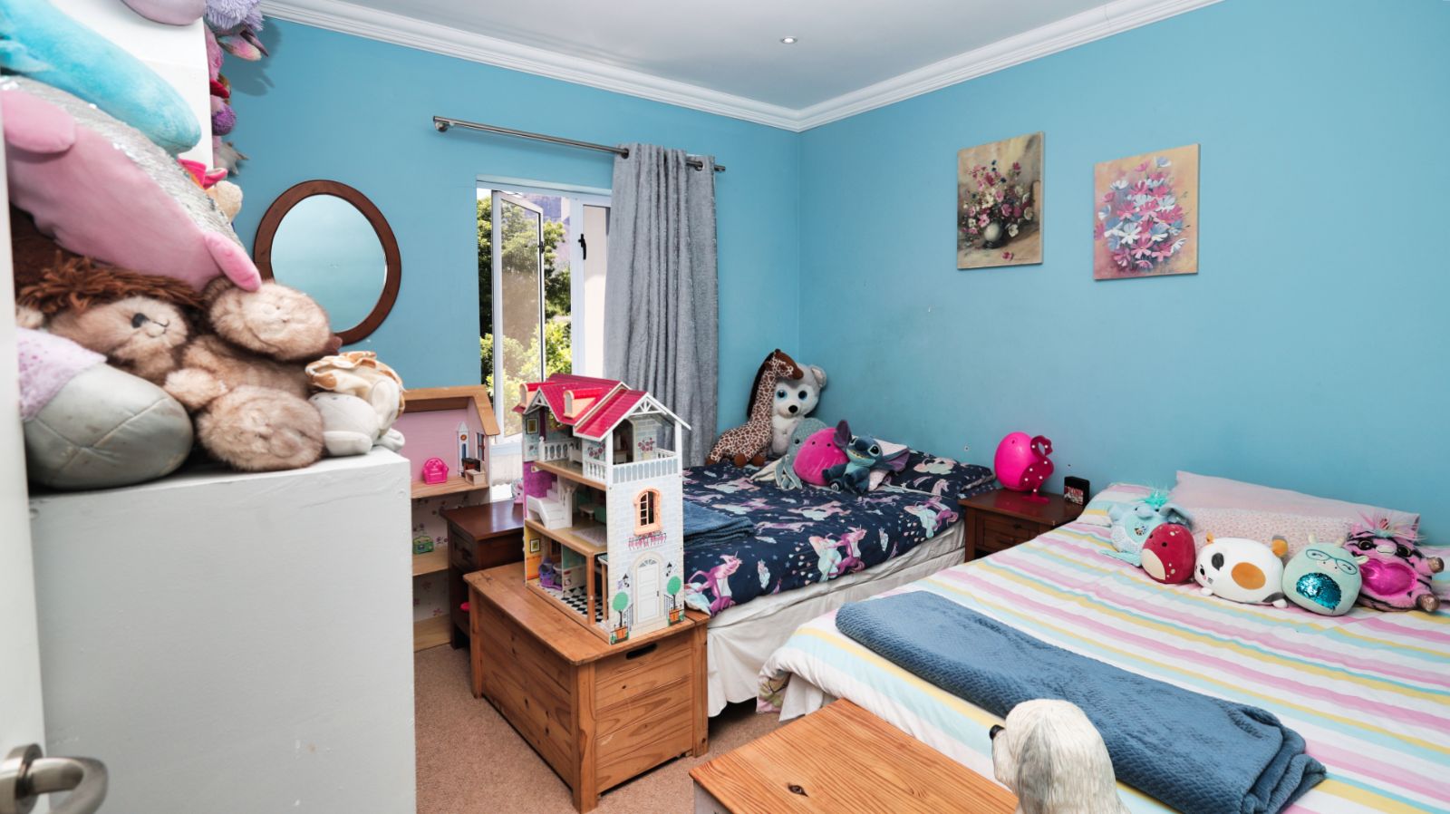 The home offers three generously sized bedrooms and three-and-a-half bathrooms, including two en-suite bedrooms. The main suite is a serene retreat with a walk-in dressing room, full bathroom and beautiful outlook over the estate. The remaining bedrooms are bright, airy and perfectly appointed for modern family living.