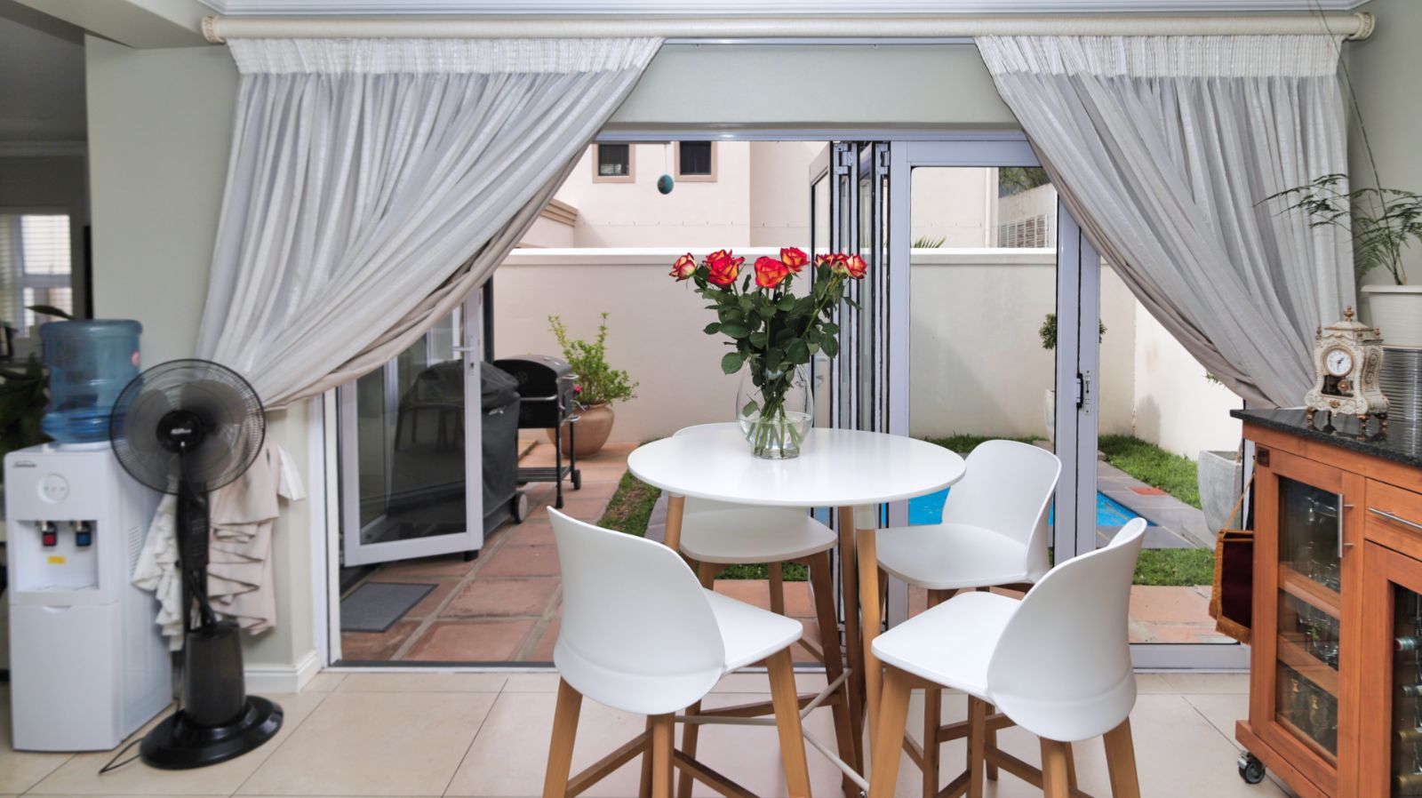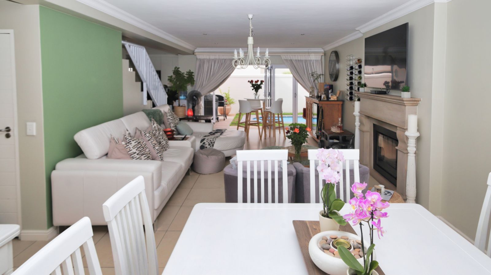 Situated in the sought-after Capolavoro Mountain Estate, this 3-bedroom, 2.5-bathroom home is available to rent and offers a lifestyle of comfort and sophistication. The open-plan living and dining areas are filled with natural light and flow effortlessly into the kitchen, while stacking doors extend the living space outdoors to the garden and pool — perfect for relaxed afternoons or entertaining.