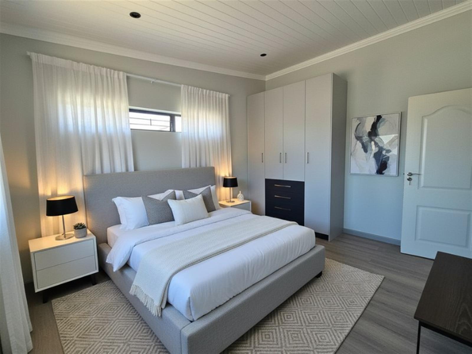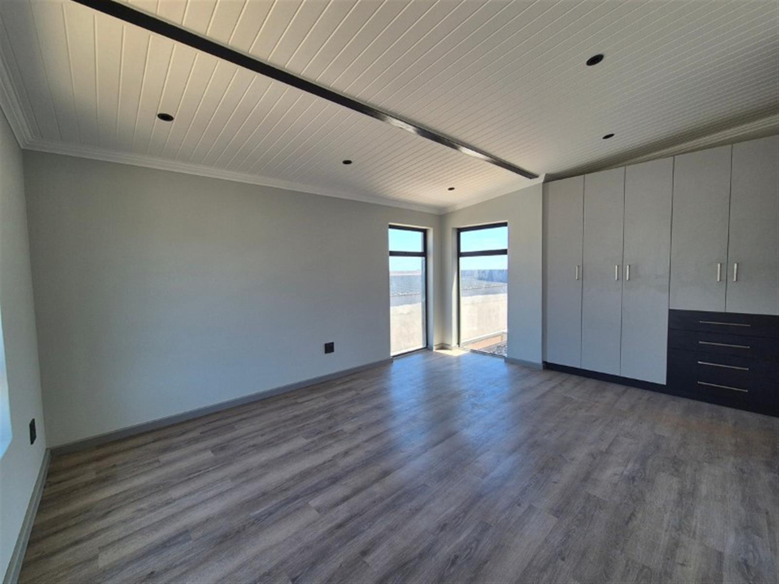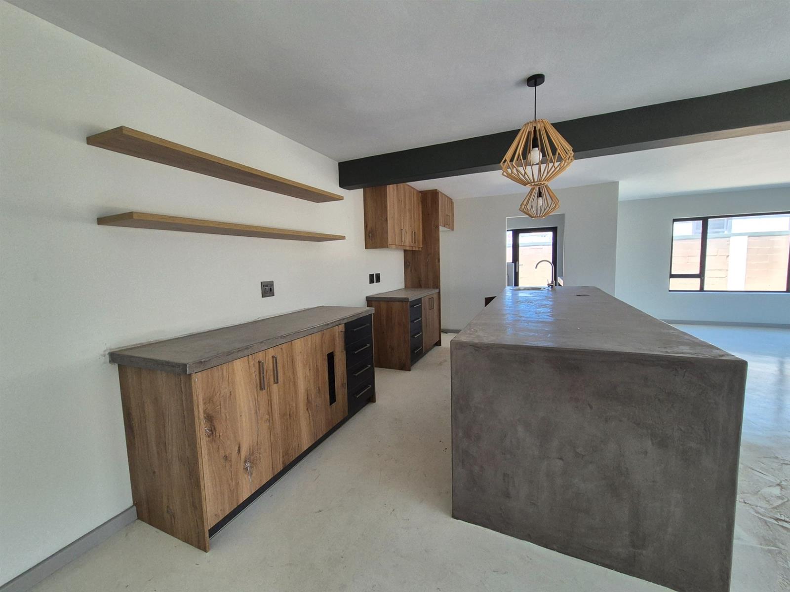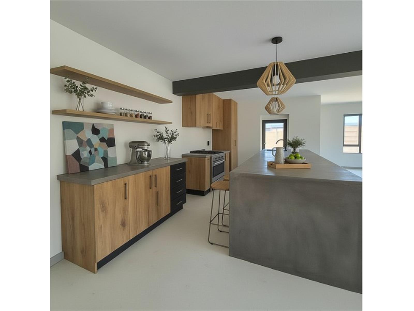 ·Modern Kitchen – fitted with ample cupboard space, sleek finishes, and a separate scullery with a double basin, extra storage, and direct access to the back yard and washing line.