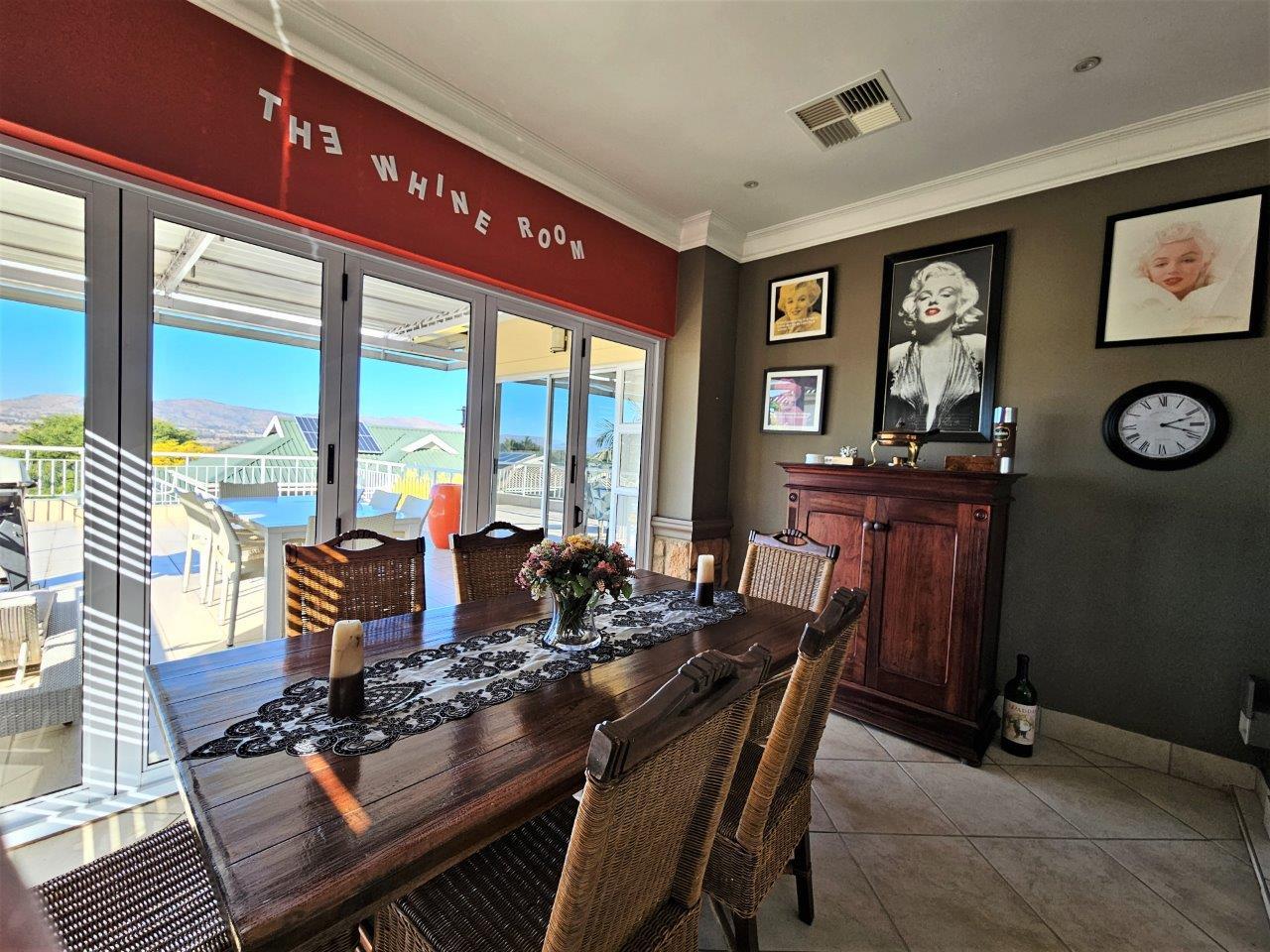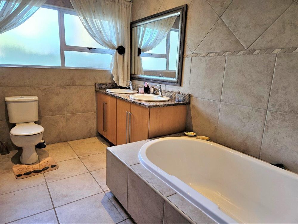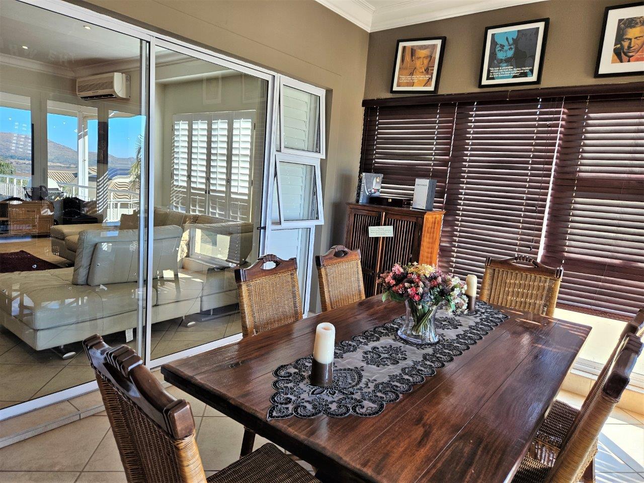 This luxurious home is now available for sale in a prestigious security estate in Hartbeespoort. It offers a double-story layout that caters to both family living and entertaining guests, making it an ideal family residence.