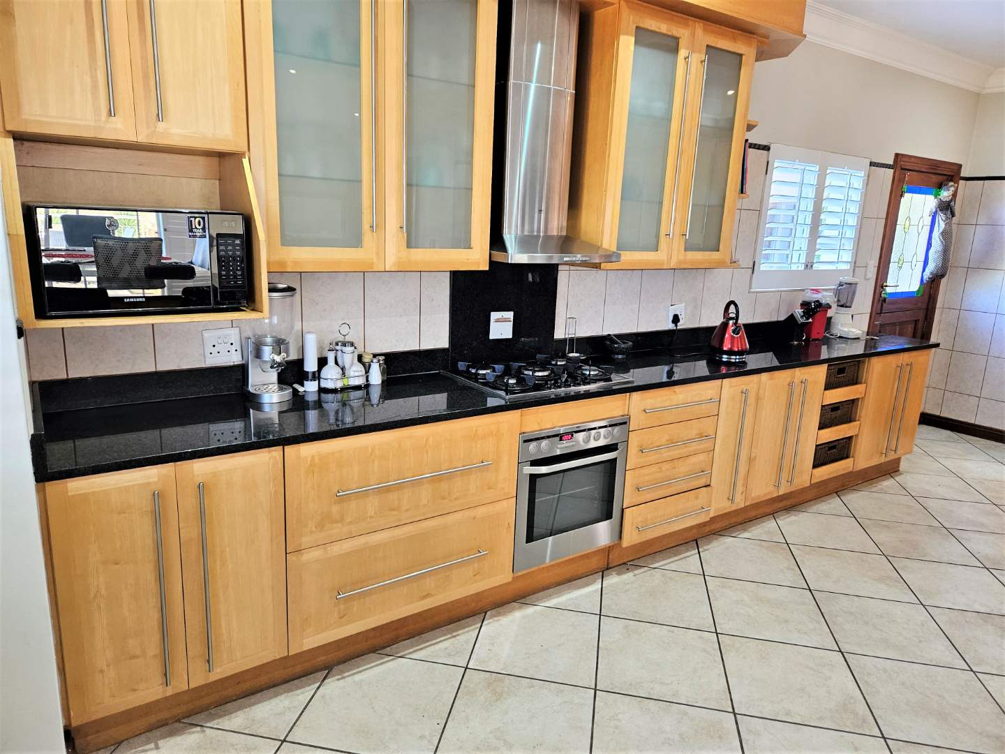 kitchen with ample cupboard space and can accommodate a washing machine and dish
