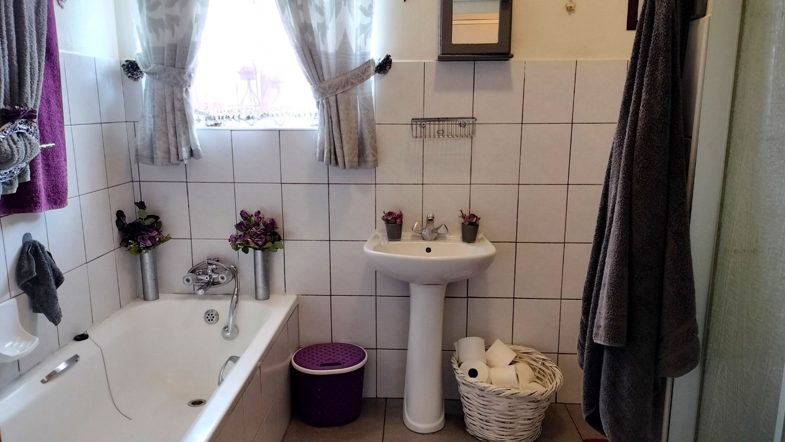 This home boasts three spacious bedrooms, all with built-in cupboards and neat tiling throughout. The main bedroom is a private retreat, complete with an en-suite bathroom featuring a shower, bath, toilet, and basin. The second bathroom is equally spacious, offering a bath, shower, toilet, and basin to accommodate the rest of the household.