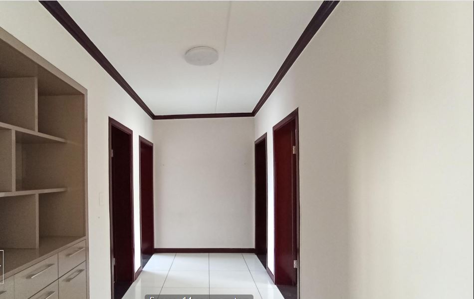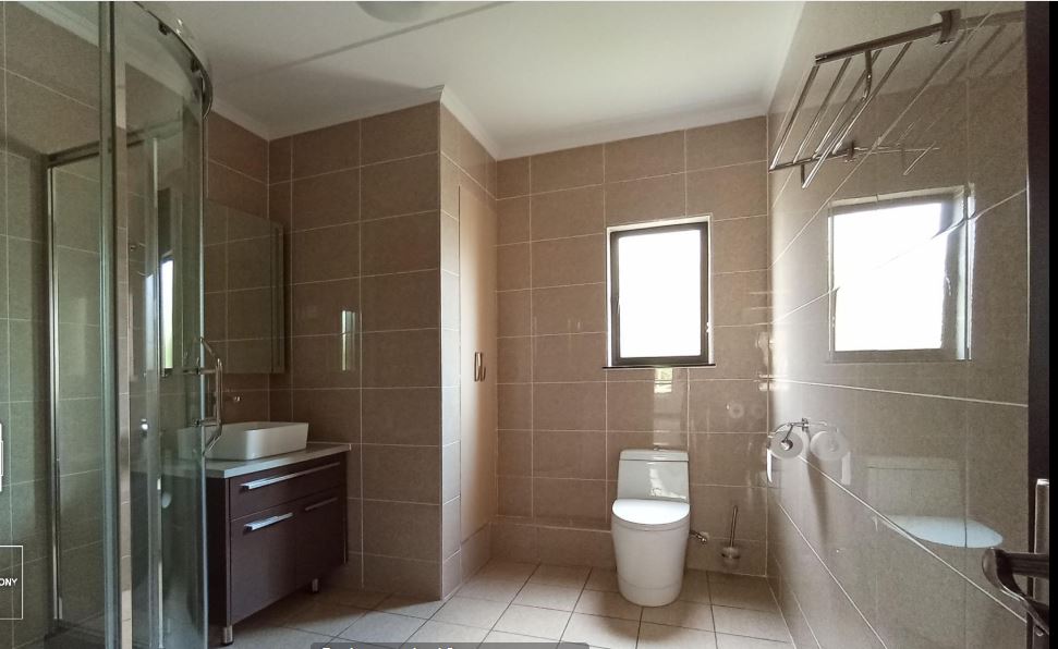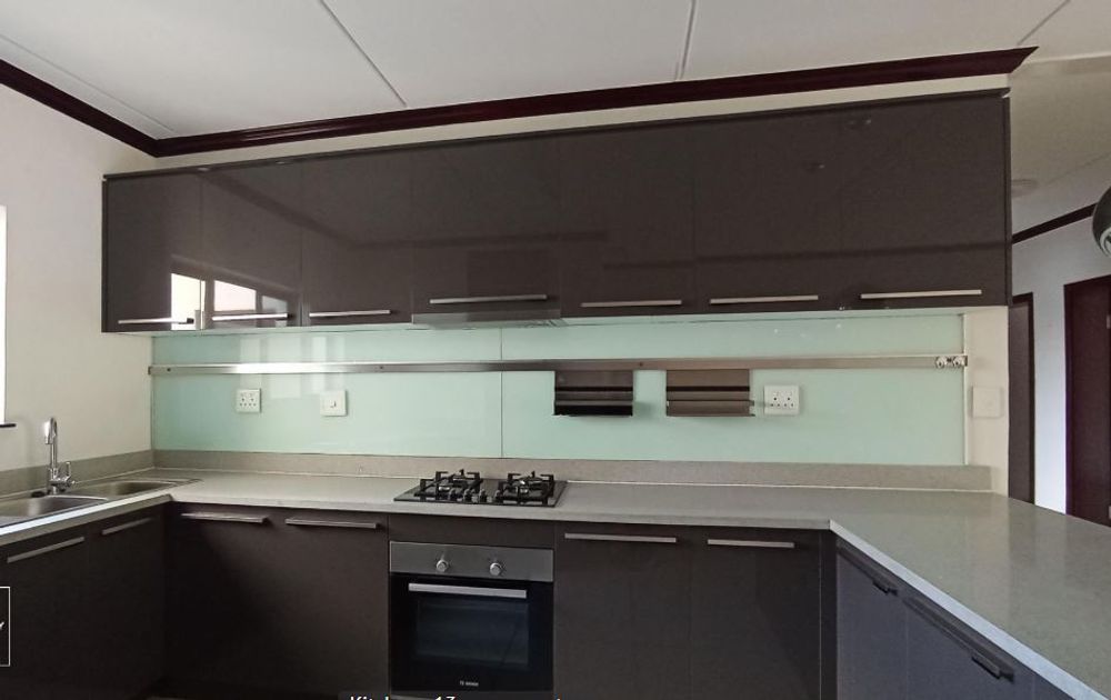 The kitchen features a gas stove, perfect for managing load-shedding challenges, and has ample space for a double-door fridge and 2 appliances. Additionally, it includes a small scullery and plenty of cupboard and counter space.