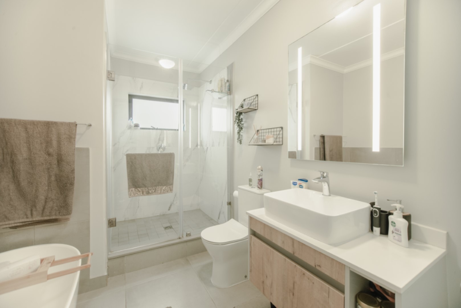 The master bedroom is a retreat in itself, offering ample space, custom-designed closets, and a contemporary en-suite bathroom with premium fixtures and finishes.