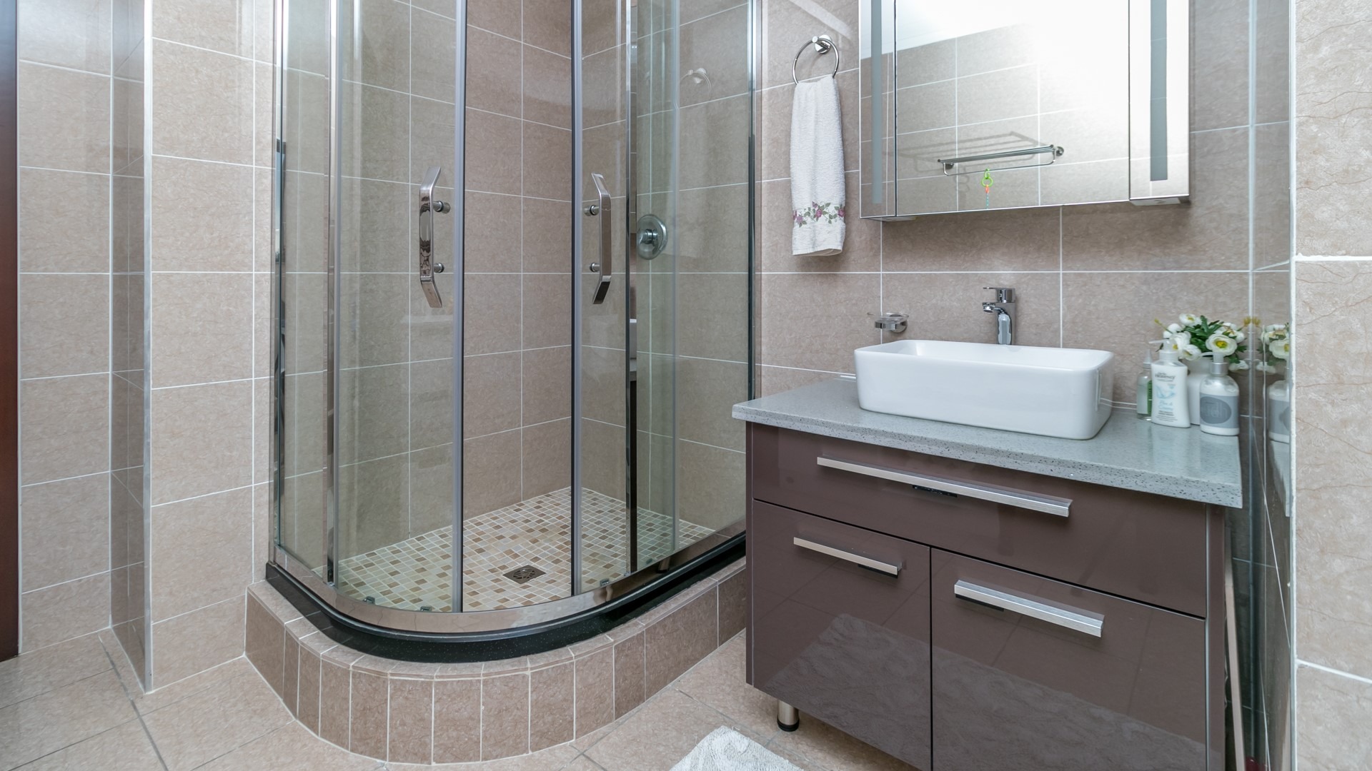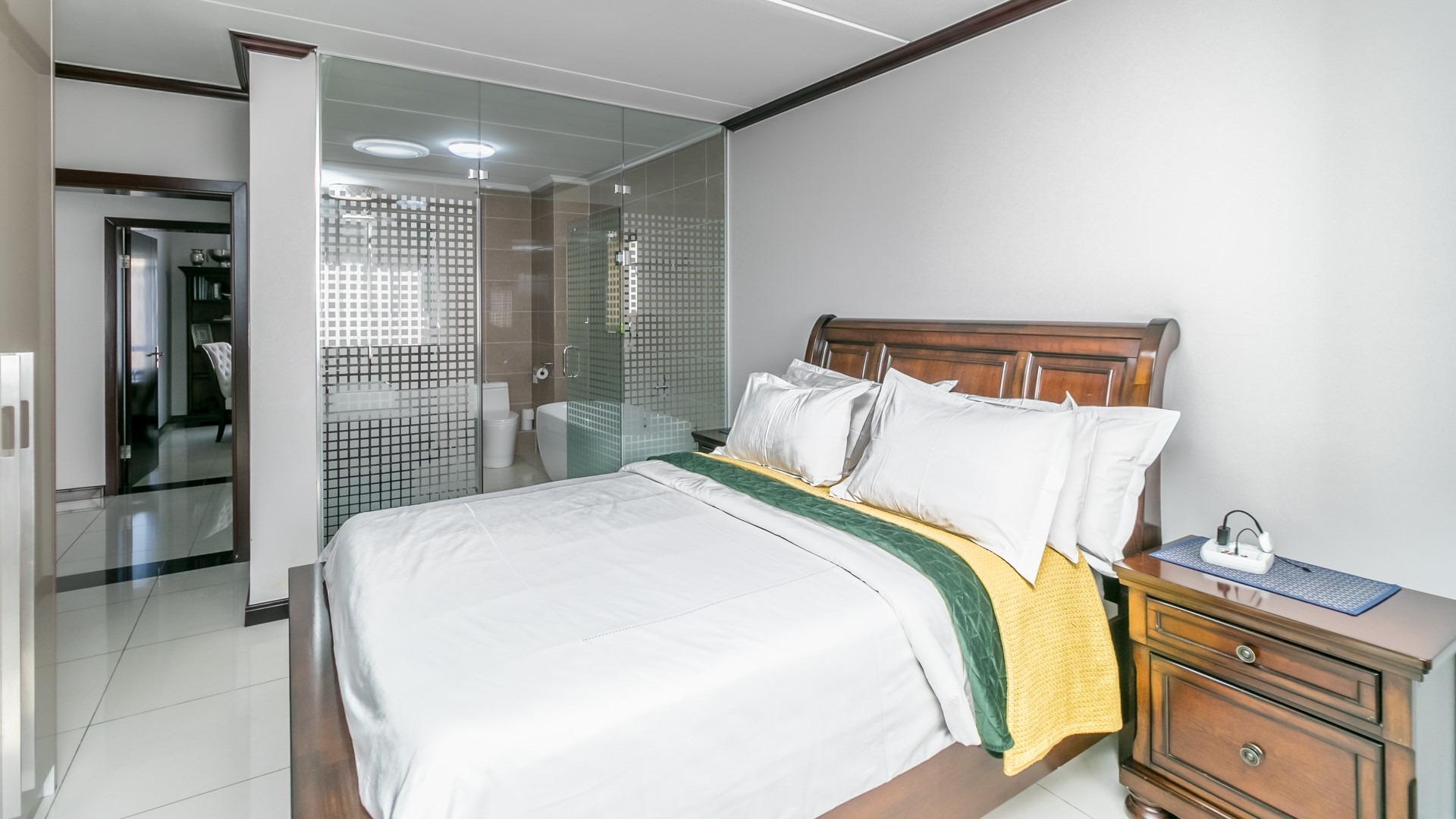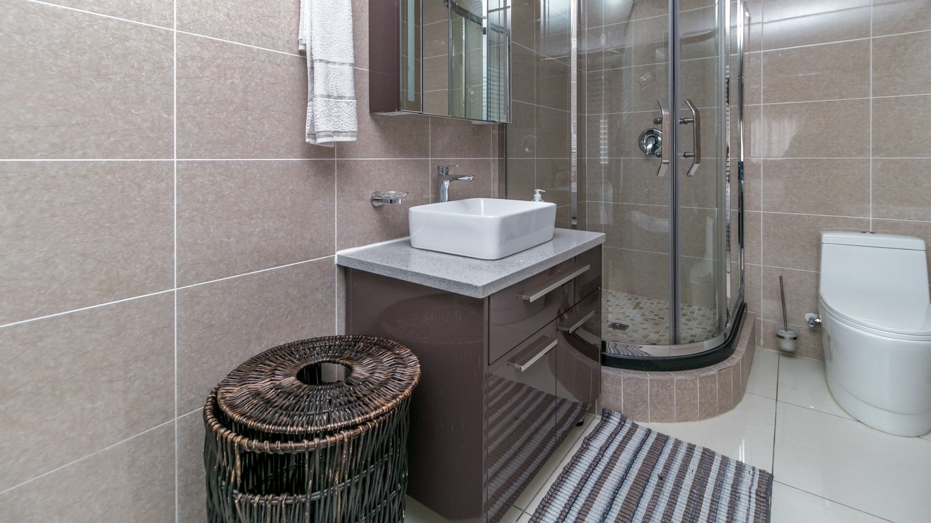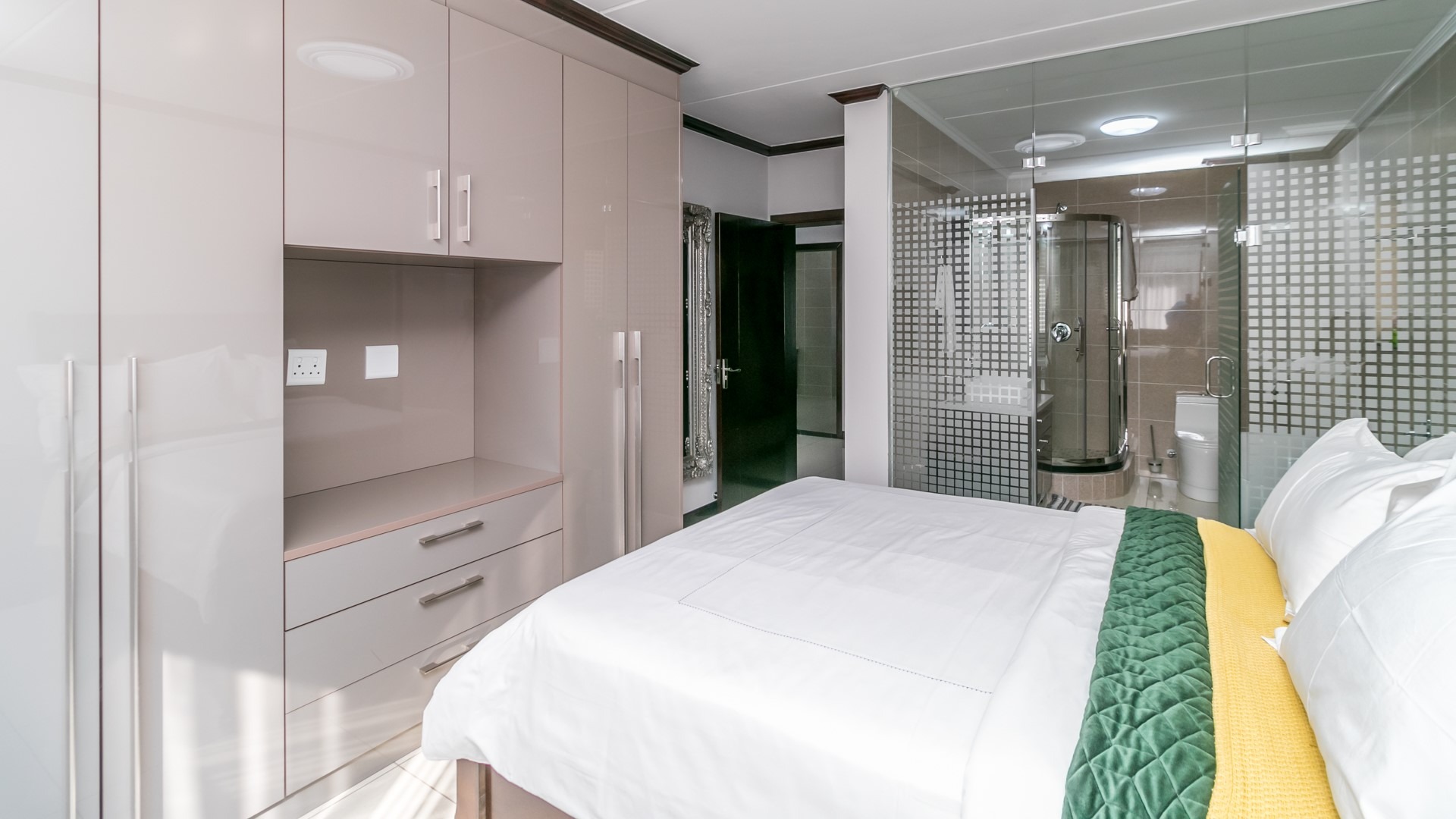 The main bedroom has a posh en suite bathroom, while the other two share a contemporary shower-only bathroom for increased seclusion.