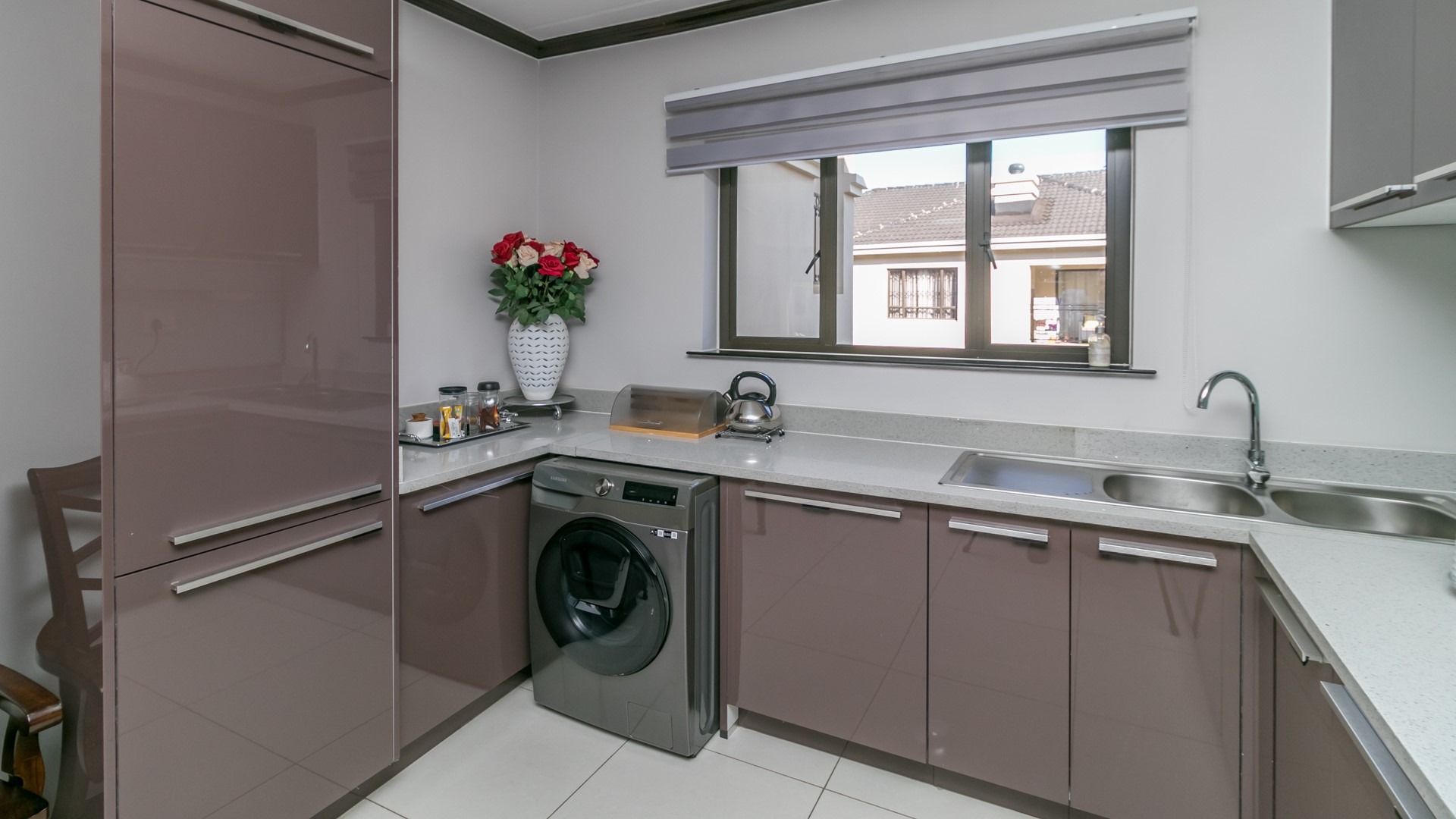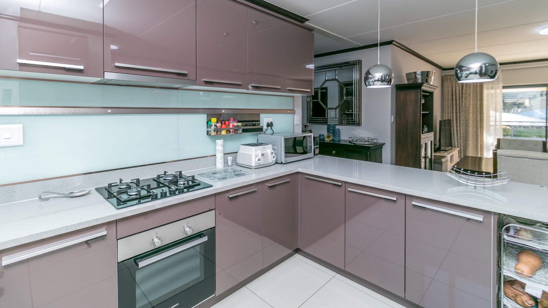 This magnificent first-floor three-bedroom apartment is the epitome of luxury living. Top-tier Bosch appliances, such as a gas stove, integrated fridge-freezer, and dishwasher, combine design and functionality in this sleek modern kitchen.