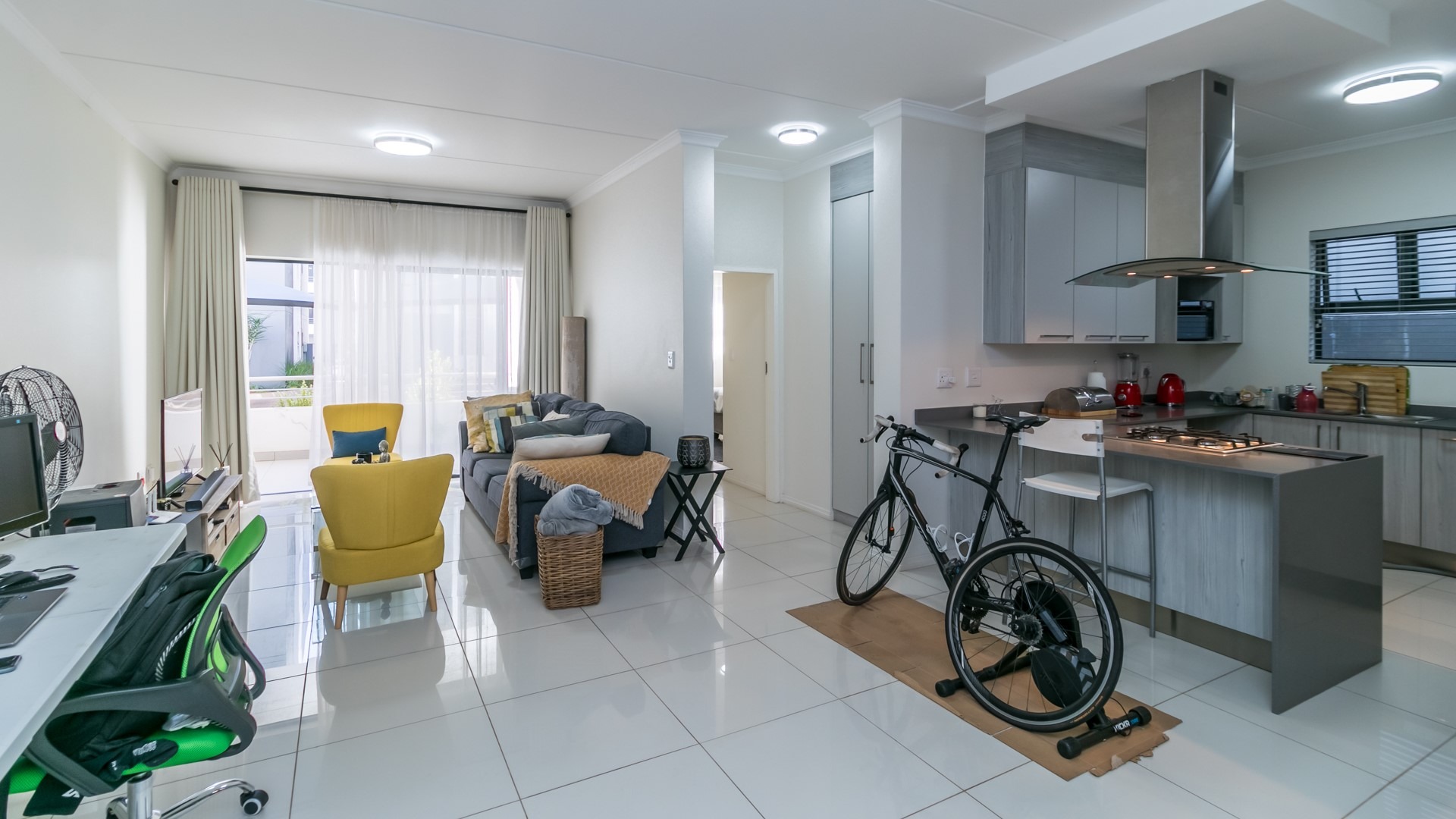 The living room, dining area, and kitchen are all perfectly connected in a large open-plan arrangement that greets you upon entering. The kitchen is fully equipped with contemporary appliances, such as a gas stove that makes meal preparation a breeze.