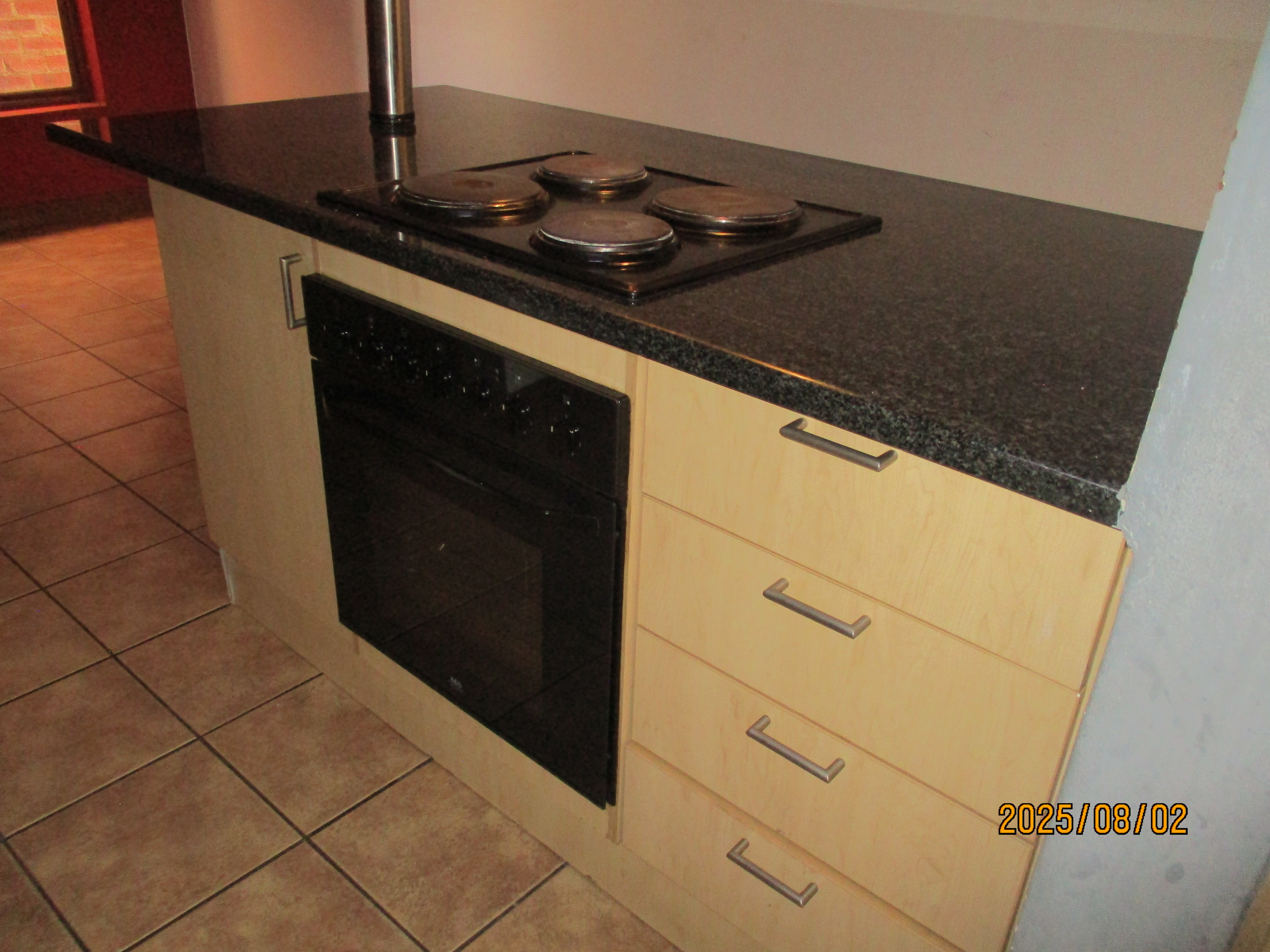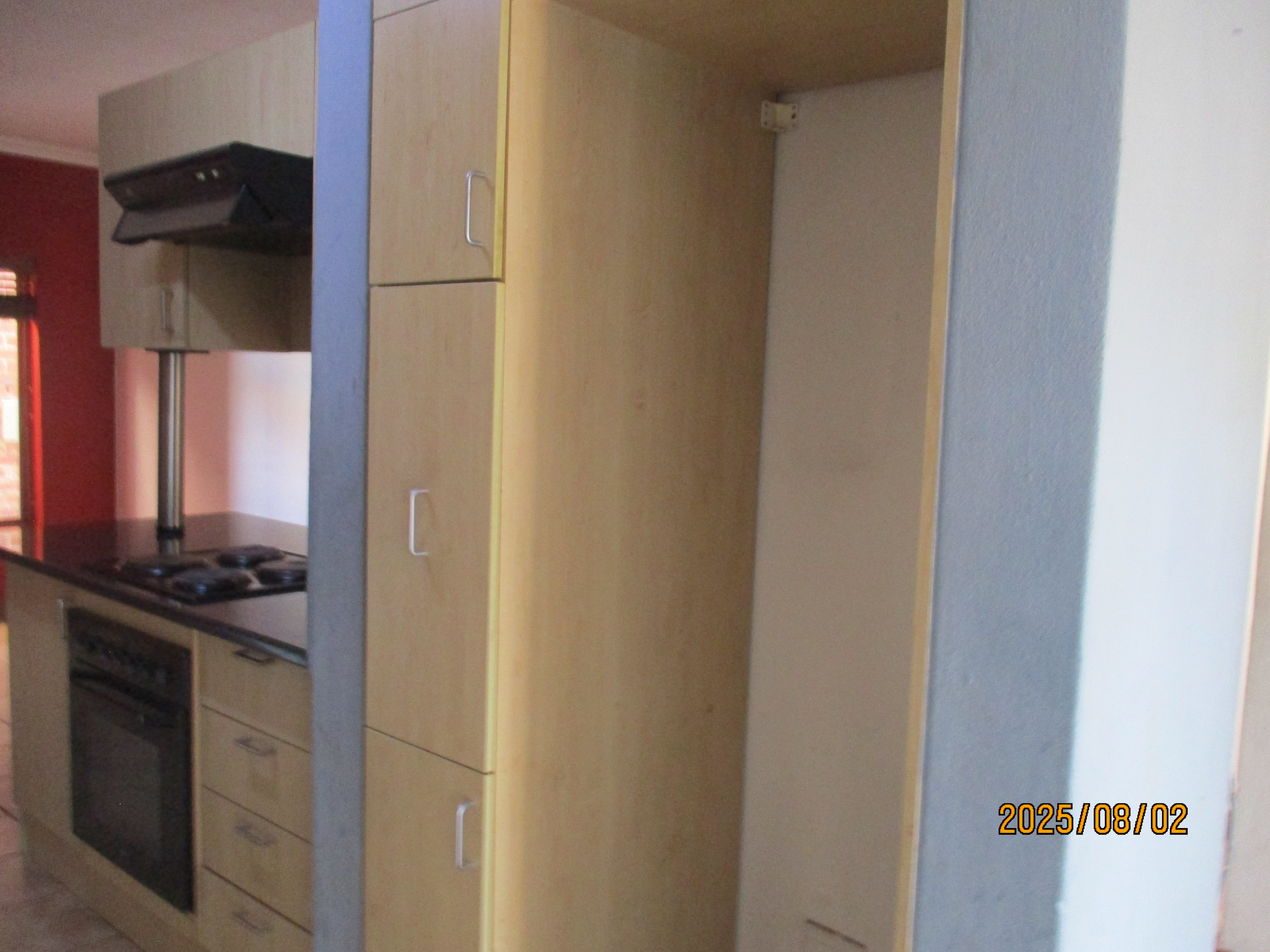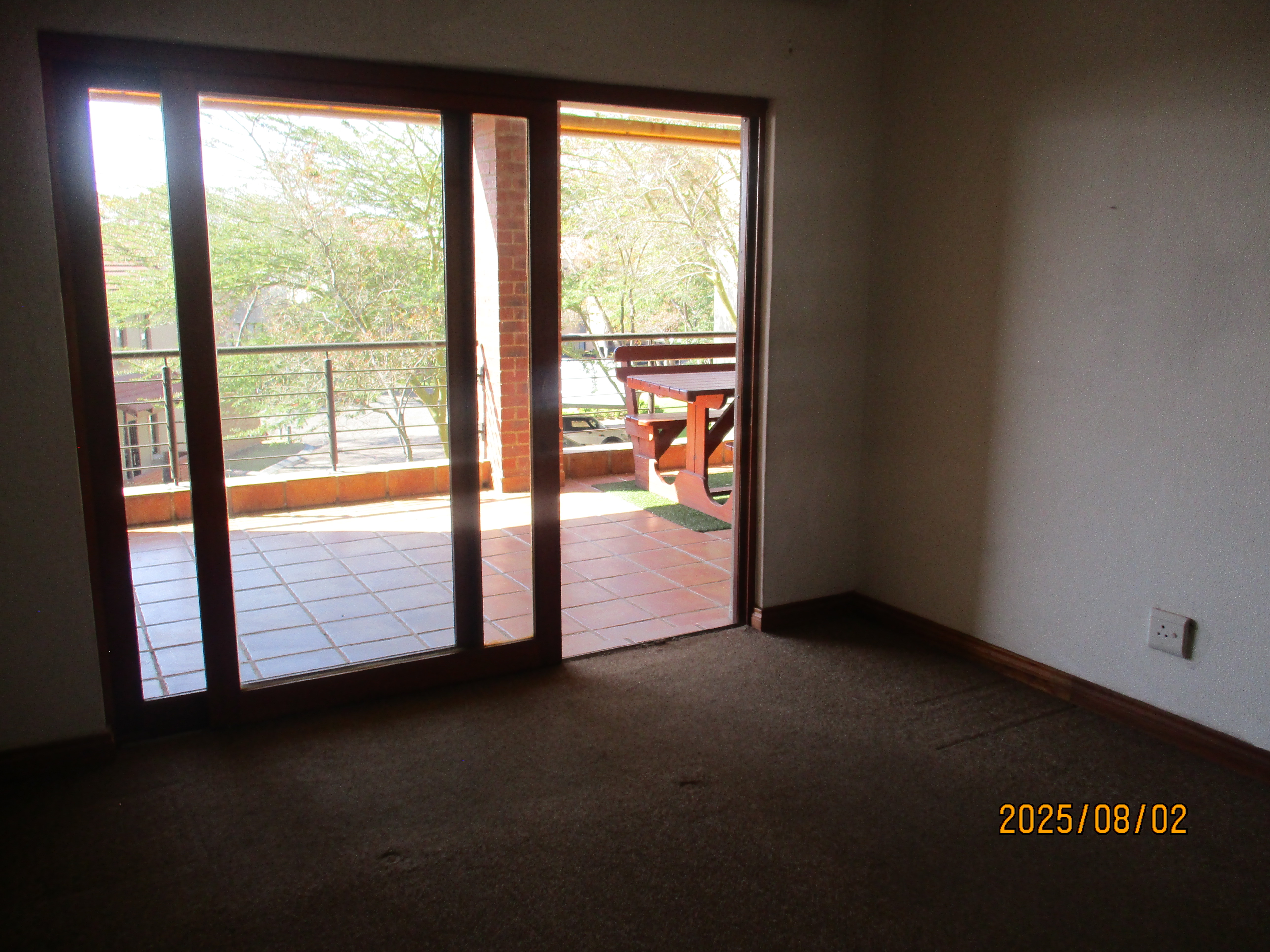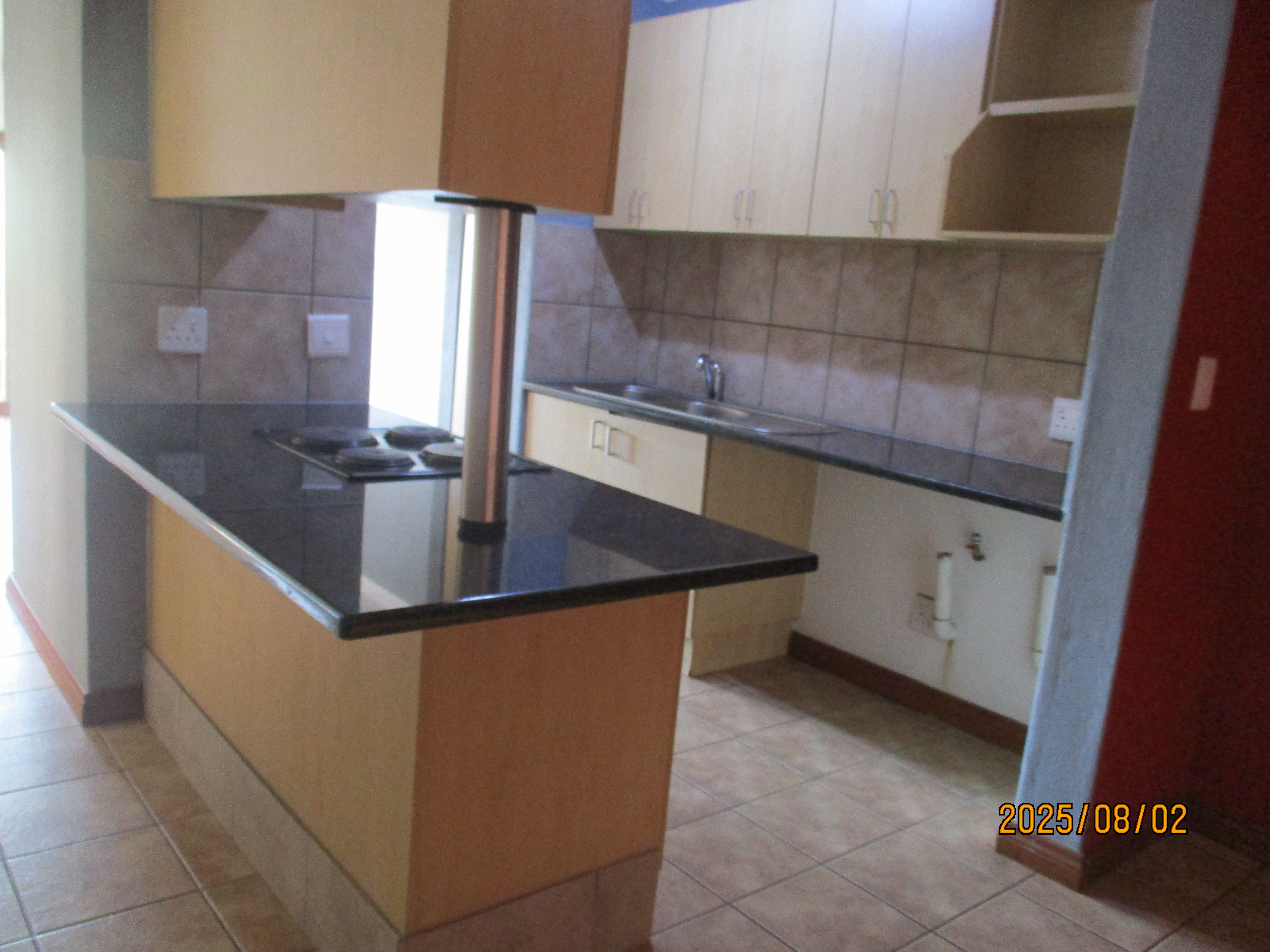 The lounge opens onto a large balcony with a built-in braai area, perfect for relaxing in the sun or shade. The balcony is covered with a stylish pergola, offering a blend of shelter and openness ideal for outdoor living. The two bedrooms has a full bathroom in the middle.The bedrooms are carpeted and has built in cupboards