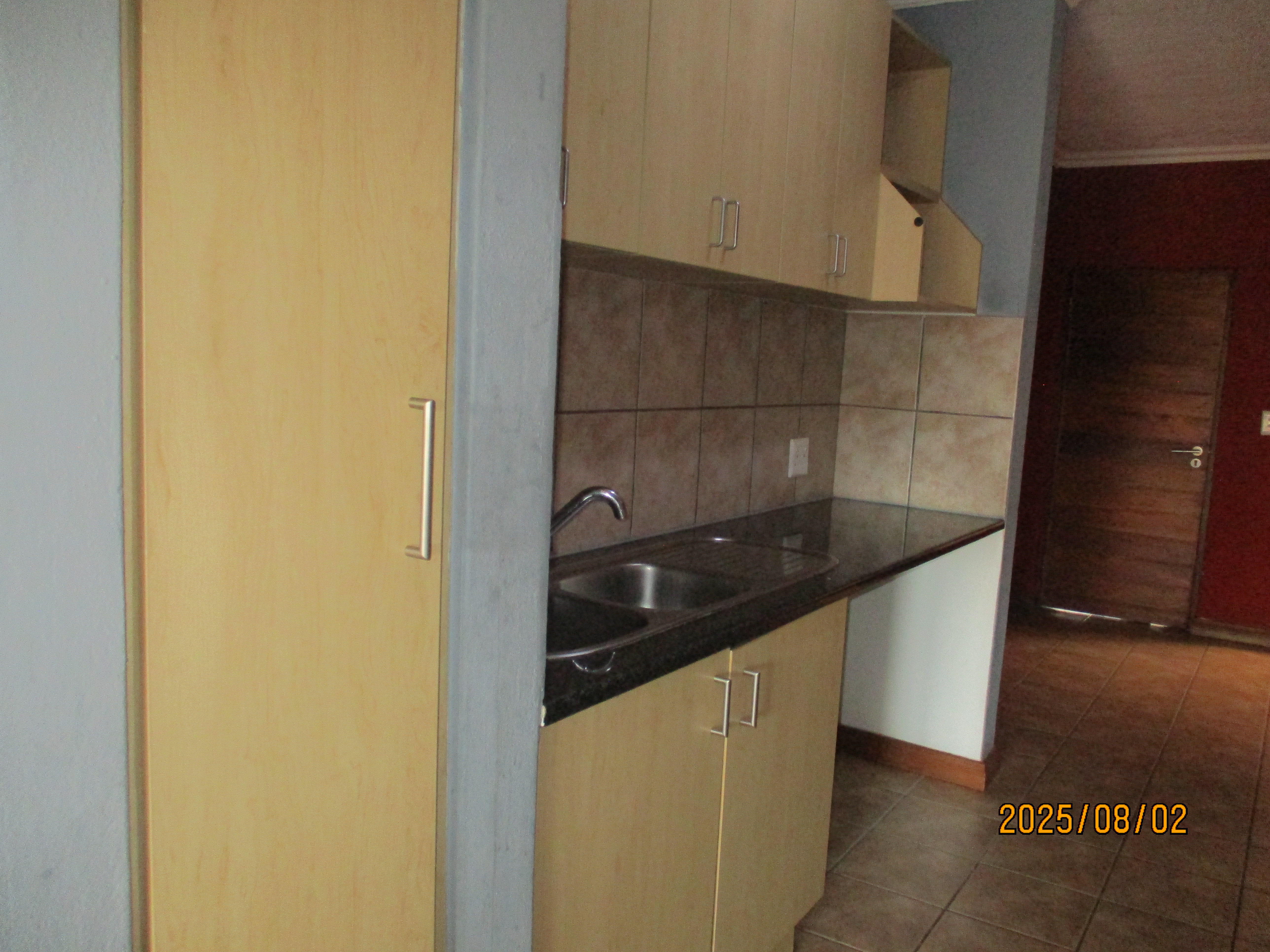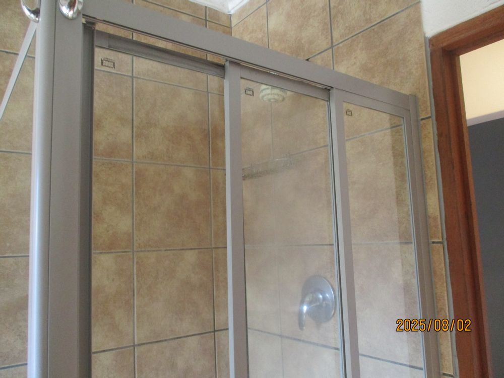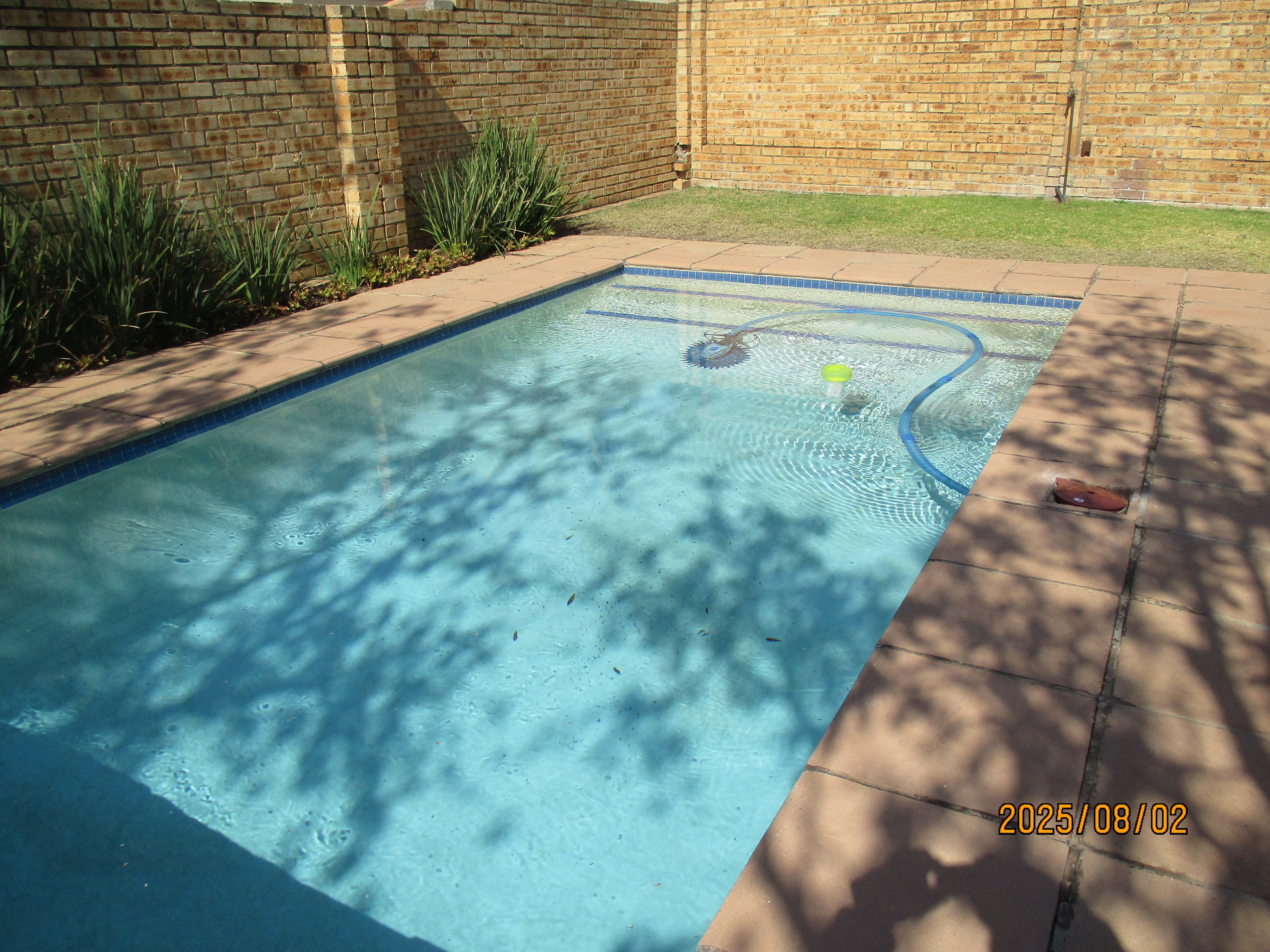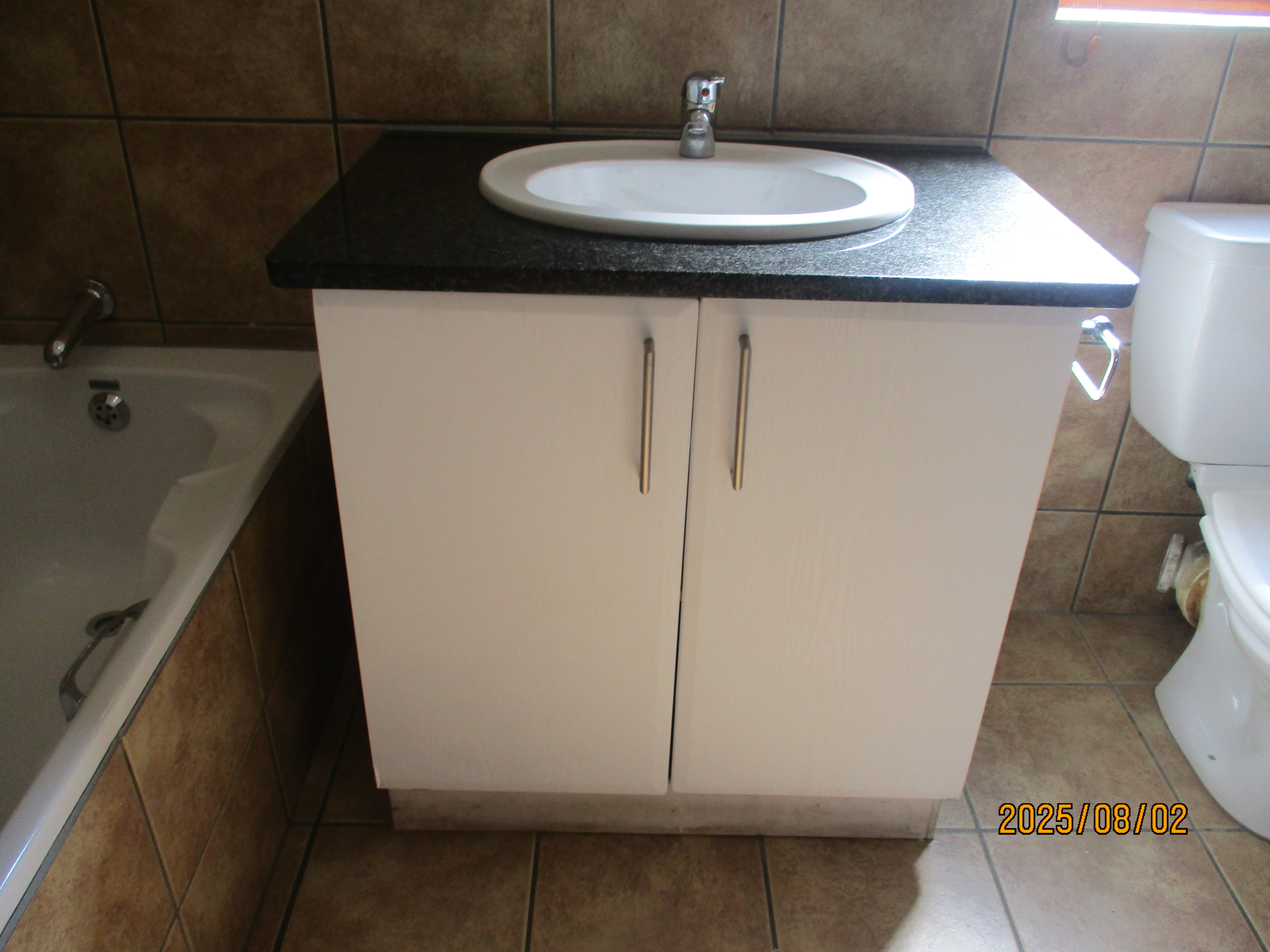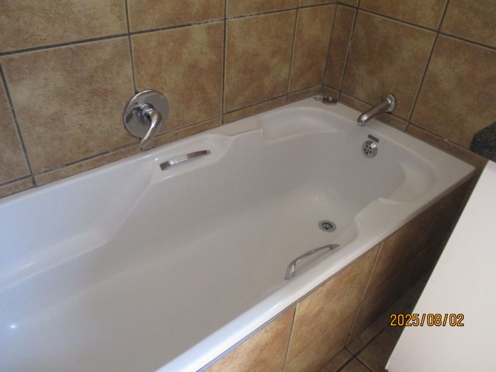 The lounge opens onto a large balcony with a built-in braai area, perfect for relaxing in the sun or shade. The balcony is covered with a stylish pergola, offering a blend of shelter and openness ideal for outdoor living. The two bedrooms has a full bathroom in the middle.The bedrooms are carpeted and has built in cupboards